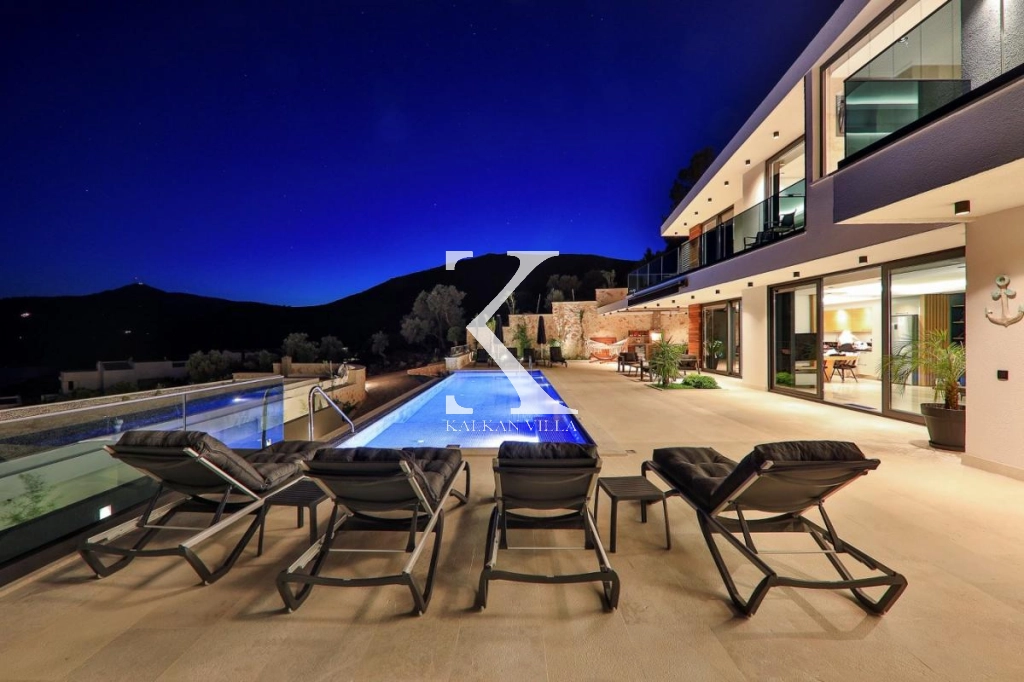 Villanın deniz ve doğa manzaralı geniş bahçesi, havuz, şezlonglar, masa tenisi, oturma köşesi, yemek masası ve barbekü alanı gibi olanaklarla donatılmıştır. Bu alanlar, sevdiklerinizle keyifli vakit geçirmeniz için tasarlanmıştır. Yatak odaları, yere kadar uzanan pencereleri sayesinde manzaranın tadını çıkarmanız için özenle dekore edilmiştir.