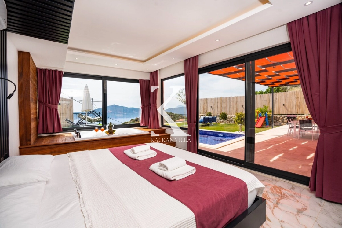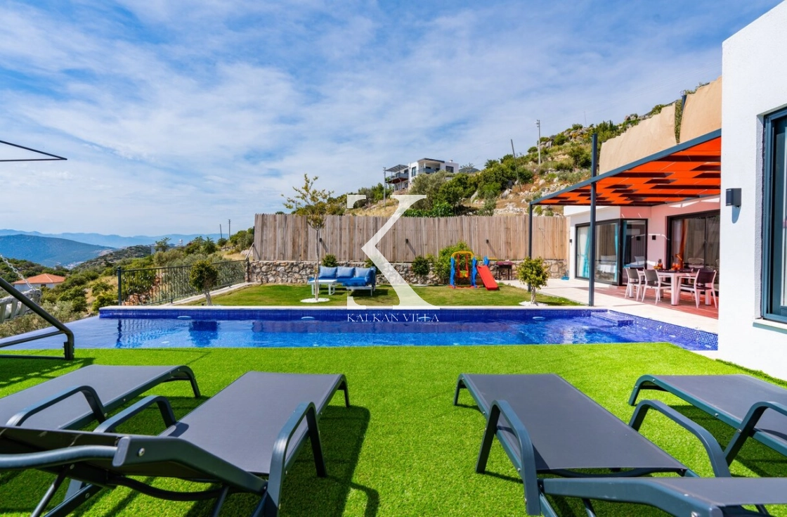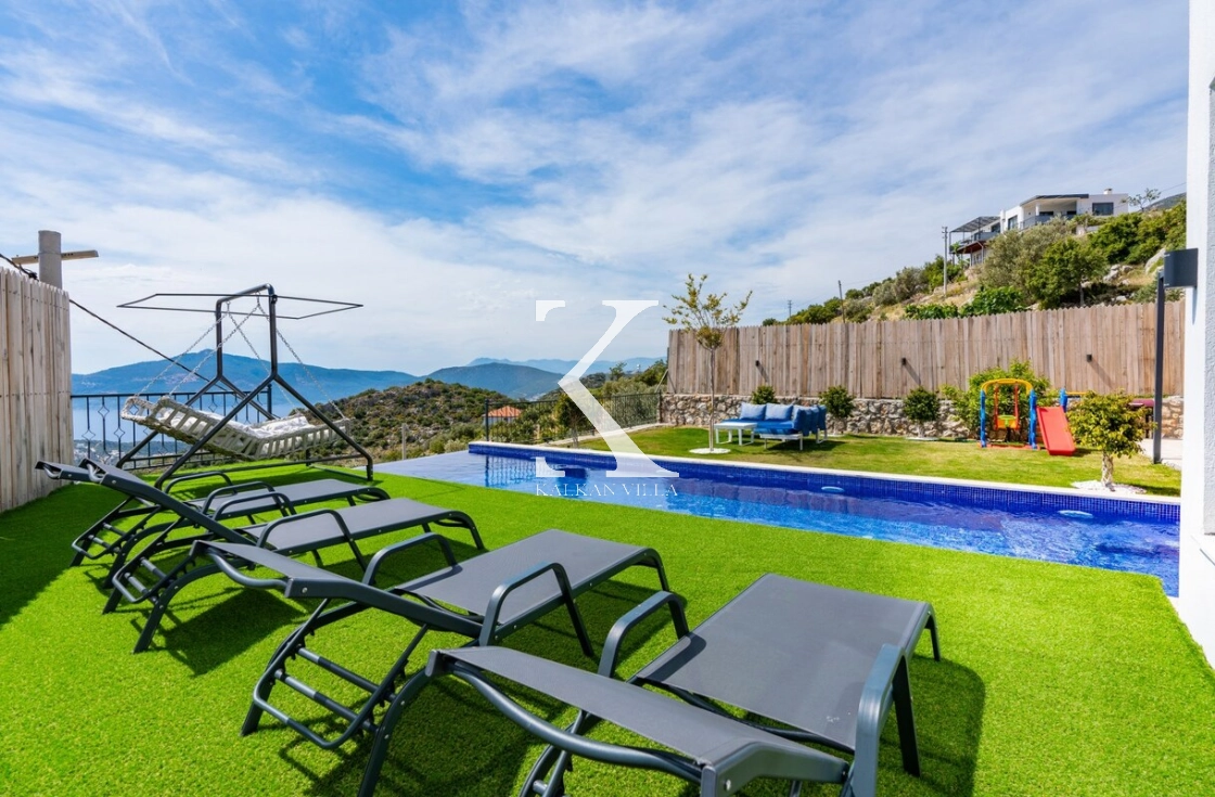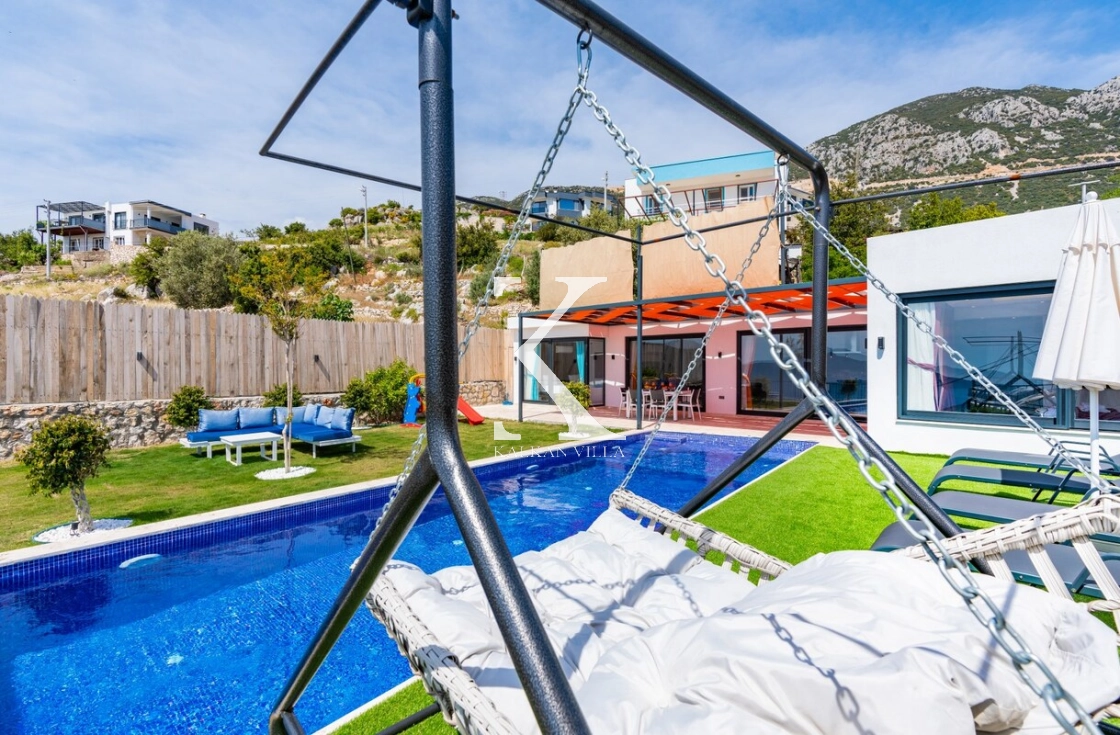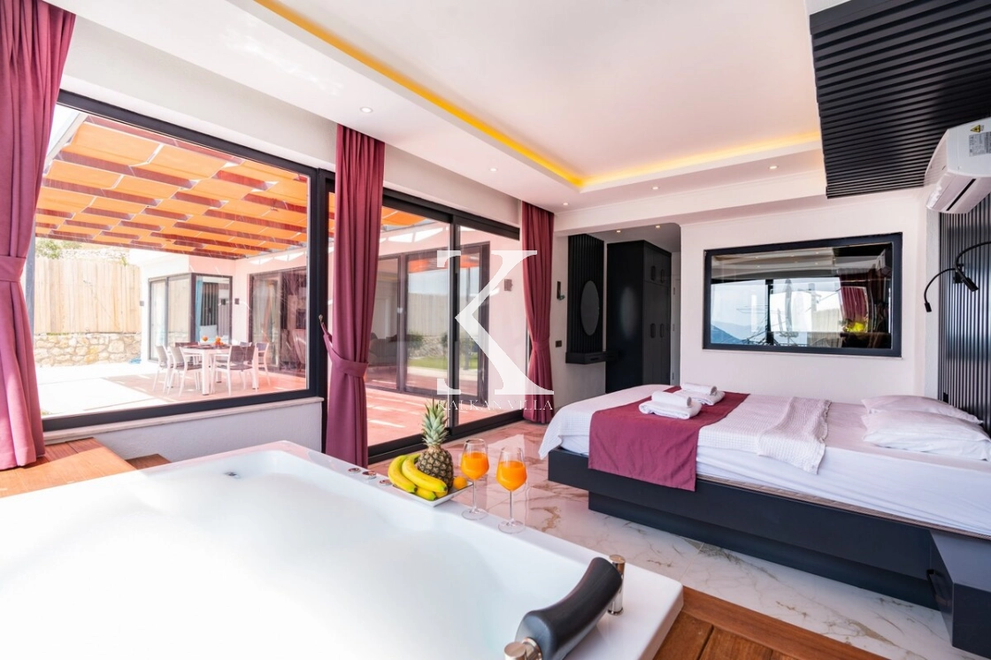 Modern tarzda dekore edilen villanın geniş ve manzaralı bahçesinde; özel yüzme havuzu, şezlonglar, çocuk oyun alanı, salıncak, oturma köşesi, yemek masası ve barbekü alanı bulunmaktadır. Yatak odalarından birinde yer alan jakuzi, tatilinize konfor ve romantizm katmaktadır.