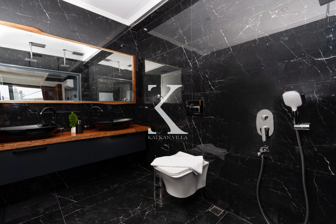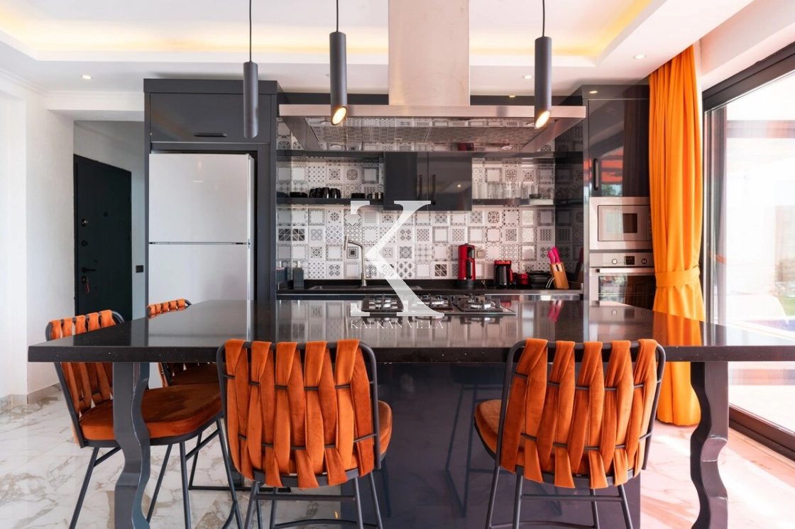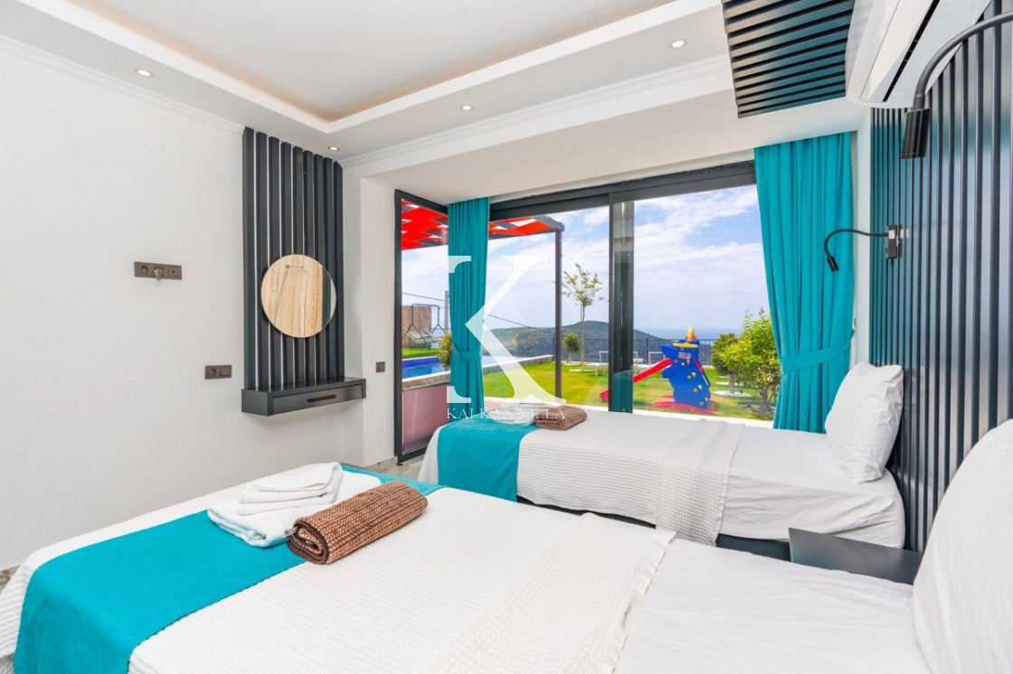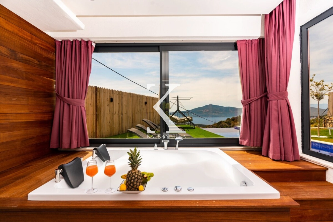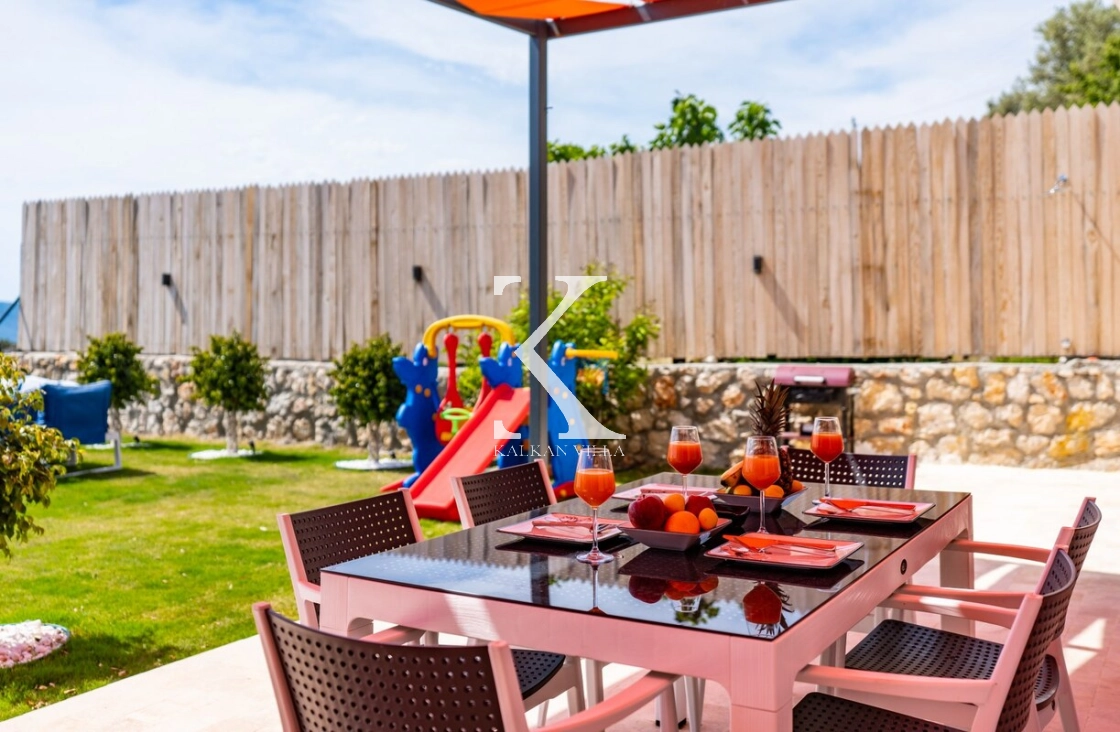 Modern tarzda dekore edilen villanın geniş ve manzaralı bahçesinde; özel yüzme havuzu, şezlonglar, çocuk oyun alanı, salıncak, oturma köşesi, yemek masası ve barbekü alanı bulunmaktadır. Yatak odalarından birinde yer alan jakuzi, tatilinize konfor ve romantizm katmaktadır.