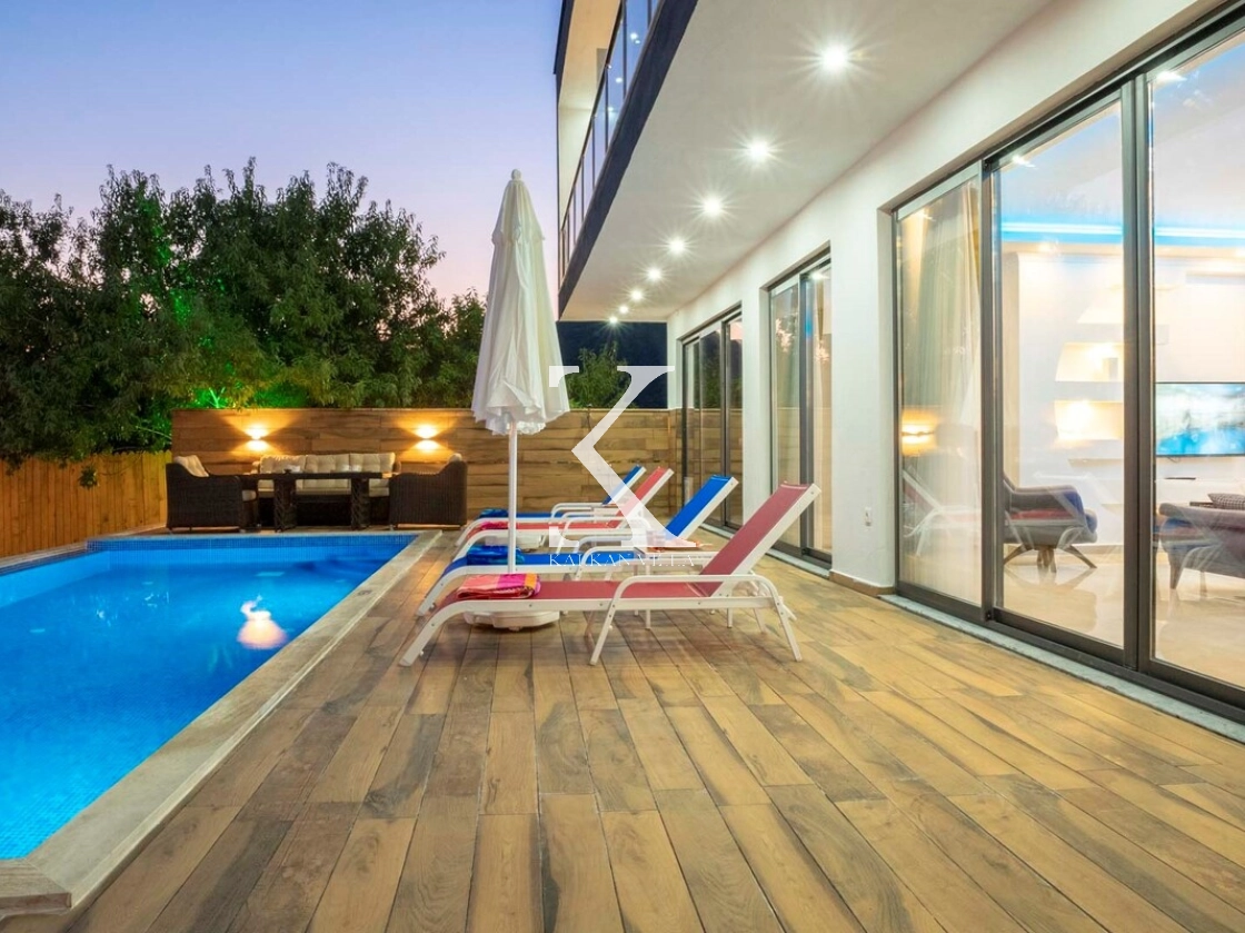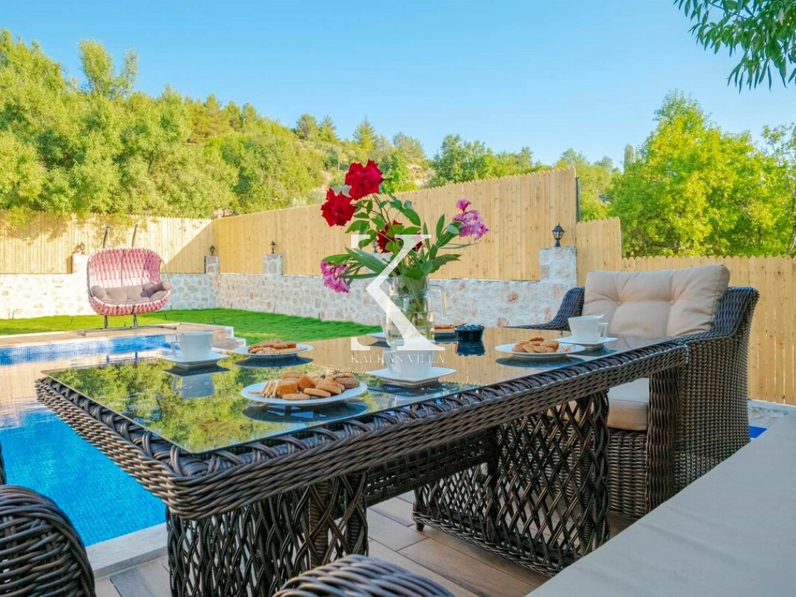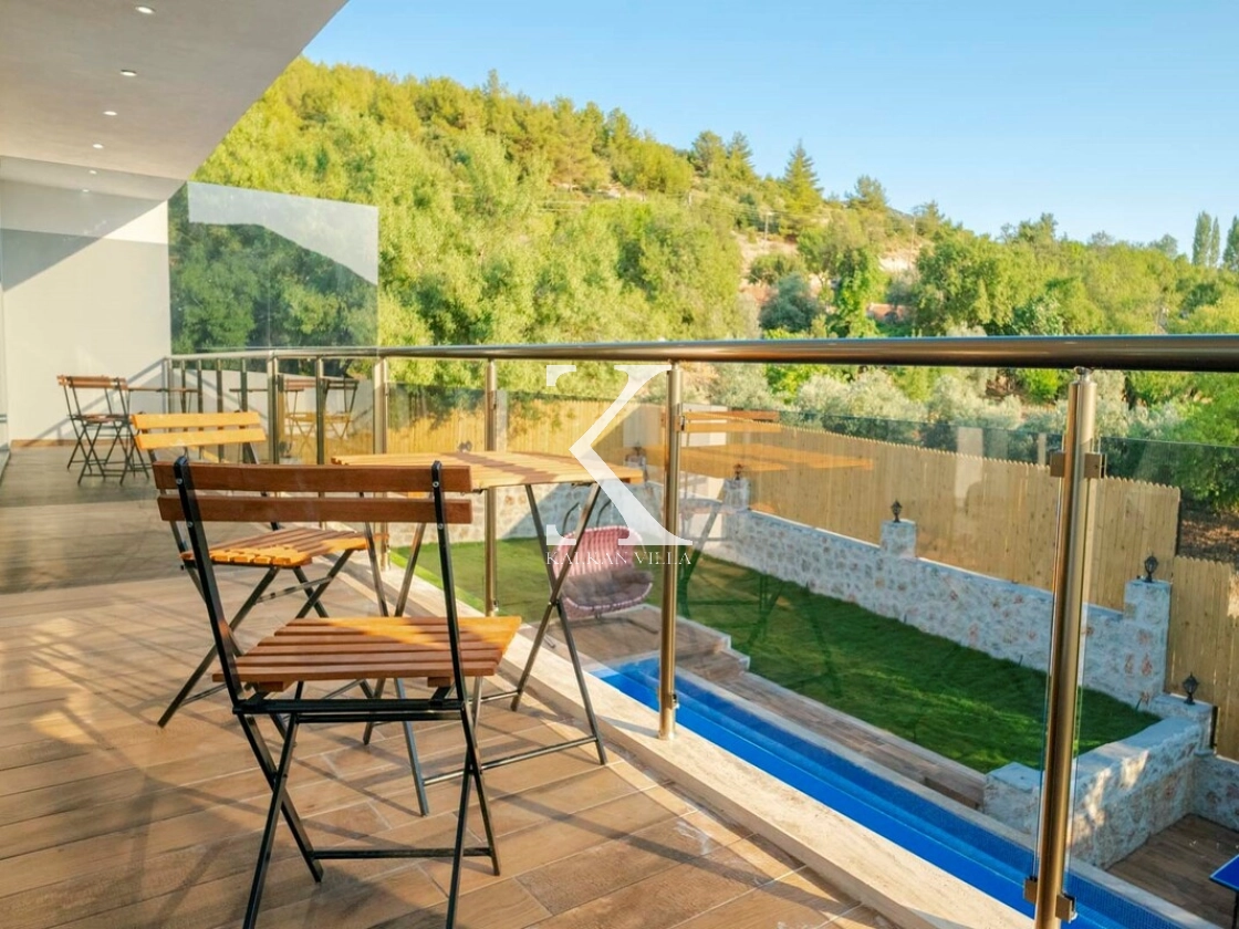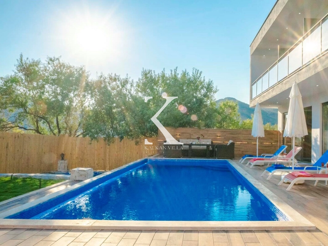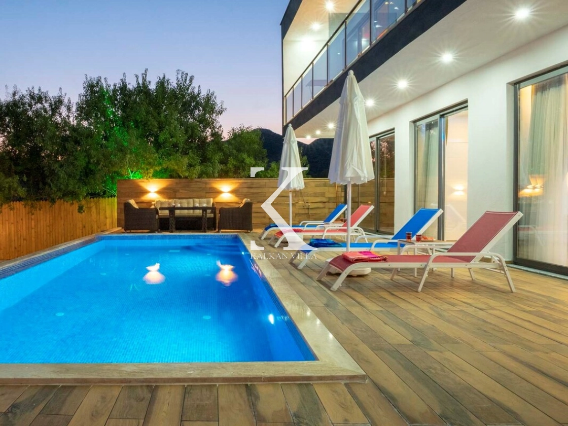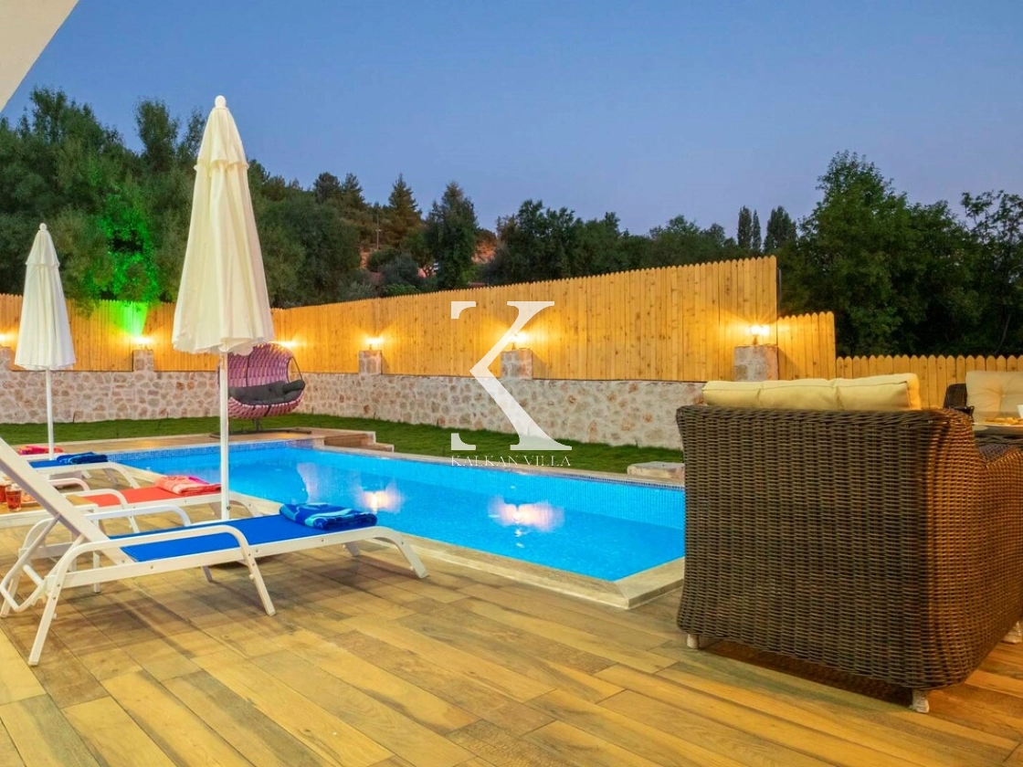 Villa Palas, Kalkan’ın huzurlu Sarıbelen bölgesinde, doğa manzaralı bir konumda yer alan, iki katlı, lüks ve tam donanımlı bir tatil villasıdır.
