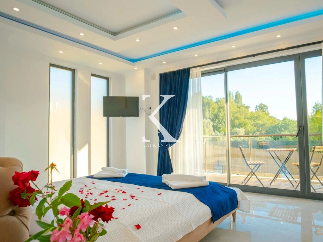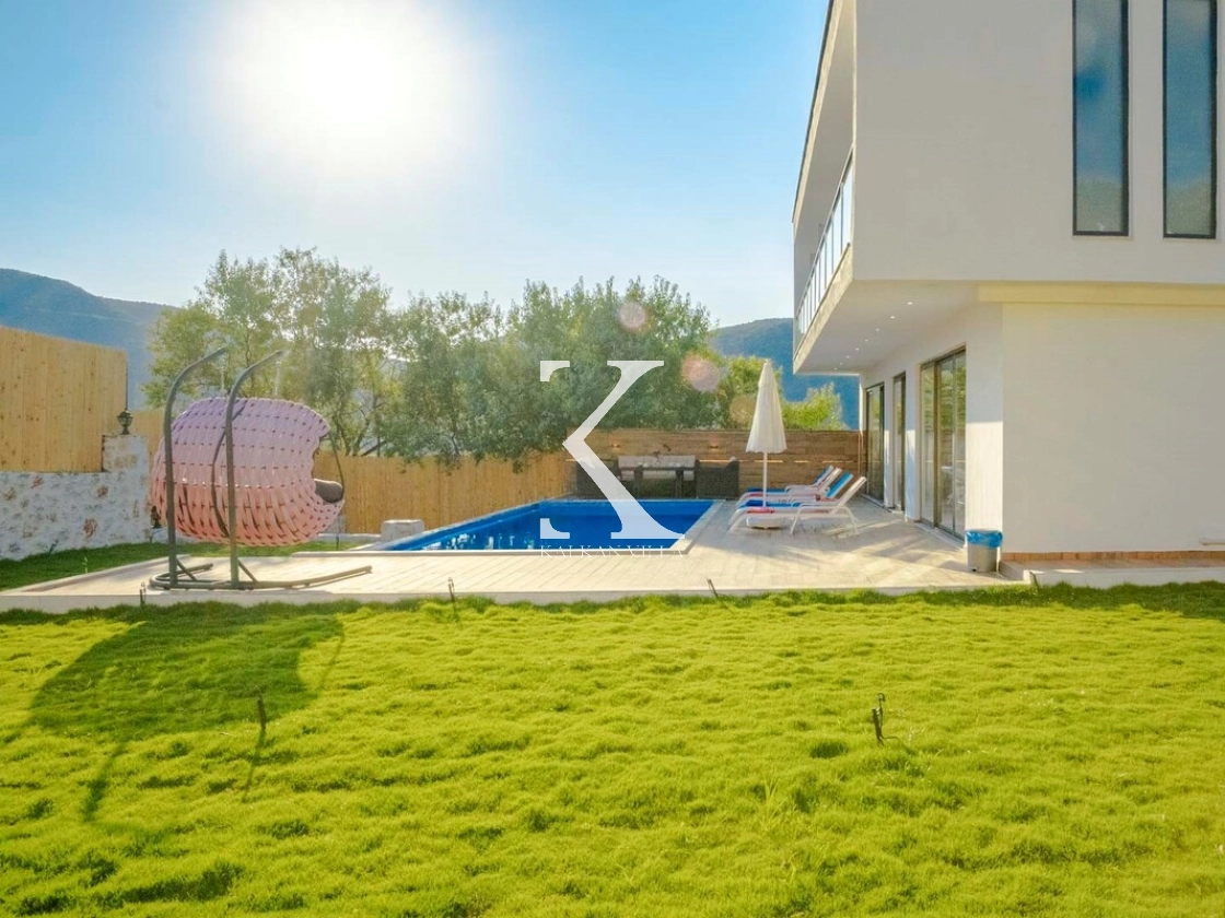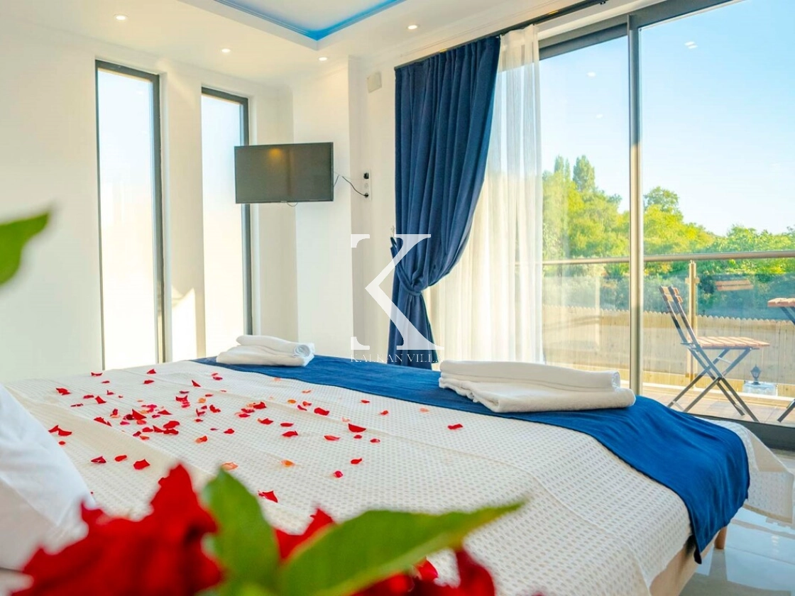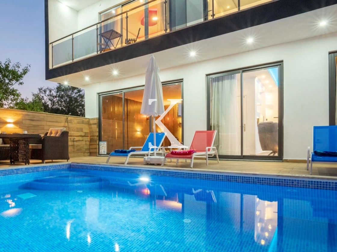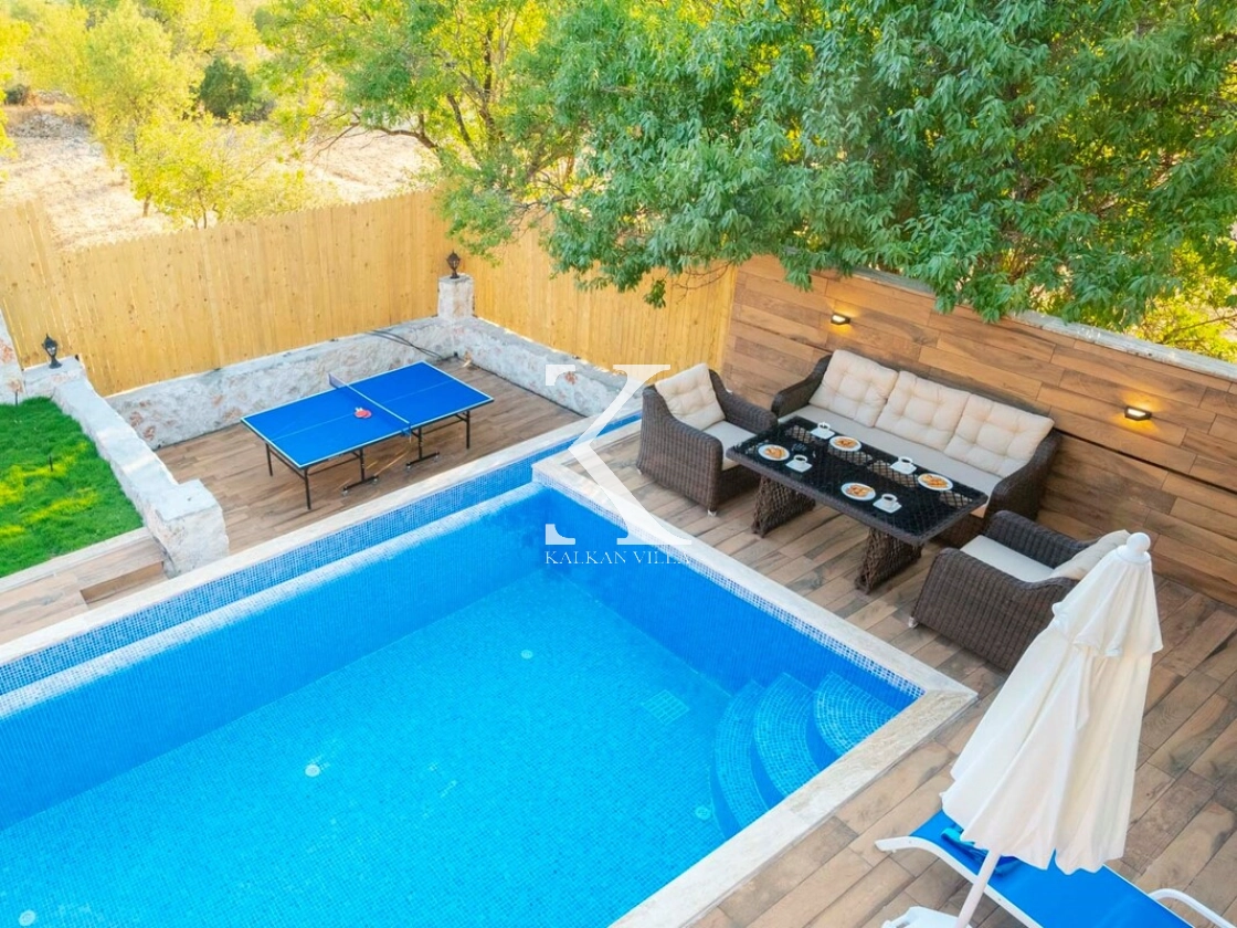 Villa Palas, Kalkan’ın huzurlu Sarıbelen bölgesinde, doğa manzaralı bir konumda yer alan, iki katlı, lüks ve tam donanımlı bir tatil villasıdır.