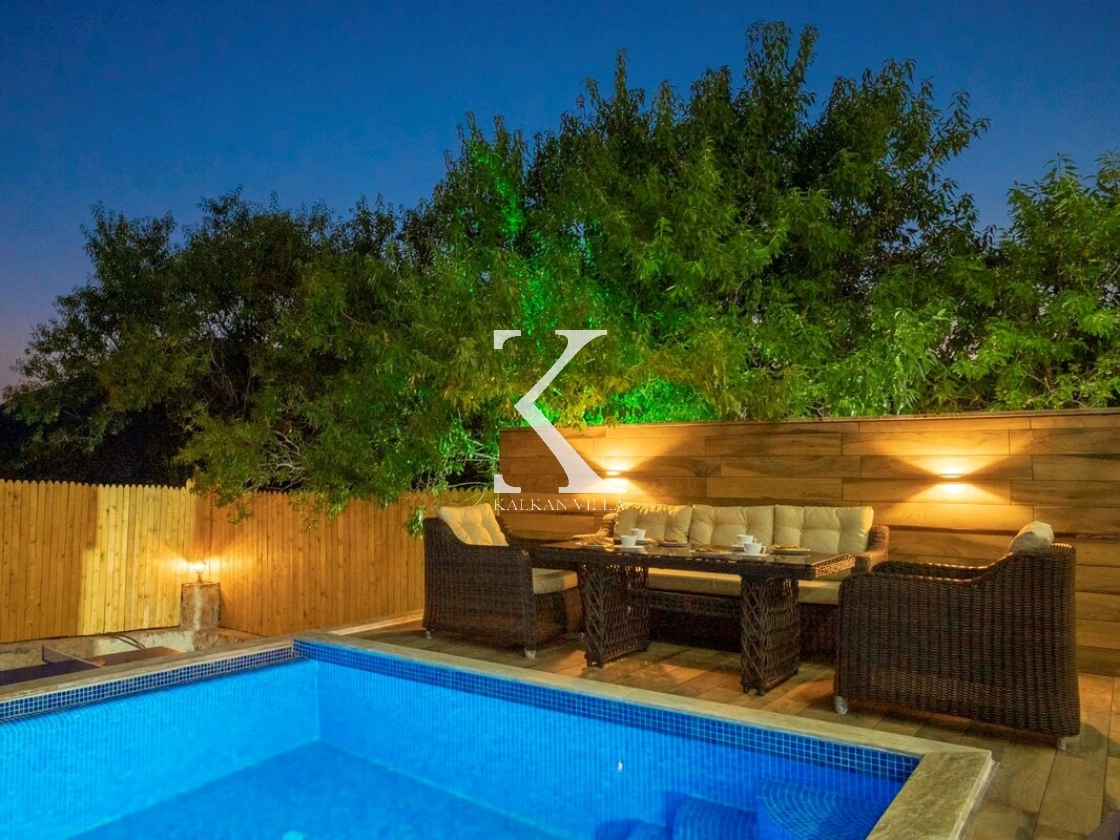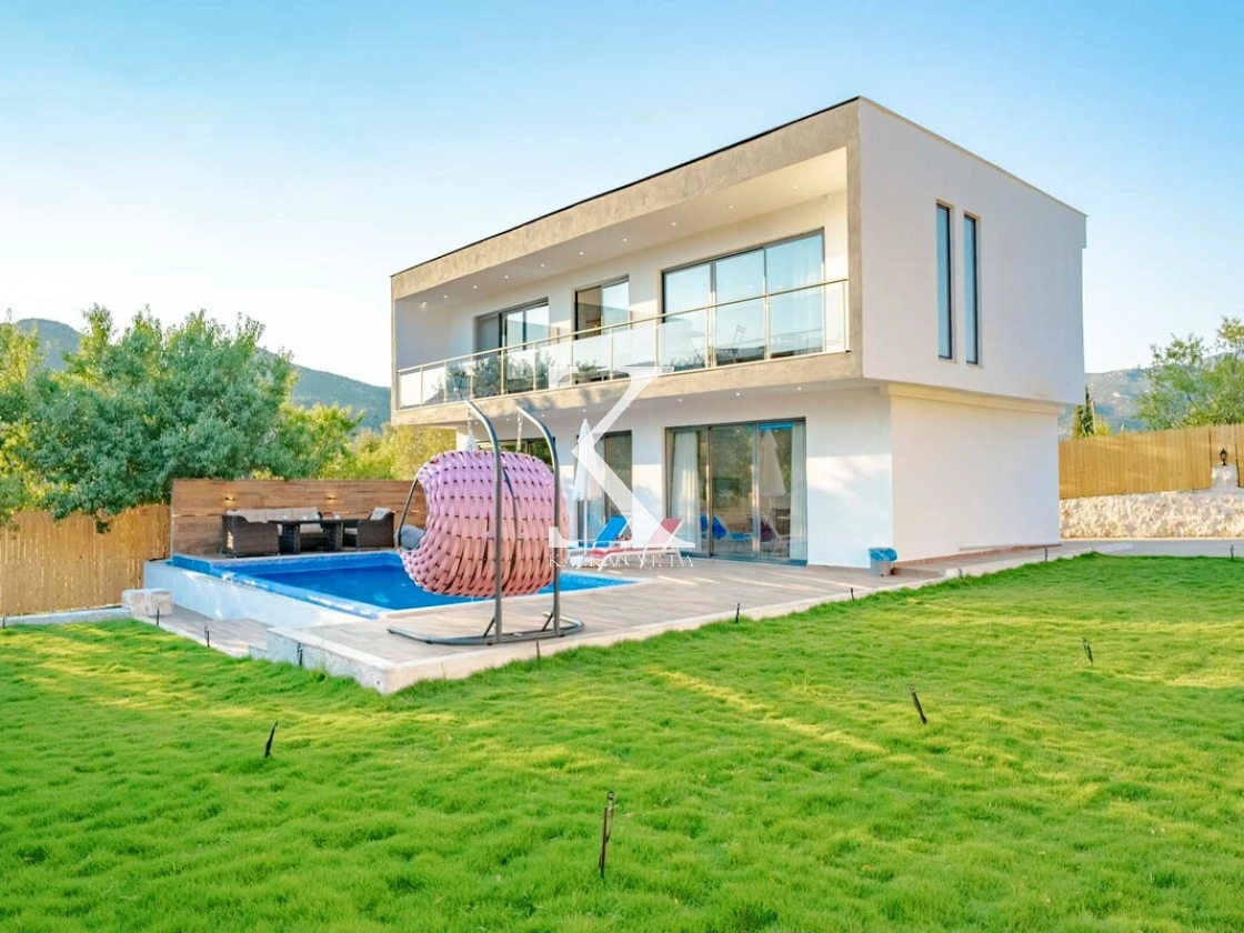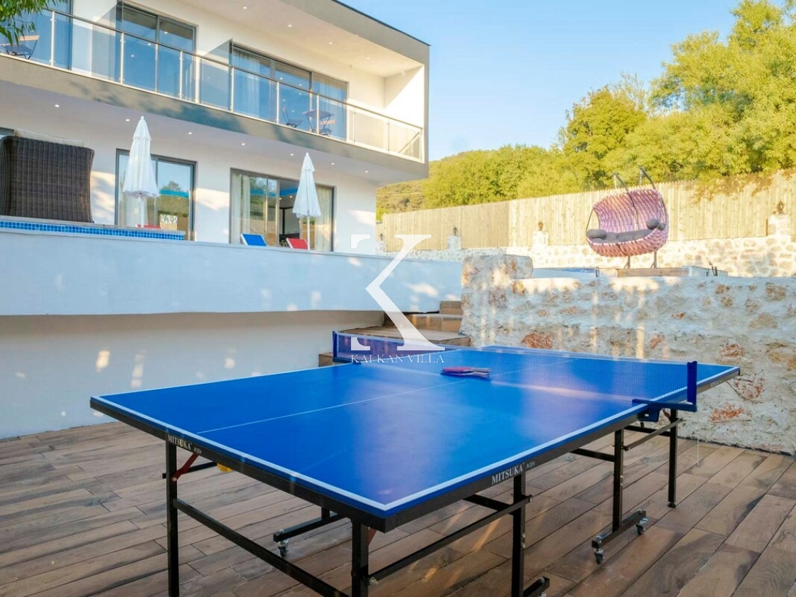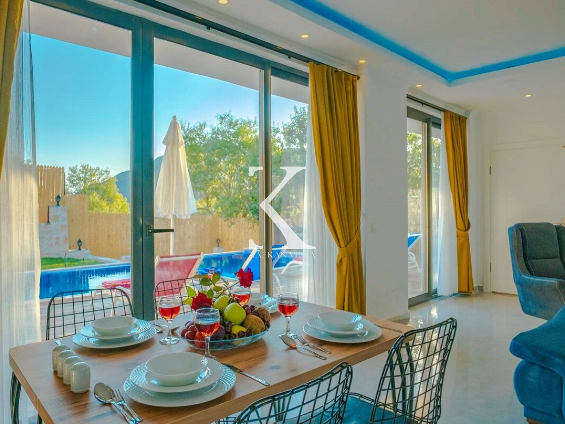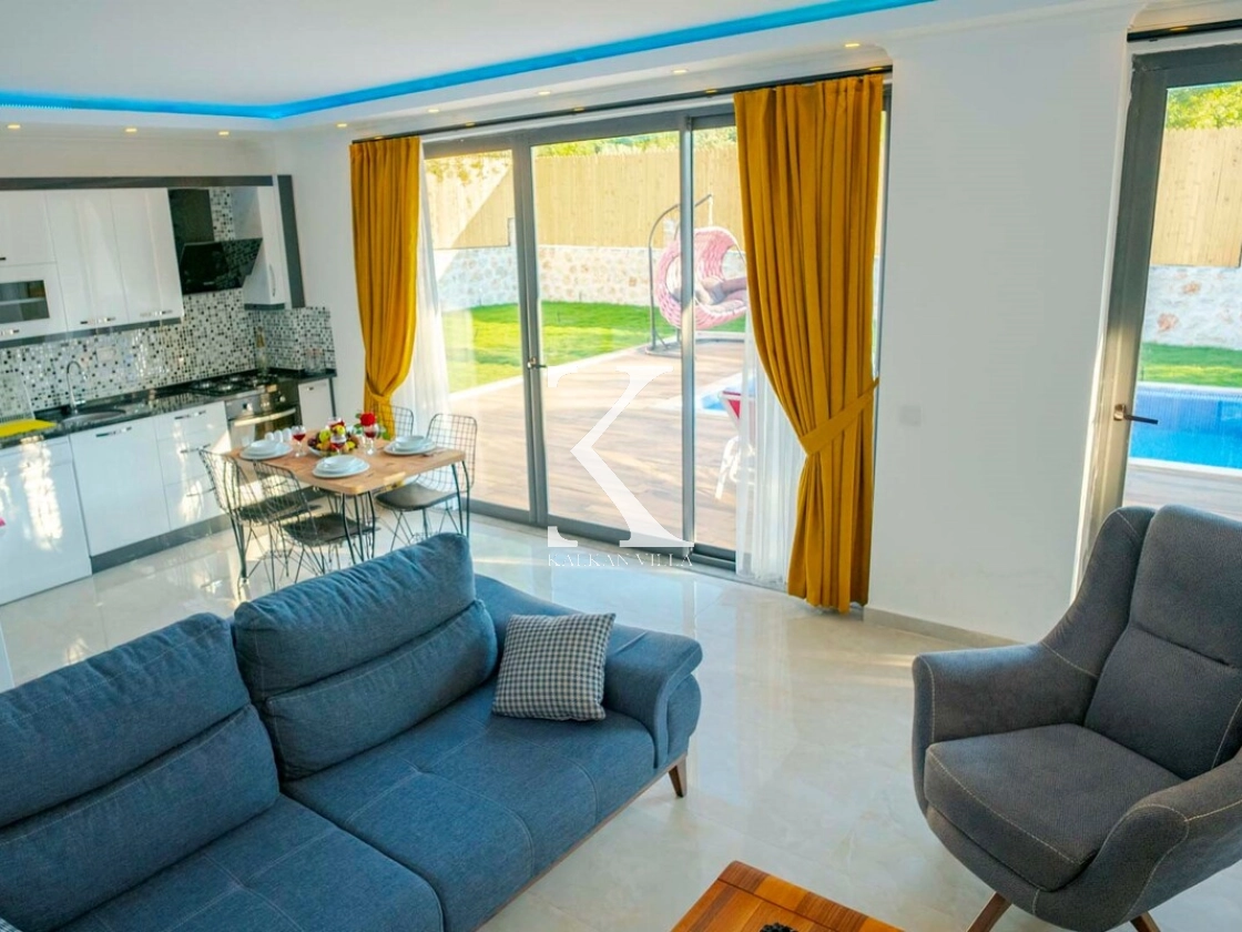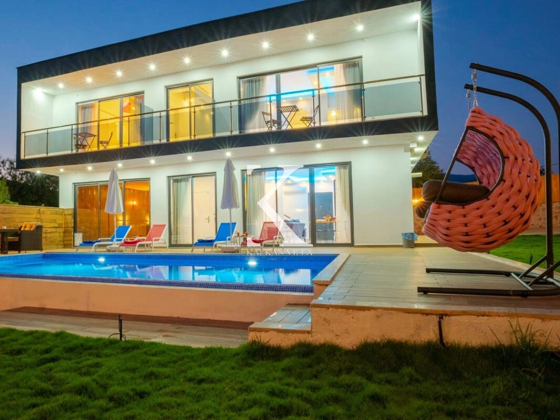 Villa Palas, Kalkan’ın huzurlu Sarıbelen bölgesinde, doğa manzaralı bir konumda yer alan, iki katlı, lüks ve tam donanımlı bir tatil villasıdır.