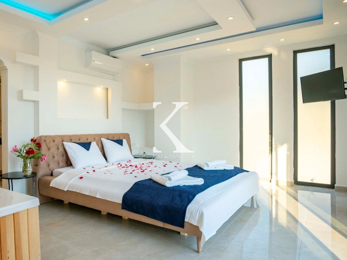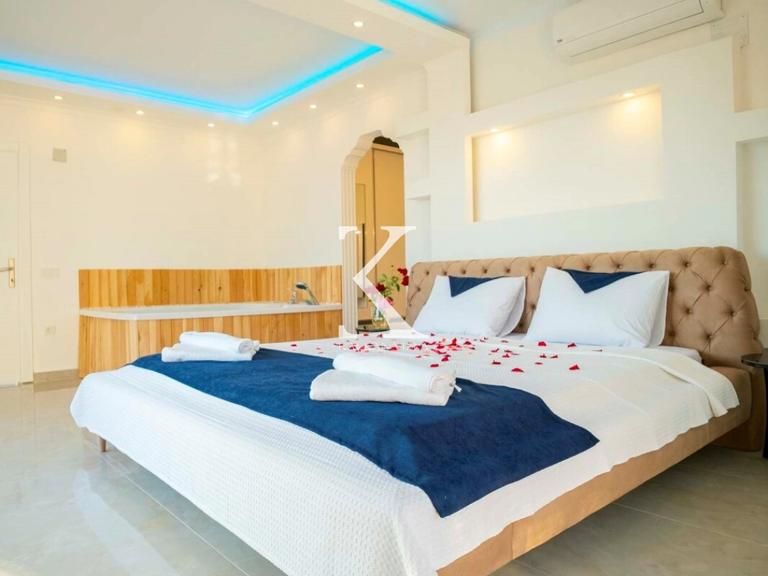 2 yatak odası ve 4 kişilik konaklama kapasitesi ile hem balayı çiftleri hem de çekirdek aileler için ideal bir konaklama imkânı sunar. Özellikle bahar ve kış aylarında, villada yer alan ısıtmalı kapalı havuz sayesinde sıkça tercih edilmektedir.