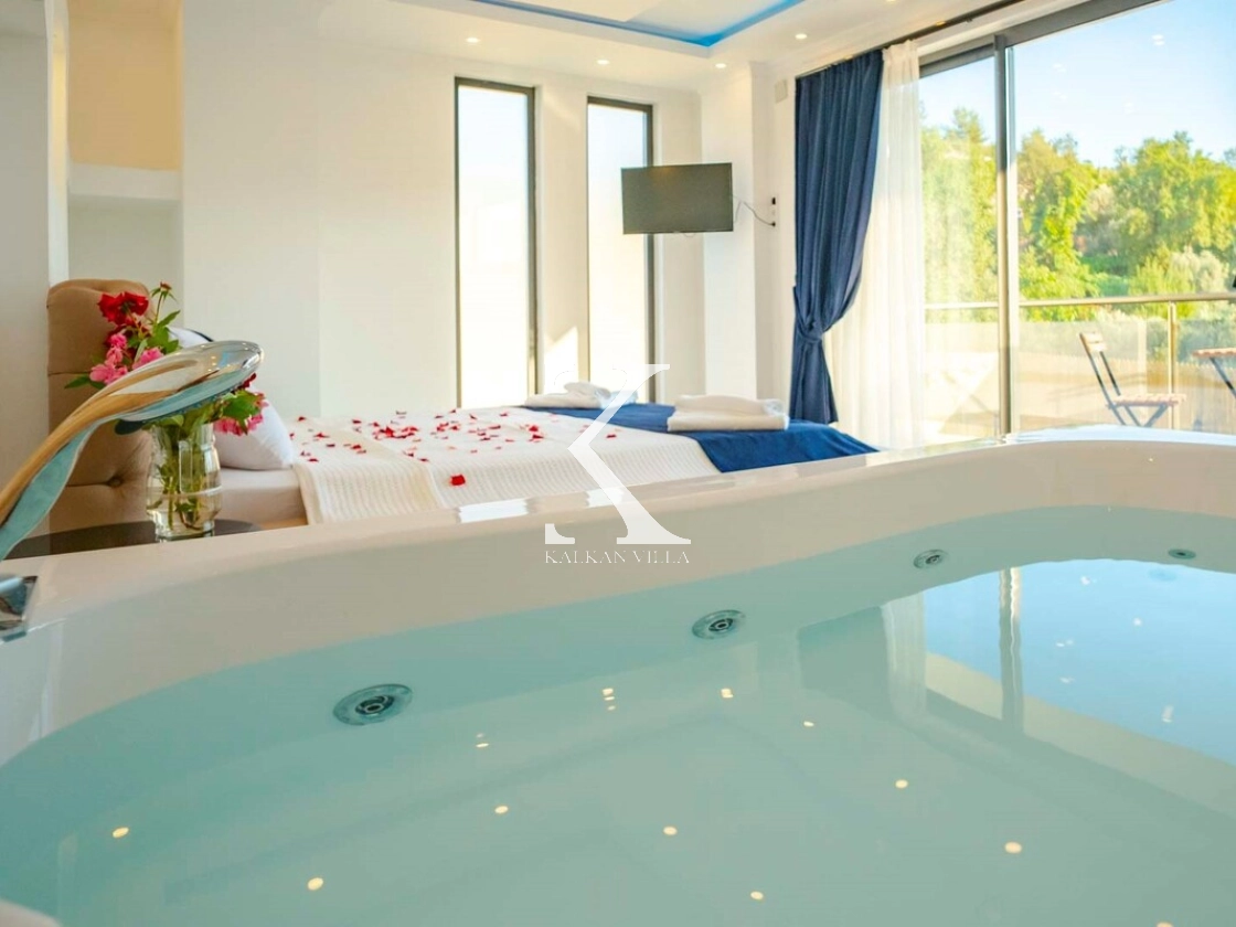 İç mekânda ise ısıtmalı kapalı havuz ve jakuzi bulunmaktadır. Bu özellikleriyle Villa Palas, muhafazakâr aileler ve balayı çiftleri için son derece uygundur.