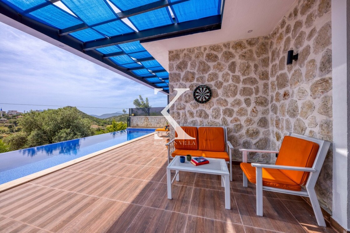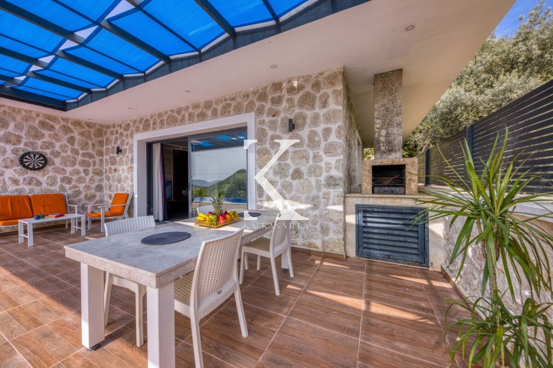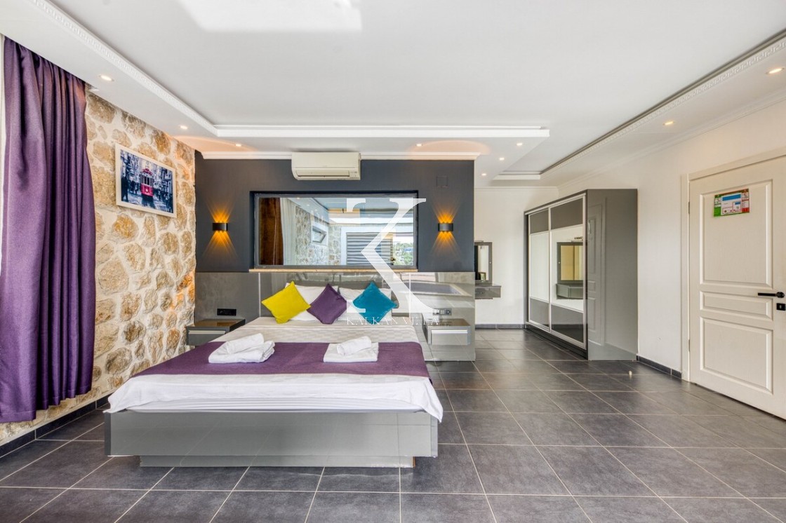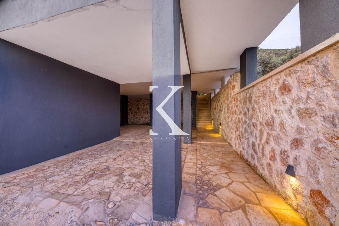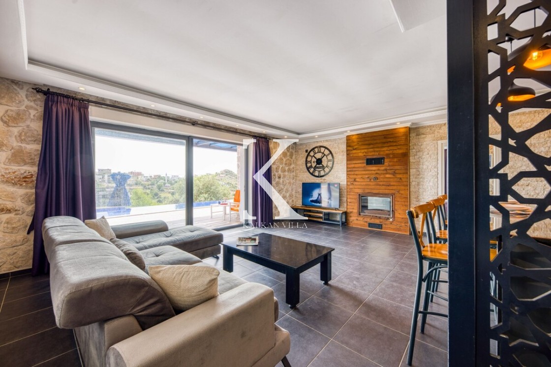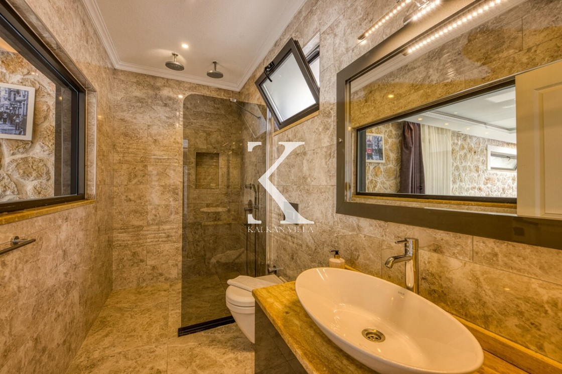 Taş mimarisiyle Akdeniz ruhunu yansıtan villa, modern minimalist detaylarıyla hem zarif hem de konforlu bir atmosfer sunar.