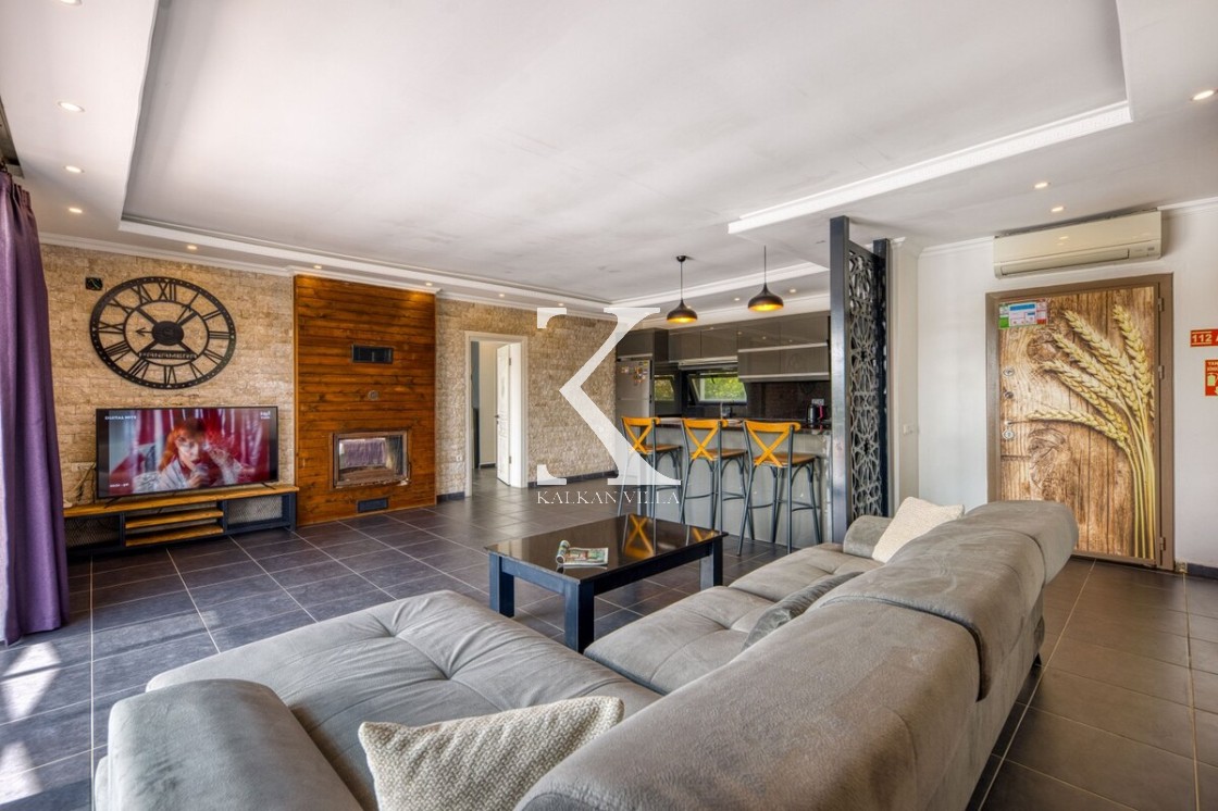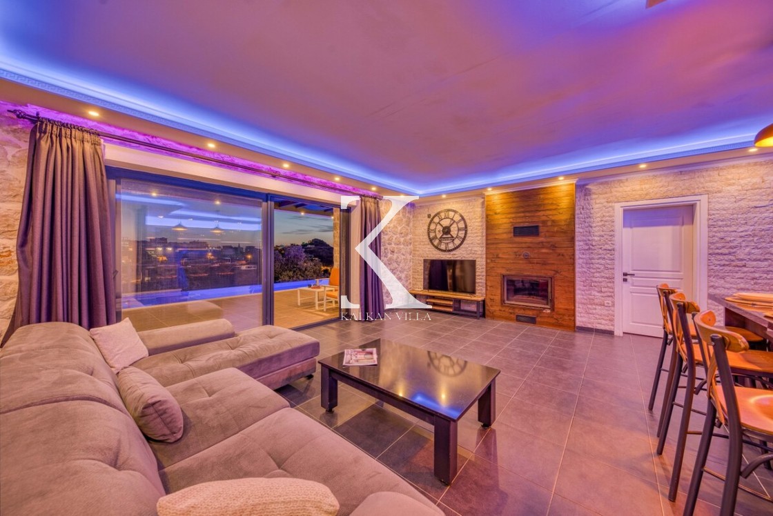 Soğuk akşamlarda şöminenin sıcak alevi eşliğinde doğa manzarasına karşı vakit geçirmek, villaya ayrı bir romantizm katar.