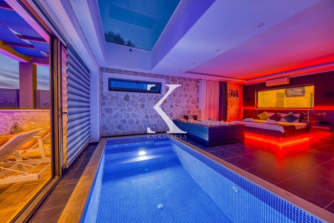 İster açık havuzda güneşin tadını çıkarın, ister jakuzinizde dinlenin ya da ısıtmalı kapalı havuzda dört mevsim yüzmenin keyfini yaşayın — bu villa size her koşulda huzur vaat ediyor.