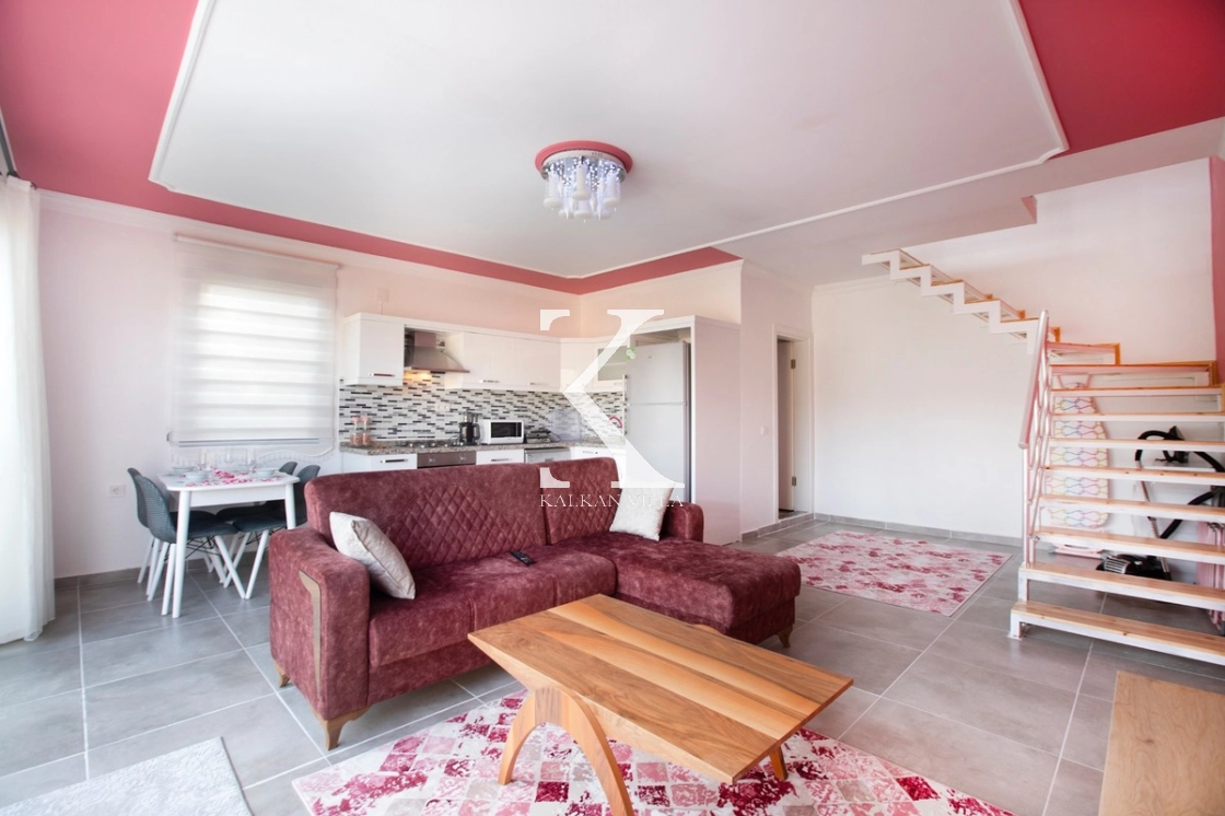 Konforlu oturma grubu, TV, klima, sehpa ve DVD oynatıcı bulunmaktadır.