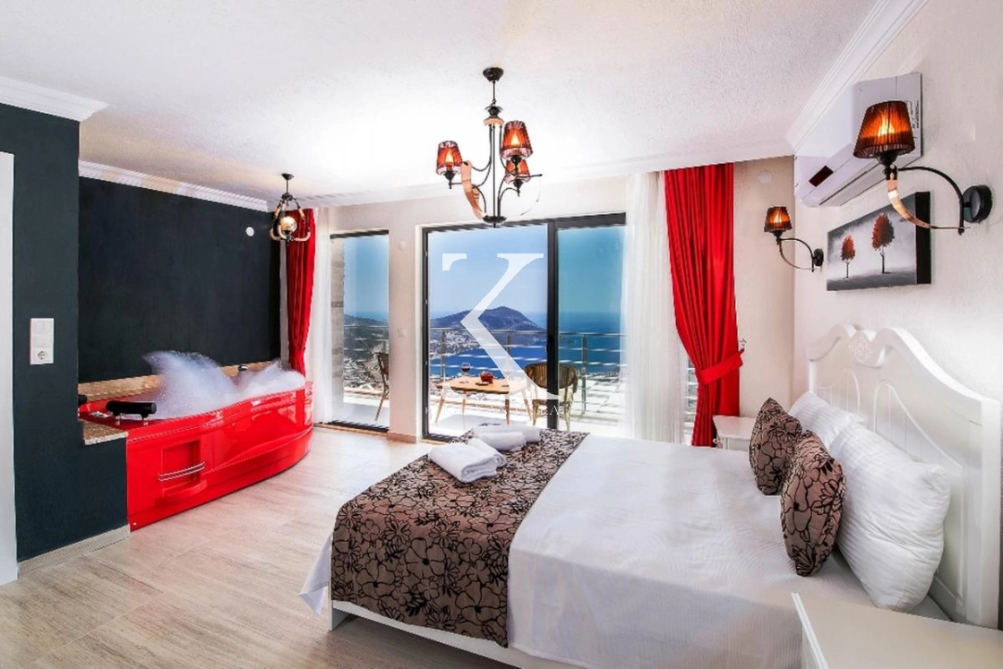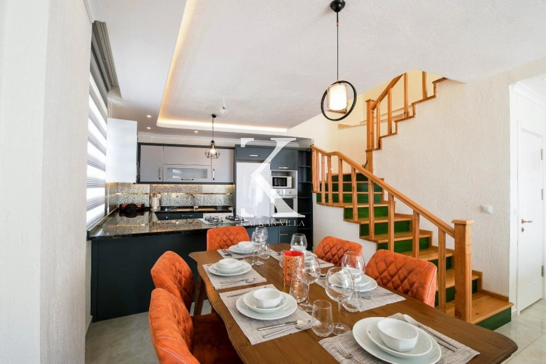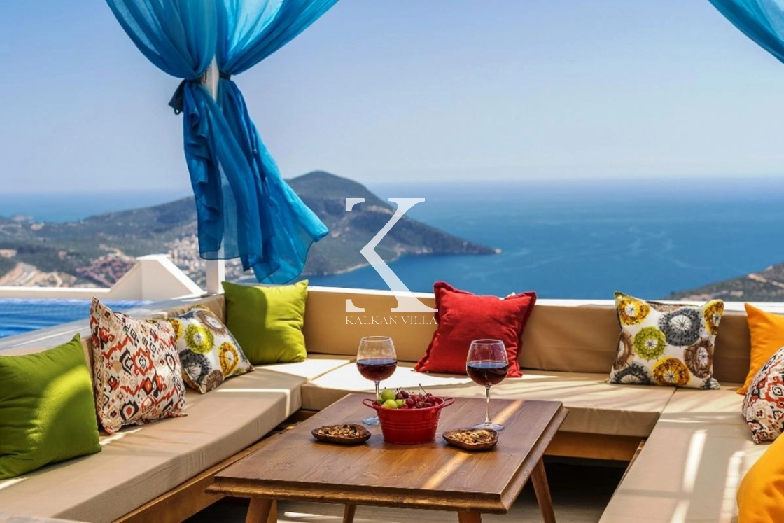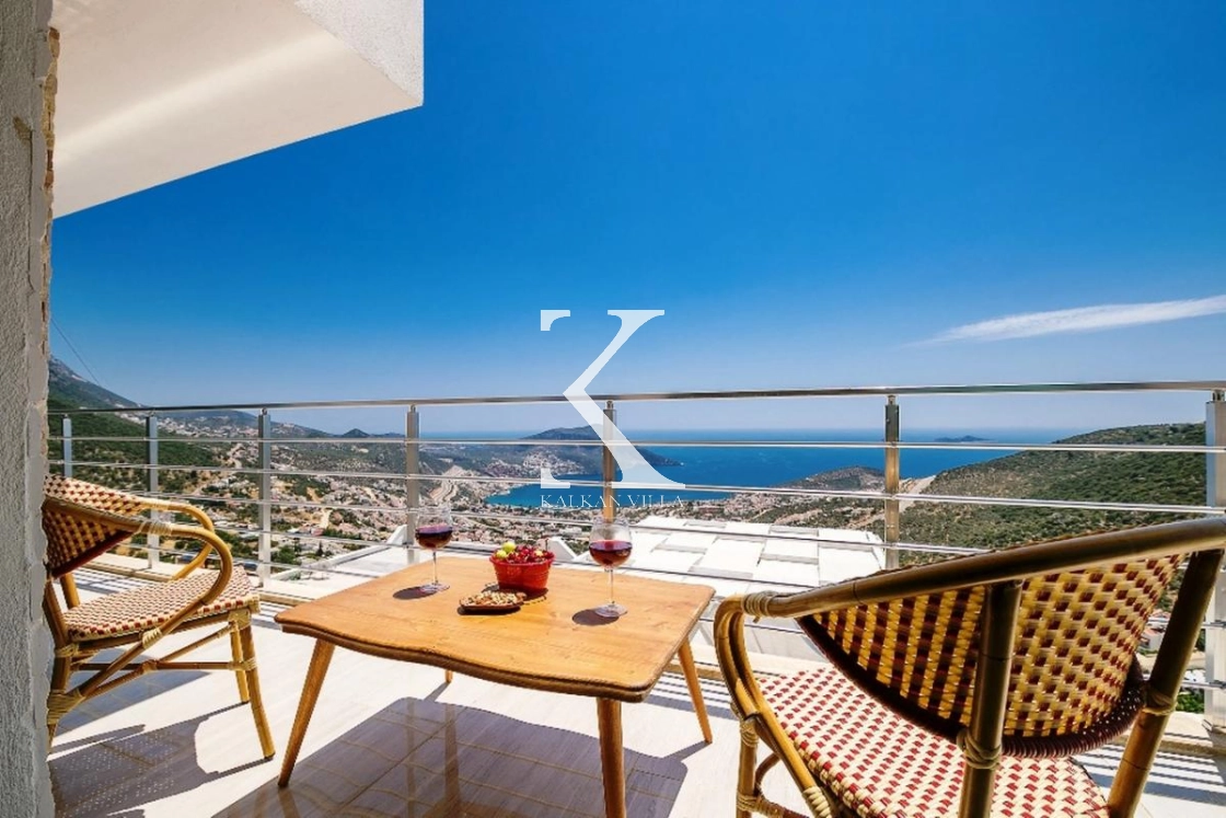 Geniş terasında, deniz manzaralı oturma köşesi, şezlonglar ve barbekü alanı yer alır. Gün batımında, Kalkan’ın eşsiz manzarası eşliğinde sevdiklerinizle unutulmaz akşamlar geçirebilirsiniz.