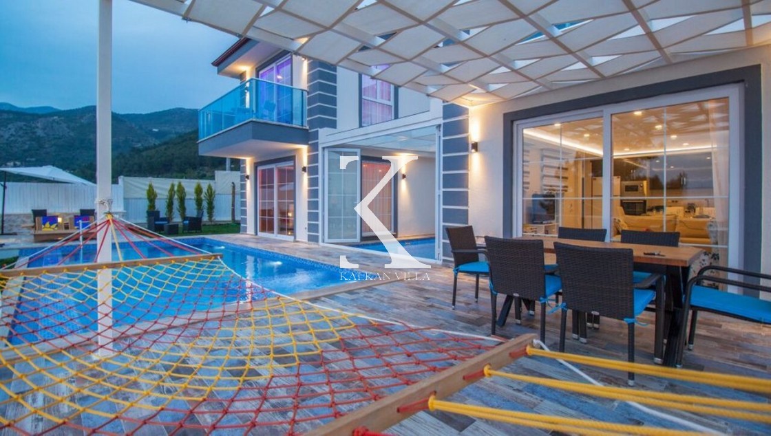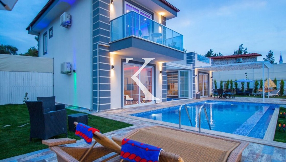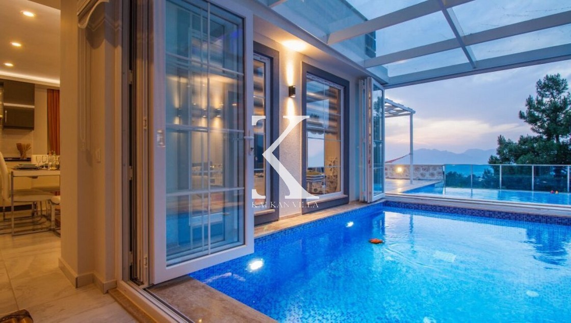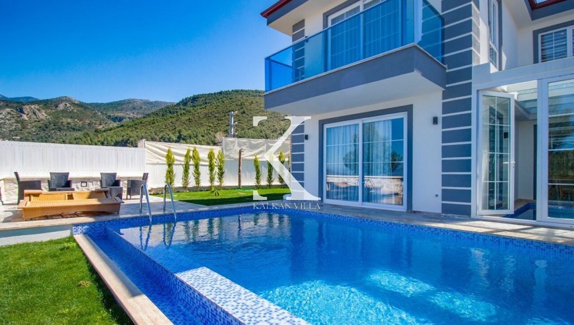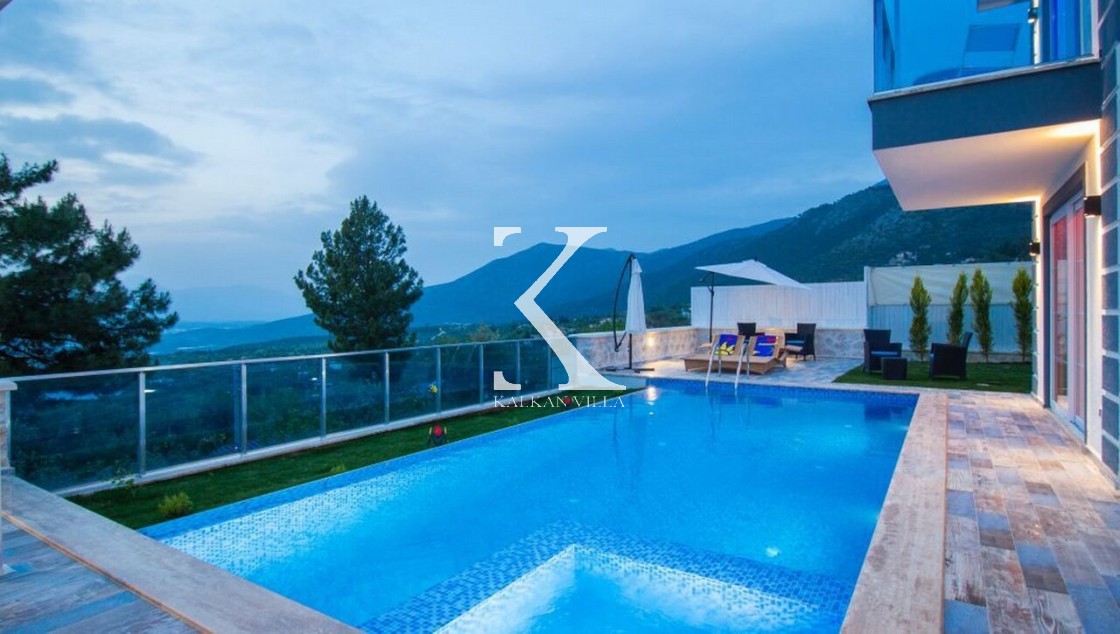 Doğayla iç içe konumda mahremiyet, lüks ve konforu buluşturan, 3 süit yatak odalı – 6 kişi kapasiteli şık villa. Kapalı (ısıtmalı) havuz, tam korunaklı bahçe & açık havuz, özel spor odası (koşu bandı + çok amaçlı kondisyon aleti + langırt) ile 4 mevsim tatil.