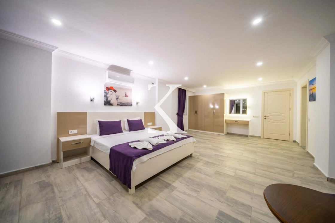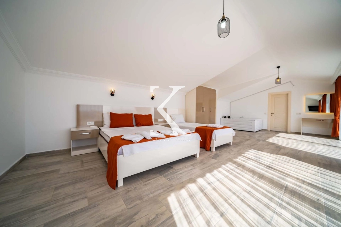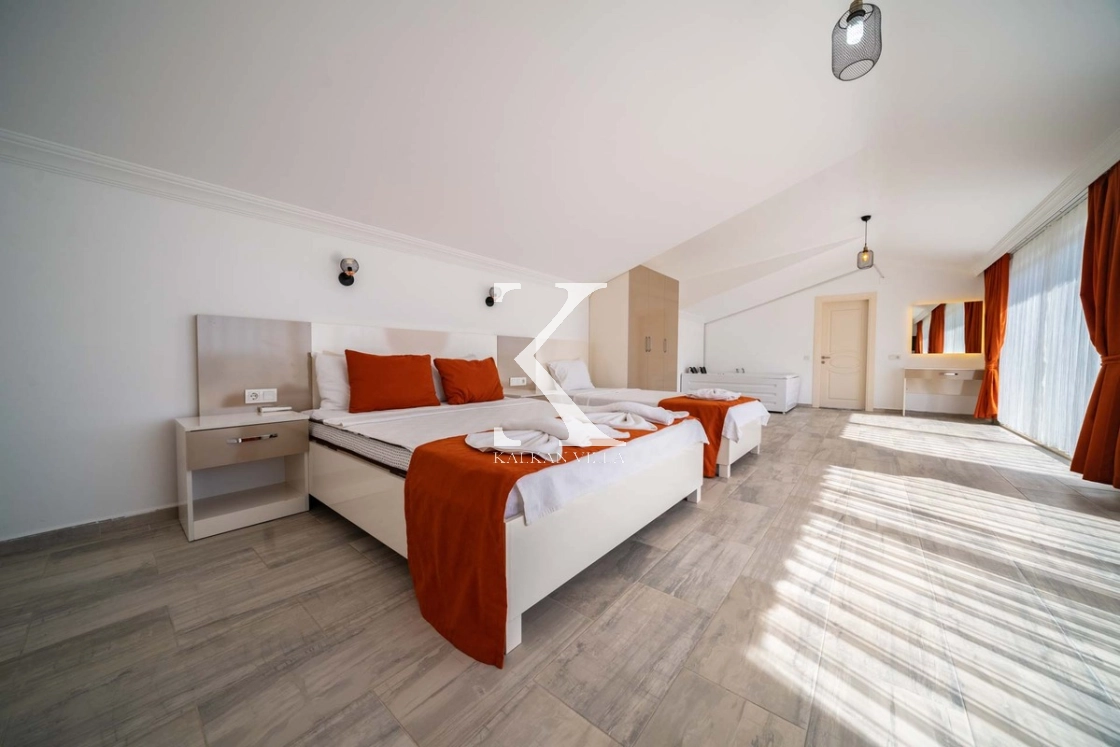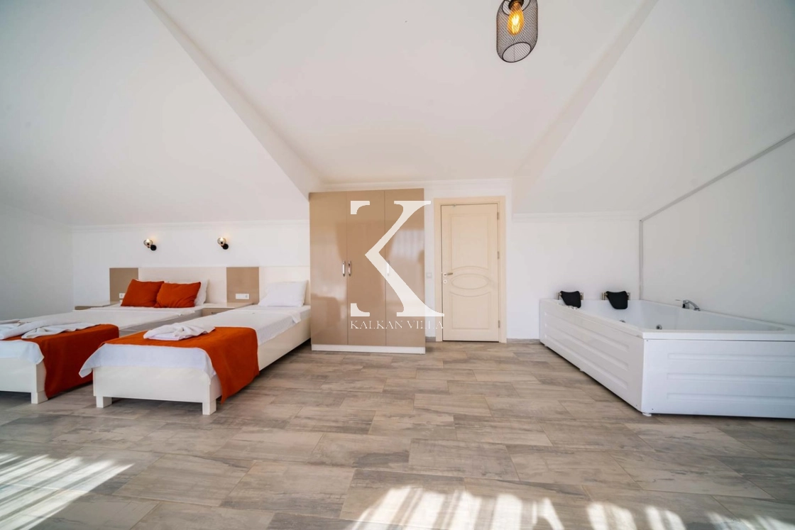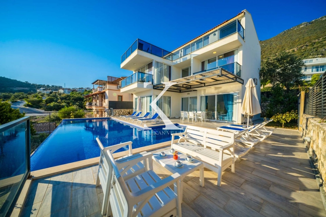 Villa Platos, Kalkan’ın merkezi bölgelerinden Kızıltaş’ta konumlanan; 5 yatak odası ve 10 kişilik konaklama kapasitesi ile kalabalık aileler ve arkadaş grupları için ideal, lüks ve konforlu bir tatil villasıdır.