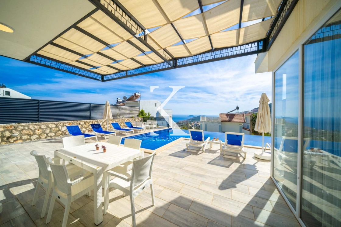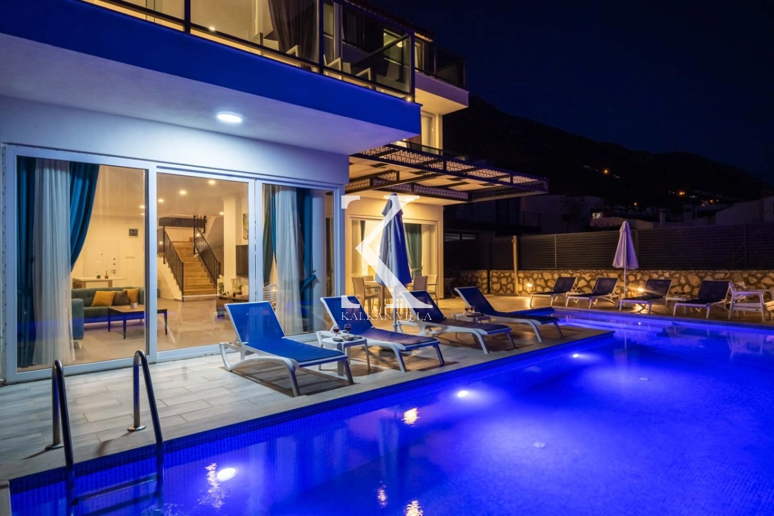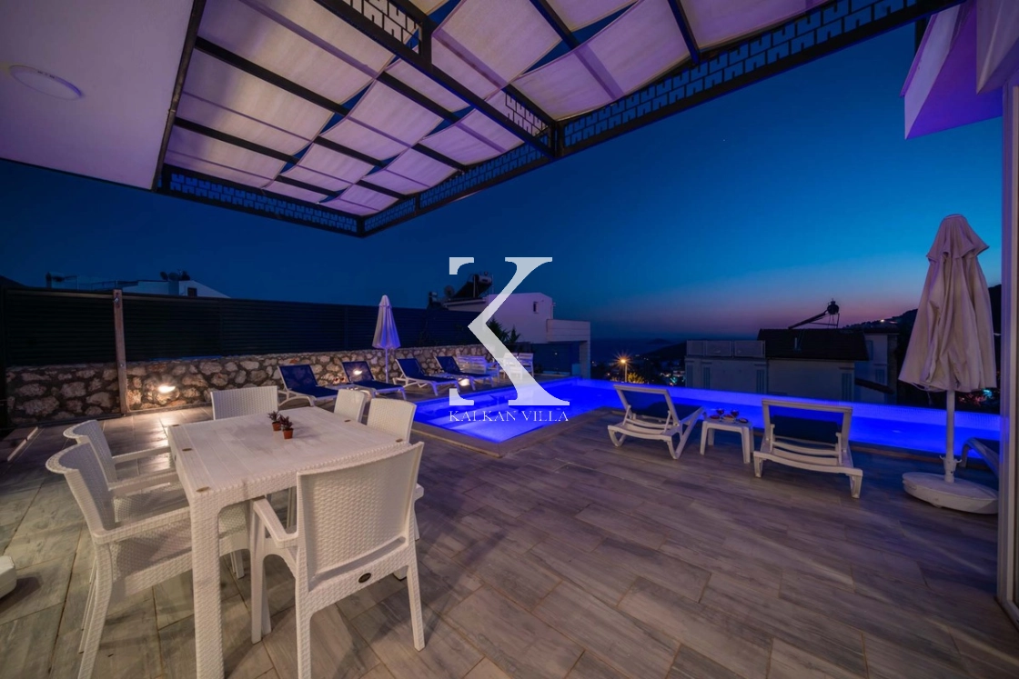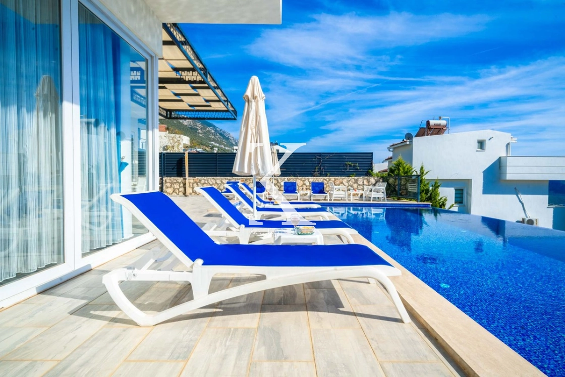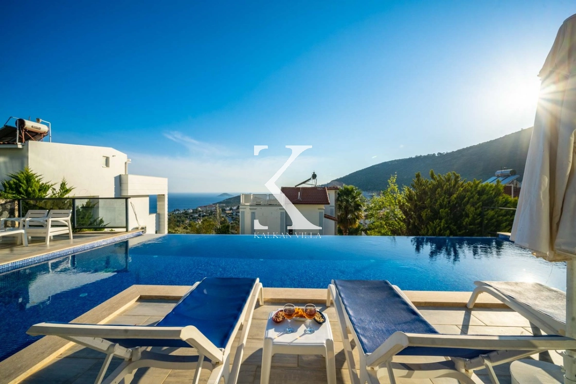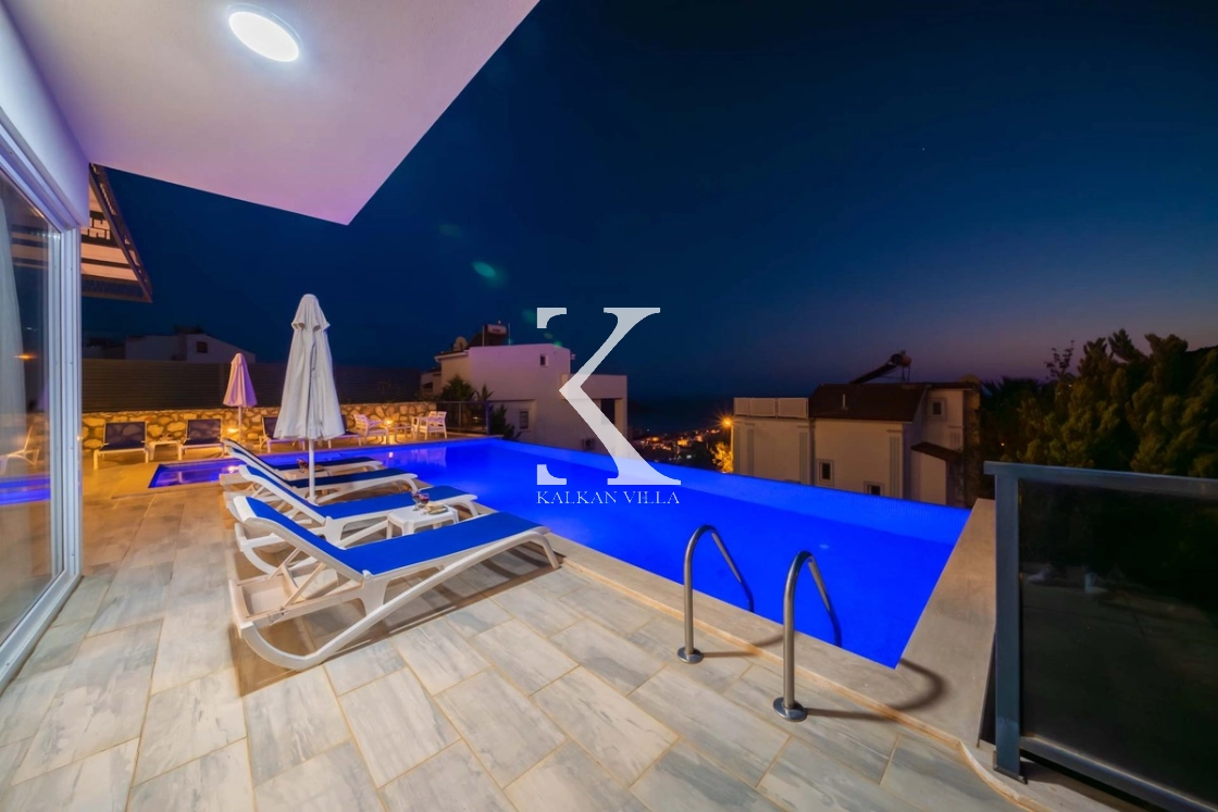 Geniş ve ferah iç yaşam alanları, modern dekorasyonu ve manzaralı terasıyla öne çıkan Villa Platos’ta; özel yüzme havuzu, şezlonglar, oturma alanı, yemek masası ve barbekü bulunmaktadır. Konum avantajı ve sunduğu üst seviye konfor ile Kalkan’da lüks bir villa tatili arayan misafirler için mükemmel bir tercihtir.