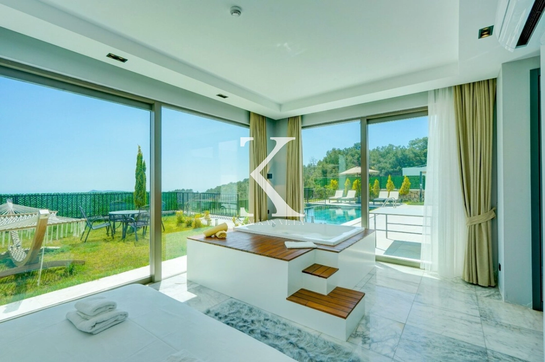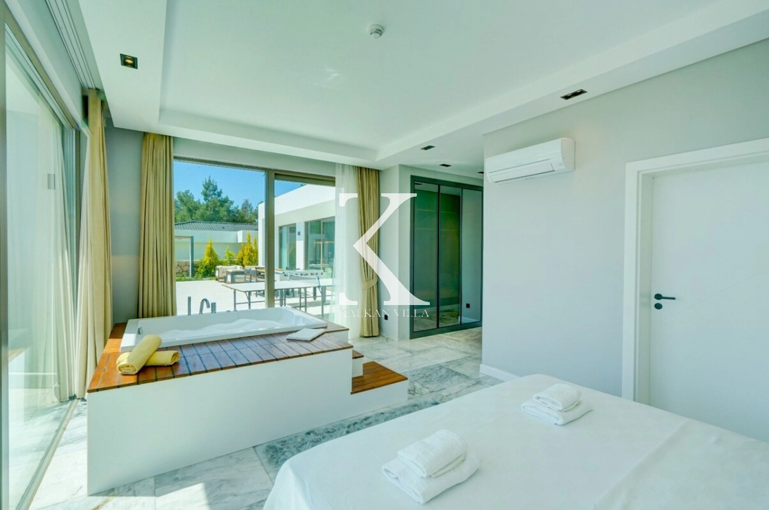 Modern ve lüks detaylarla tasarlanan villa, çift jakuzi ayrıcalığı ve tamamen korunaklı özel havuz alanı sayesinde hem konforu hem de mahremiyeti bir arada sunmaktadır. Doğayla iç içe sakin konumu sayesinde şehir gürültüsünden uzak, huzurlu bir tatil imkânı sağlar.