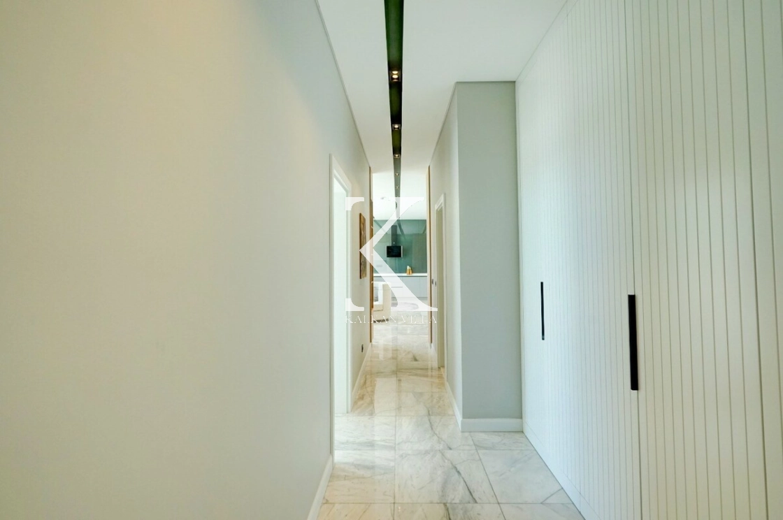Modern ve şık tasarıma sahip salon bölümünde ultra konforlu oturma grubu, TV, sehpa ve klima yer almaktadır. Salon içerisinden havuz terasına direkt çıkış bulunmaktadır.