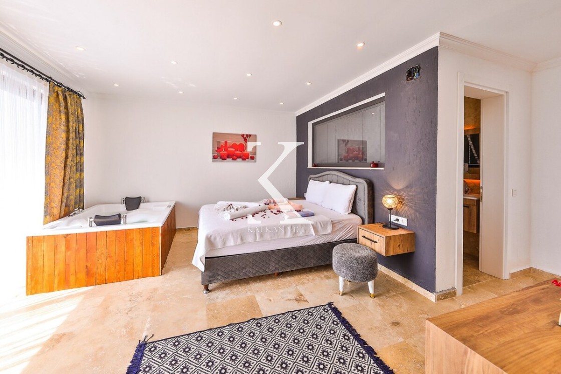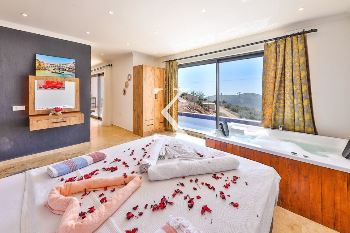 Balayı çiftleri için özel olarak tasarlanan bu yatak odasında, manzaraya karşı jakuzi keyfiyle tatilinizi daha da romantik hale getirebilirsiniz.