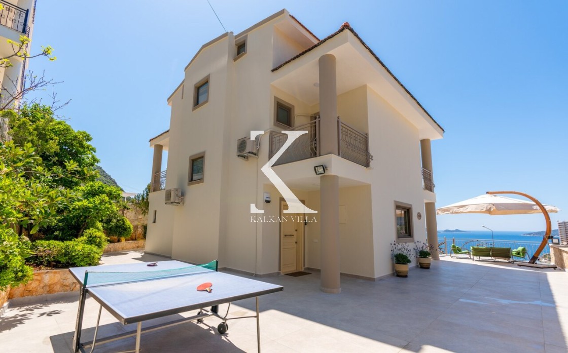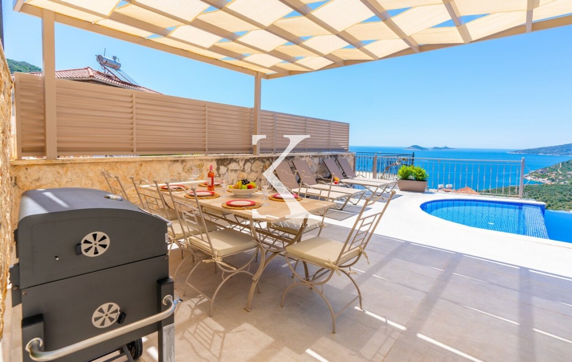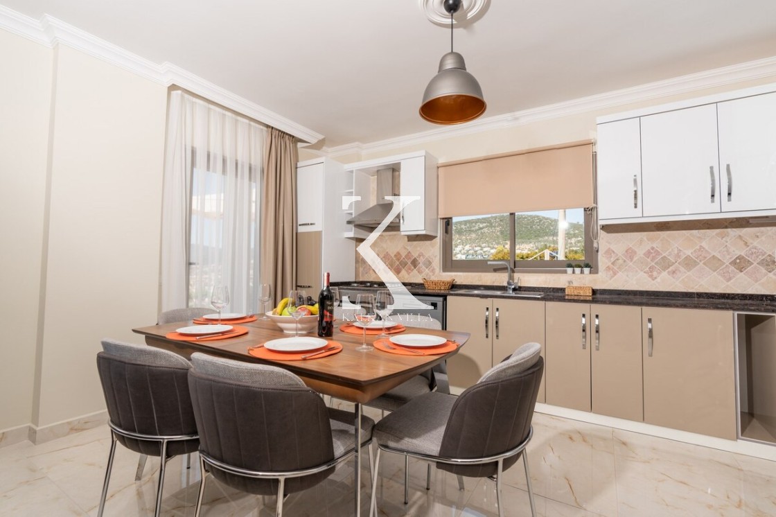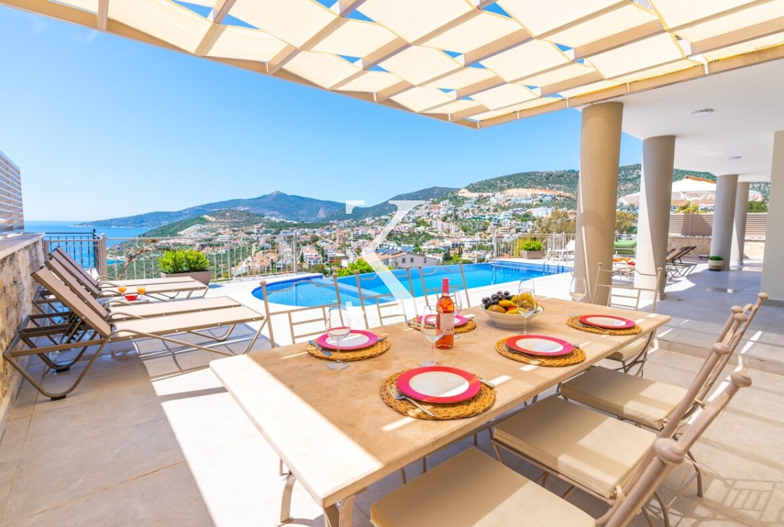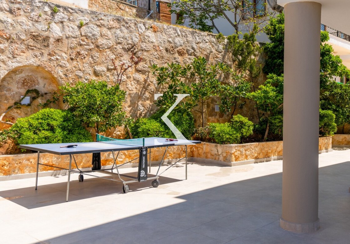 Üst katta dinlenmek ve güneşlenmek için Kalkan manzaralı geniş bir seyir terası daha bulunur. Bu alanda oturma grubu, masa ve sandalyeler yer alır.