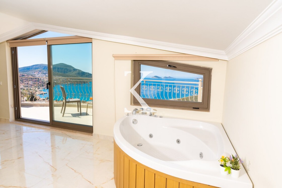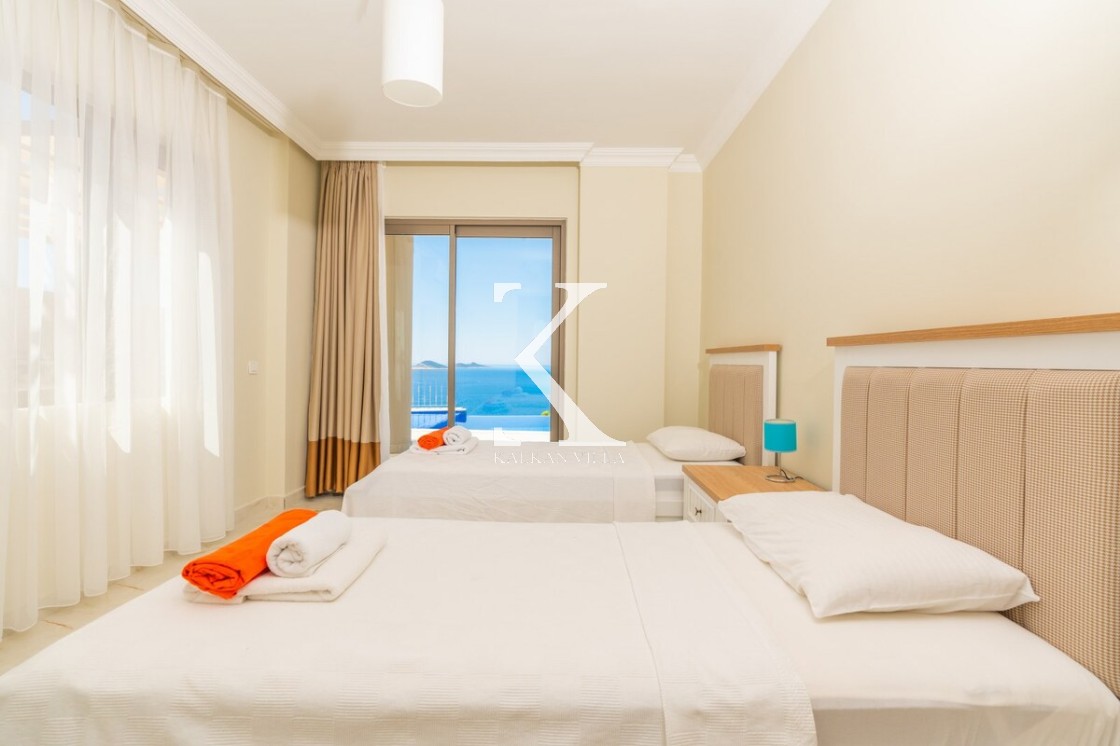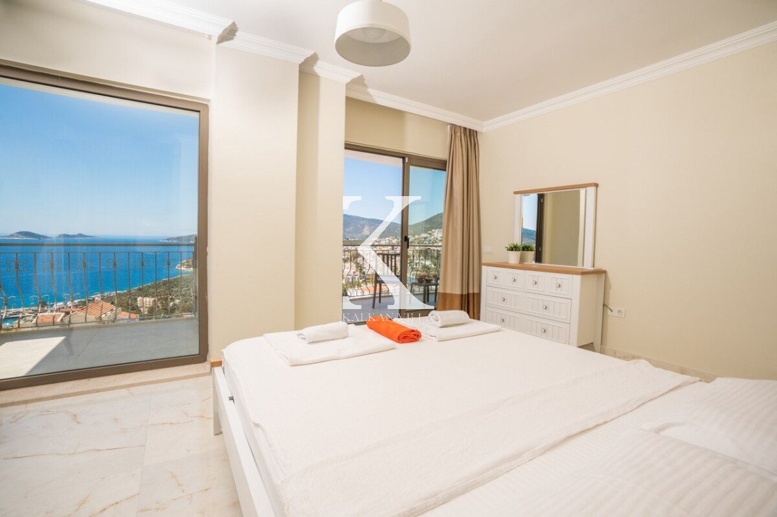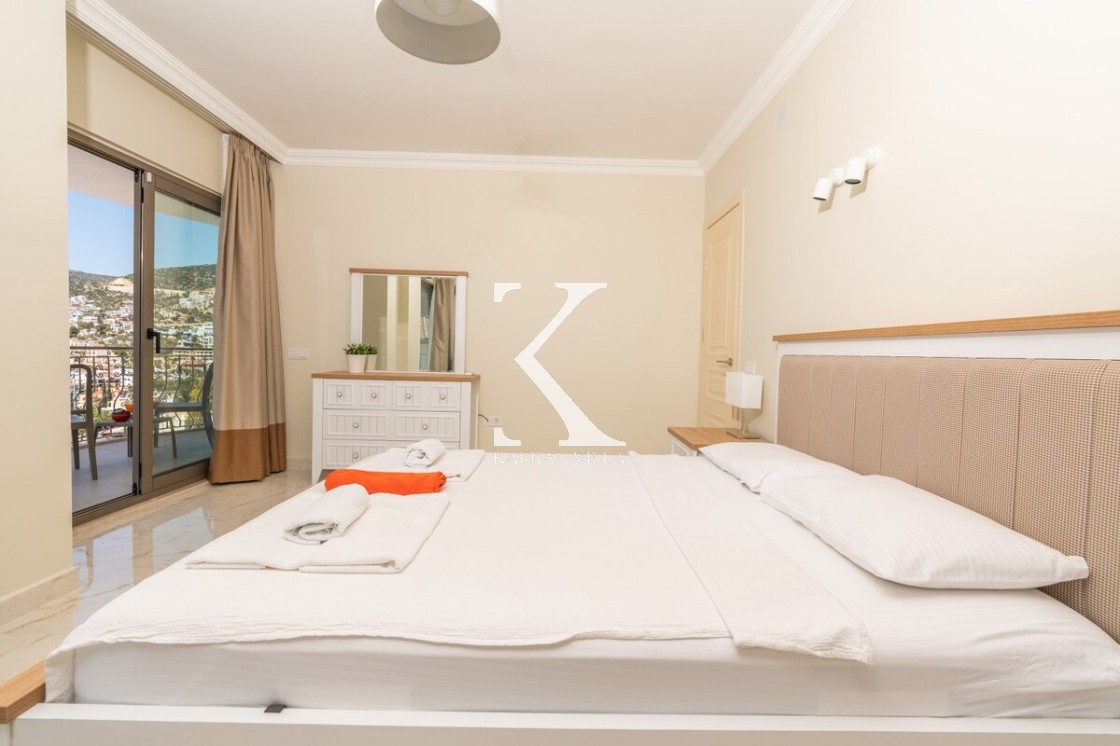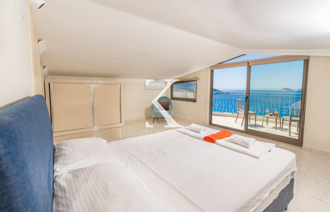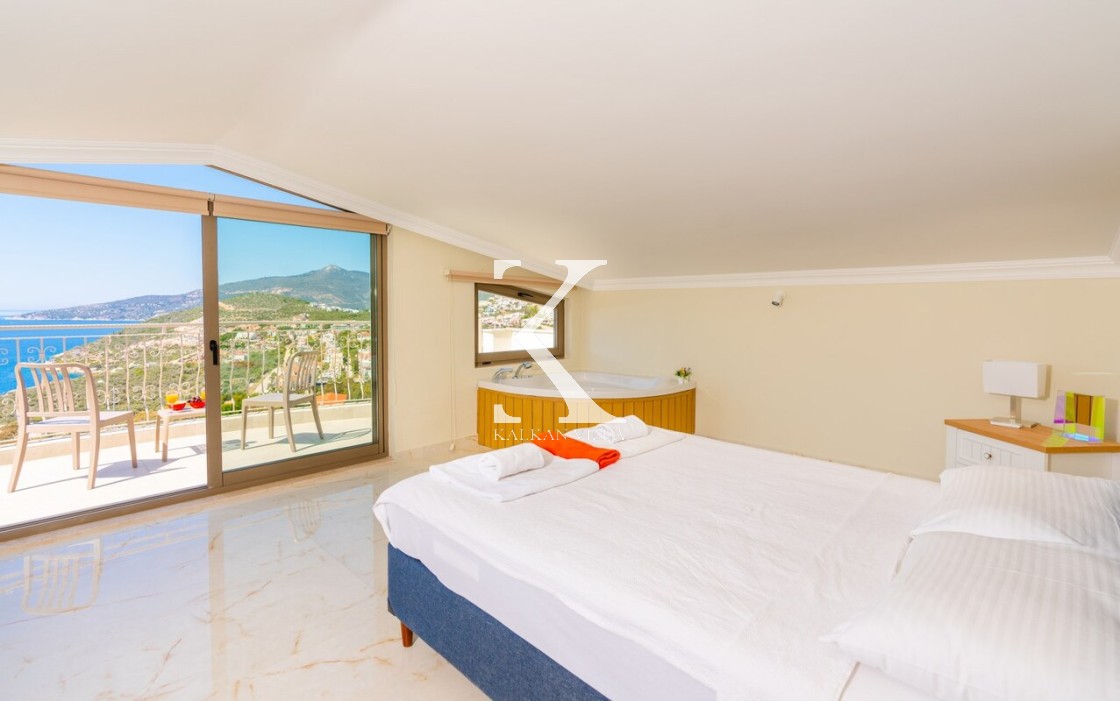 En üst katta yer alan geniş en-suite banyolu odada iki büyük yatak ve oda içinde jakuzi bulunmaktadır. Oda, Kalkan körfezinin muhteşem manzarasına hakim geniş bir balkona açılmaktadır.