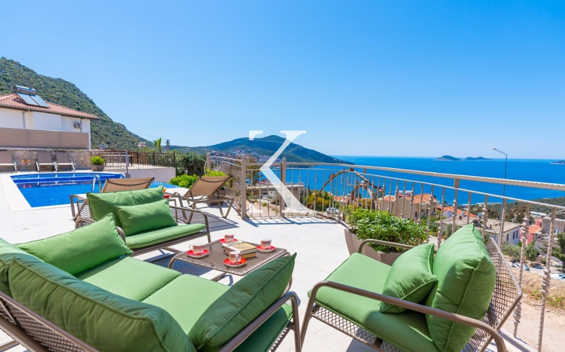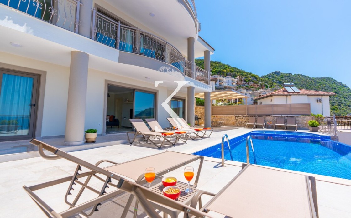 Üst katta Kalkan manzaralı geniş seyir terası