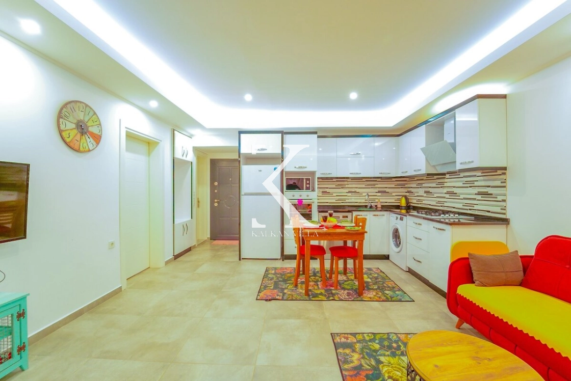 Beyaz dolapları ile modern bir tasarıma sahip Amerikan mutfak içerisinde; buzdolabı, bulaşık makinesi, ocak, fırın, elektrikli su ısıtıcısı, tost makinesi, 4 kişilik yemek masası, yemek takımları ve yemek pişirme araç gereçleri yer almaktadır.