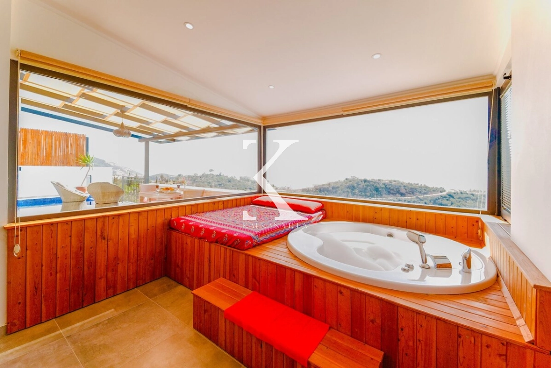 Yatak odasında bulunan jakuzi, tatilinize romantik ve rahatlatıcı bir dokunuş katarken; Villa Reis, doğayla baş başa, huzurlu ve özel bir tatil arayan misafirler için mükemmel bir kaçış noktasıdır.