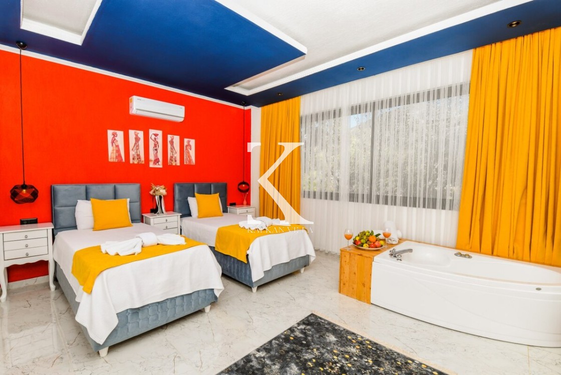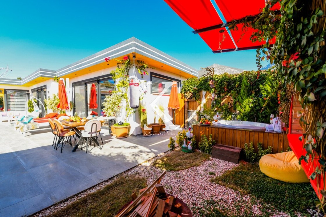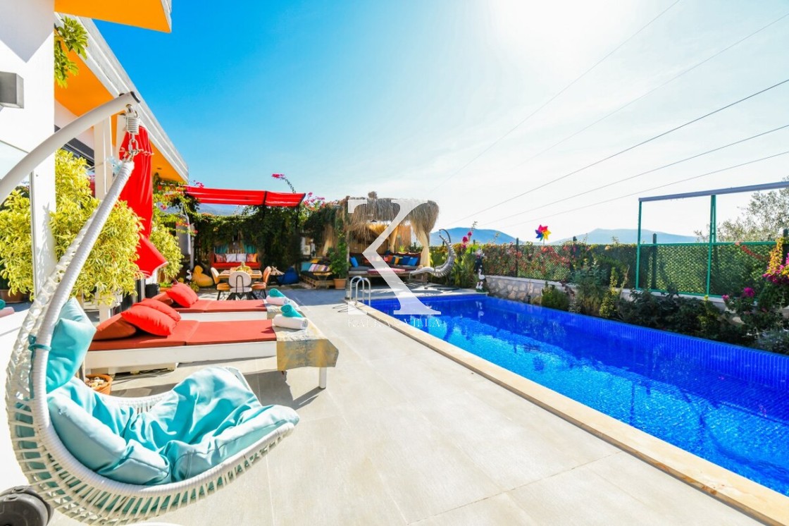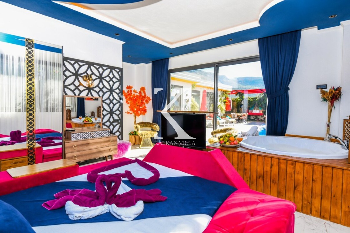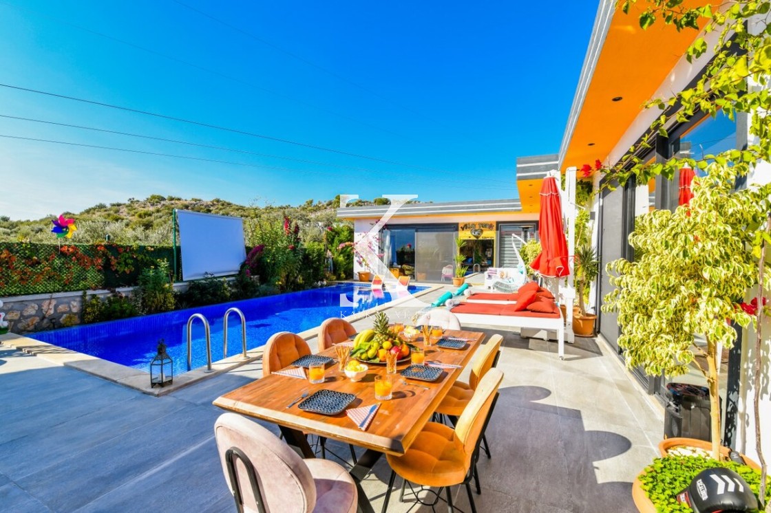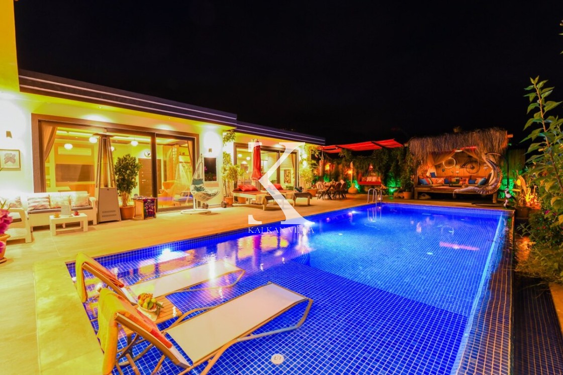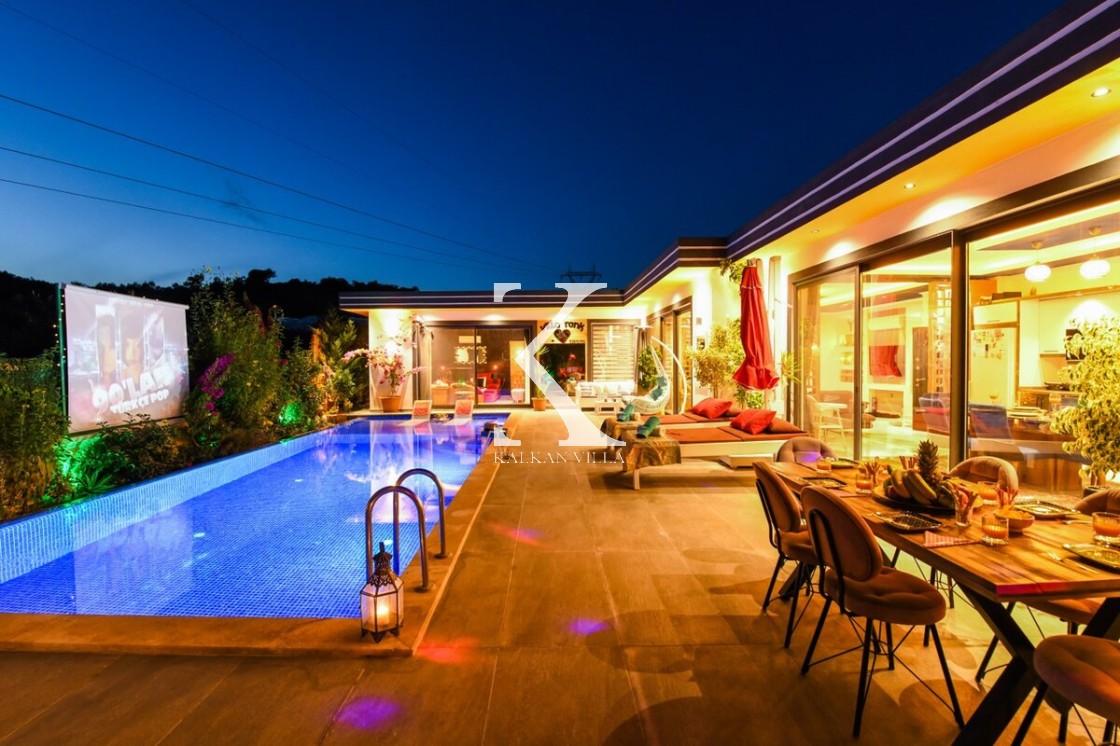 Villa Renk, Kalkan’ın doğa ile iç içe, huzurlu Çayköy bölgesinde konumlanan; hem balayı çiftleri hem de çekirdek aileler için tasarlanmış, eğlence ve konforu bir arada sunan özel bir tatil villasıdır.