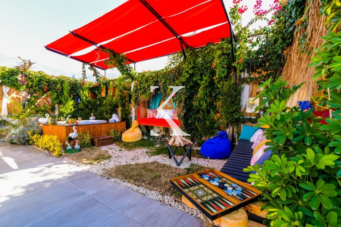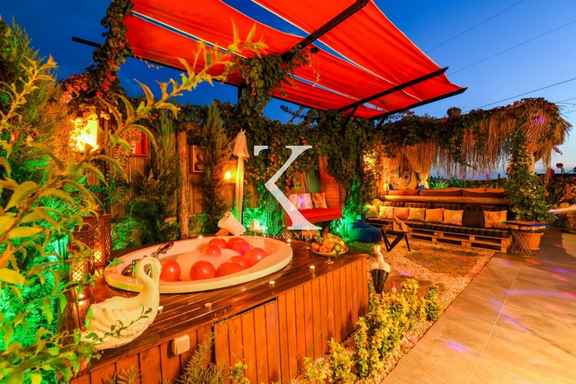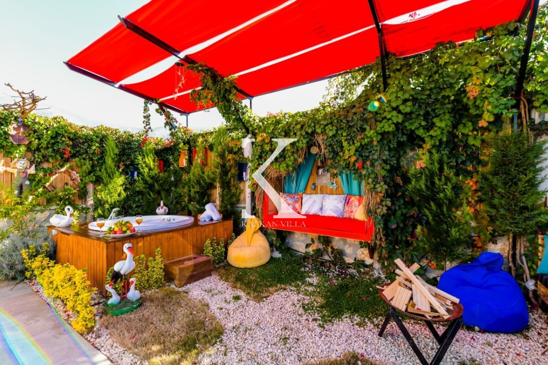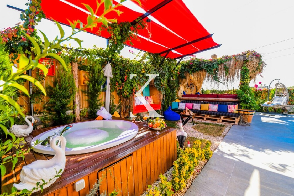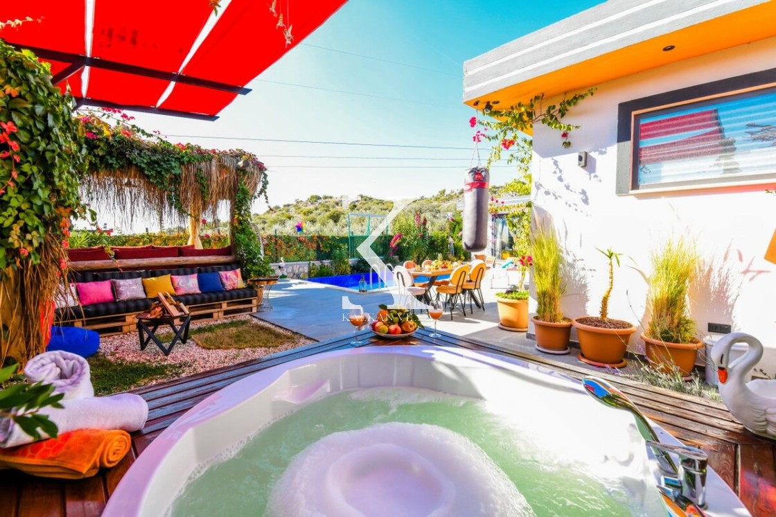 Havuz terasında ayrıca jakuzili alan, geniş köşk, salıncak ve oturma grupları bulunmaktadır.
