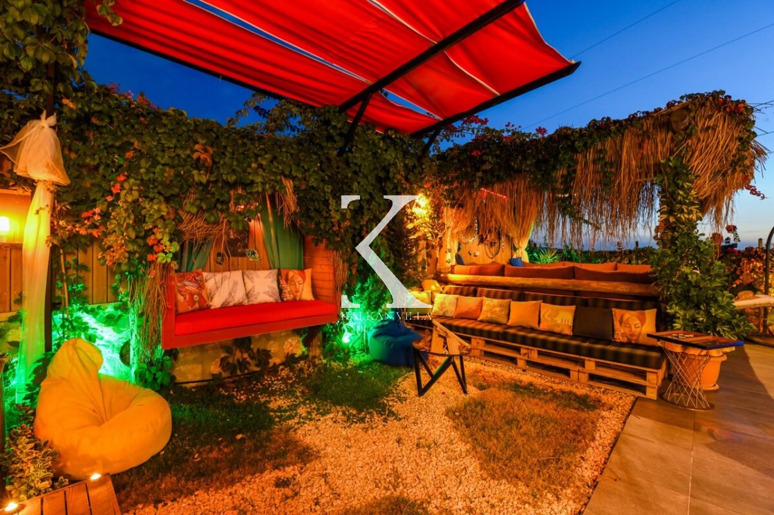 Geniş köşk, salıncak ve konforlu oturma alanları