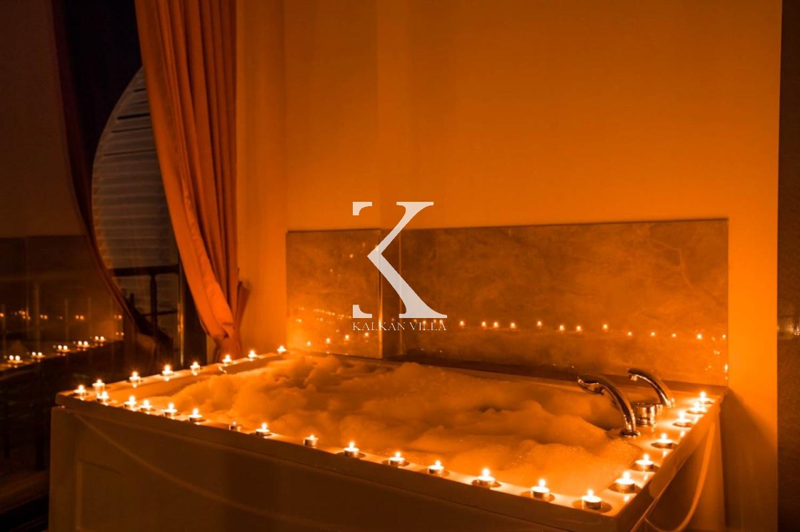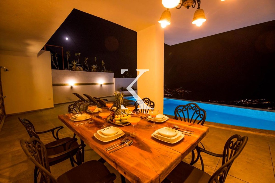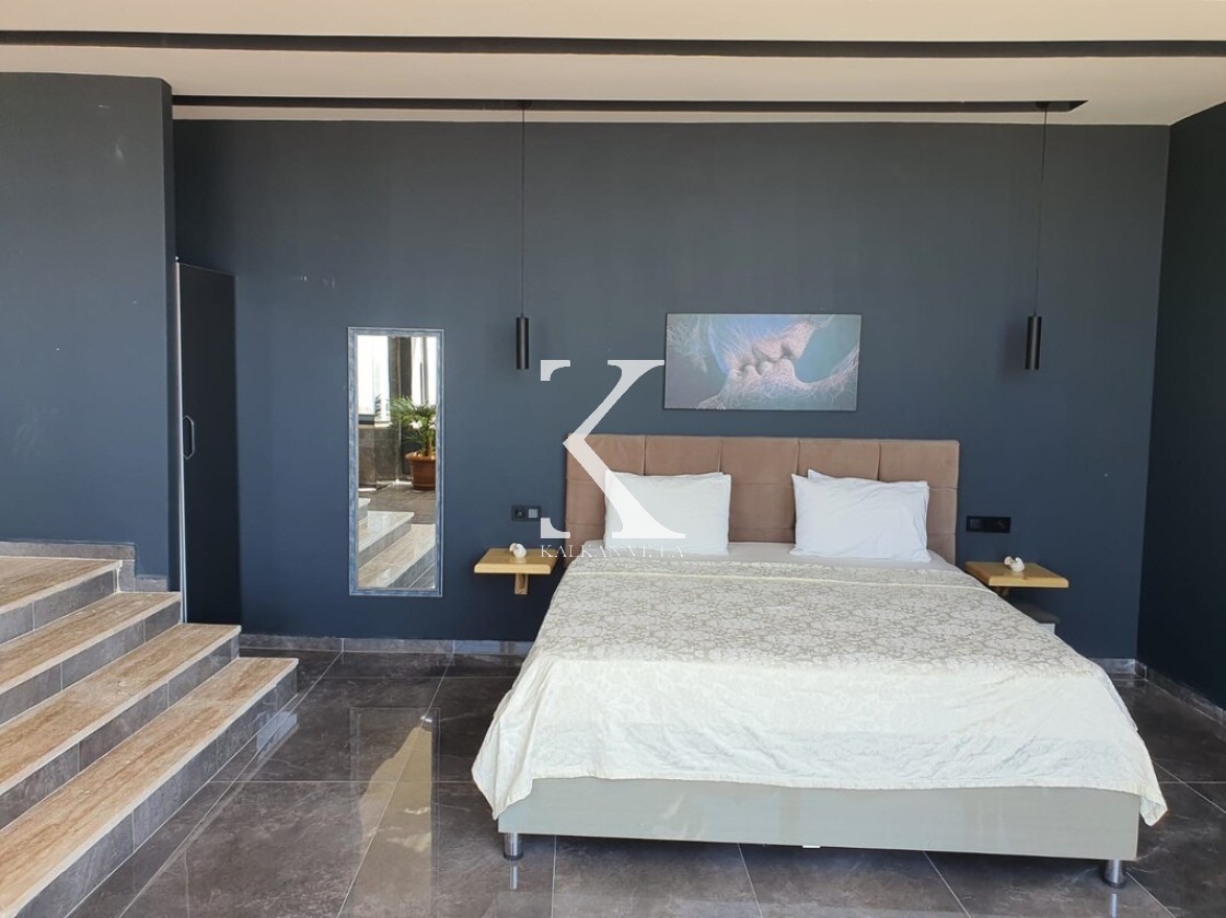 Villanın en dikkat çekici özelliklerinden biri, deniz manzaralı ve tam korunaklı iki adet özel yüzme havuzunun bulunmasıdır. Ayrıca çocuklar için özel bir havuz alanı da mevcuttur. Gözlerden uzak tasarımı sayesinde mahremiyete önem veren misafirler için mükemmel bir seçimdir.