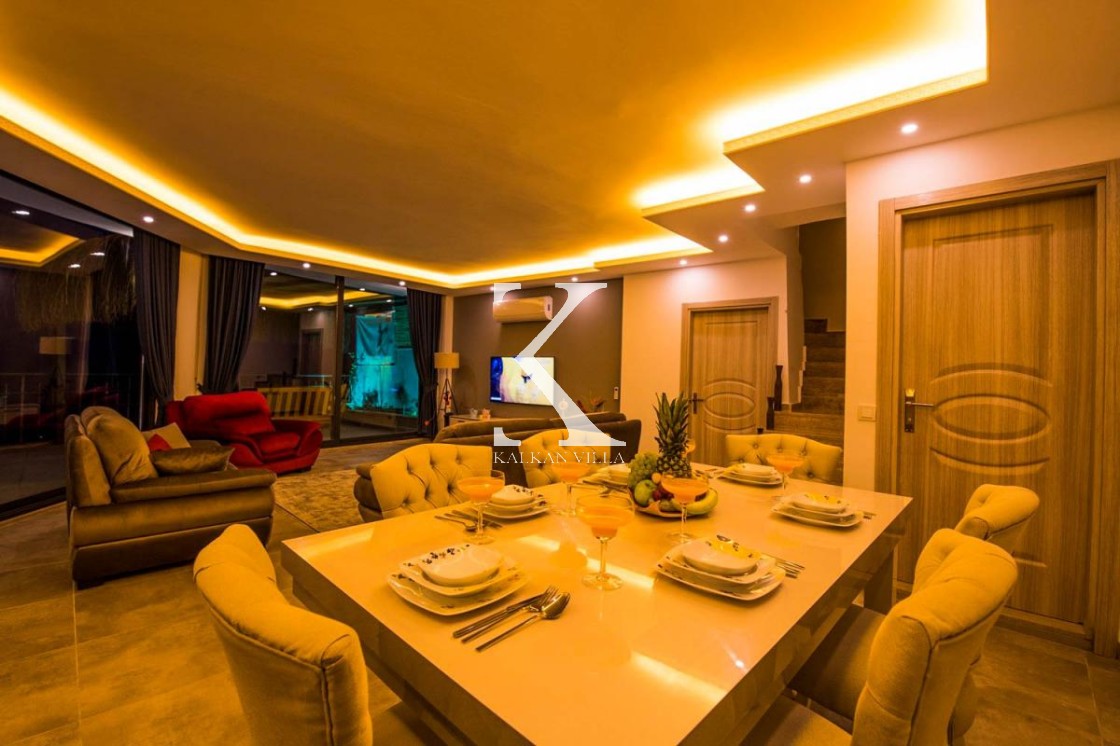 Doğa manzaralı geniş salon; konforlu oturma grubu, LCD TV, kablosuz internet, 6 kişilik yemek masası ve wc & lavabo ile donatılmıştır. Salondan havuz terasına direkt çıkış bulunmaktadır.