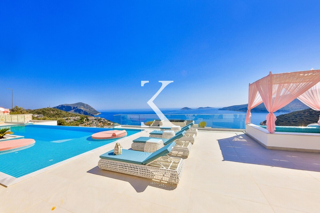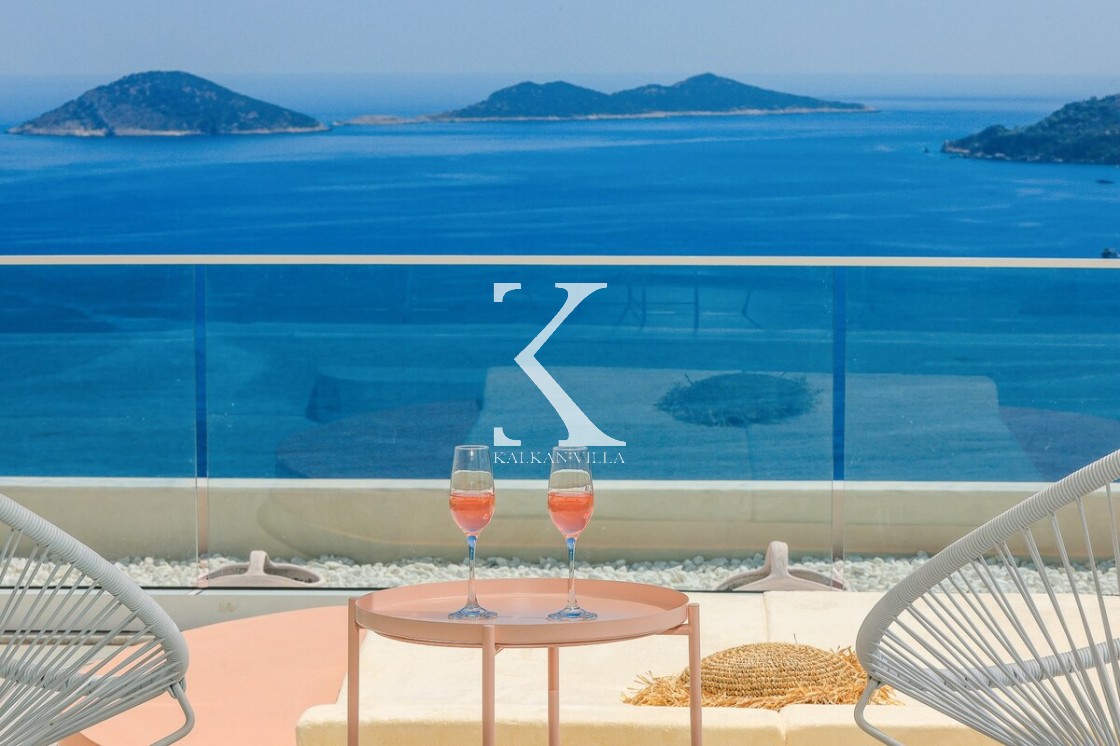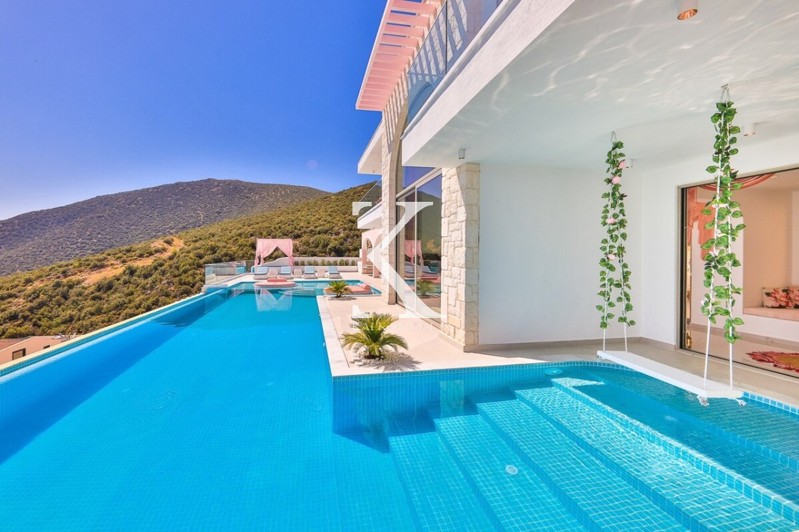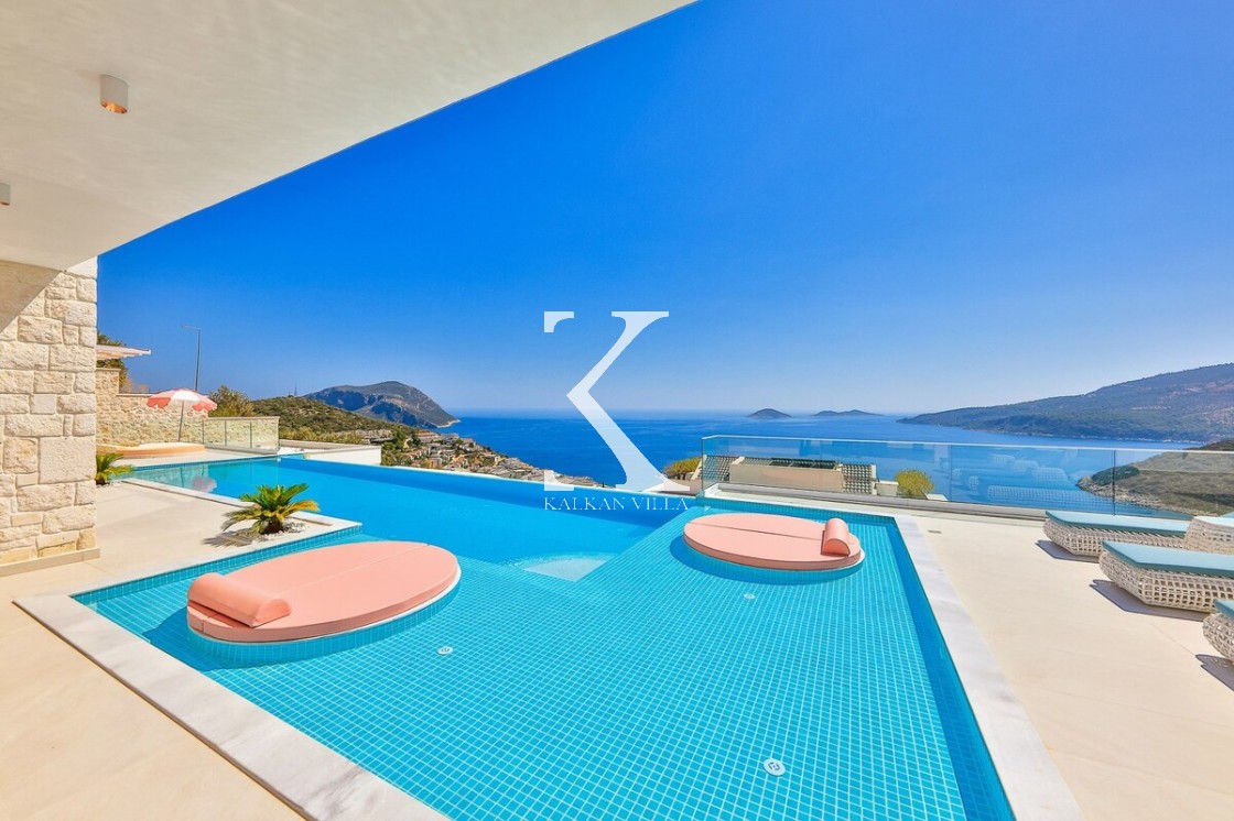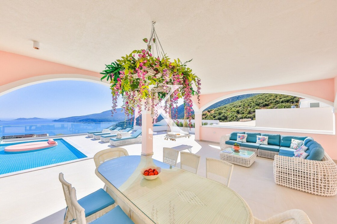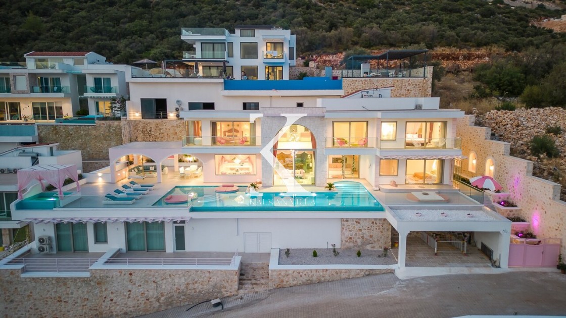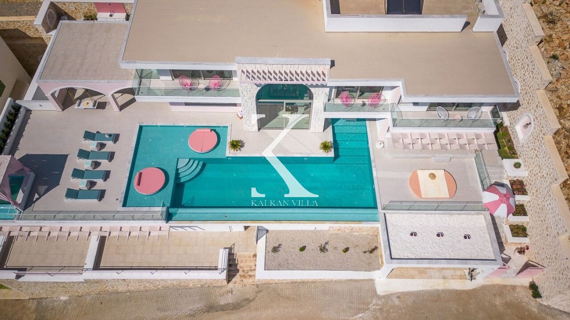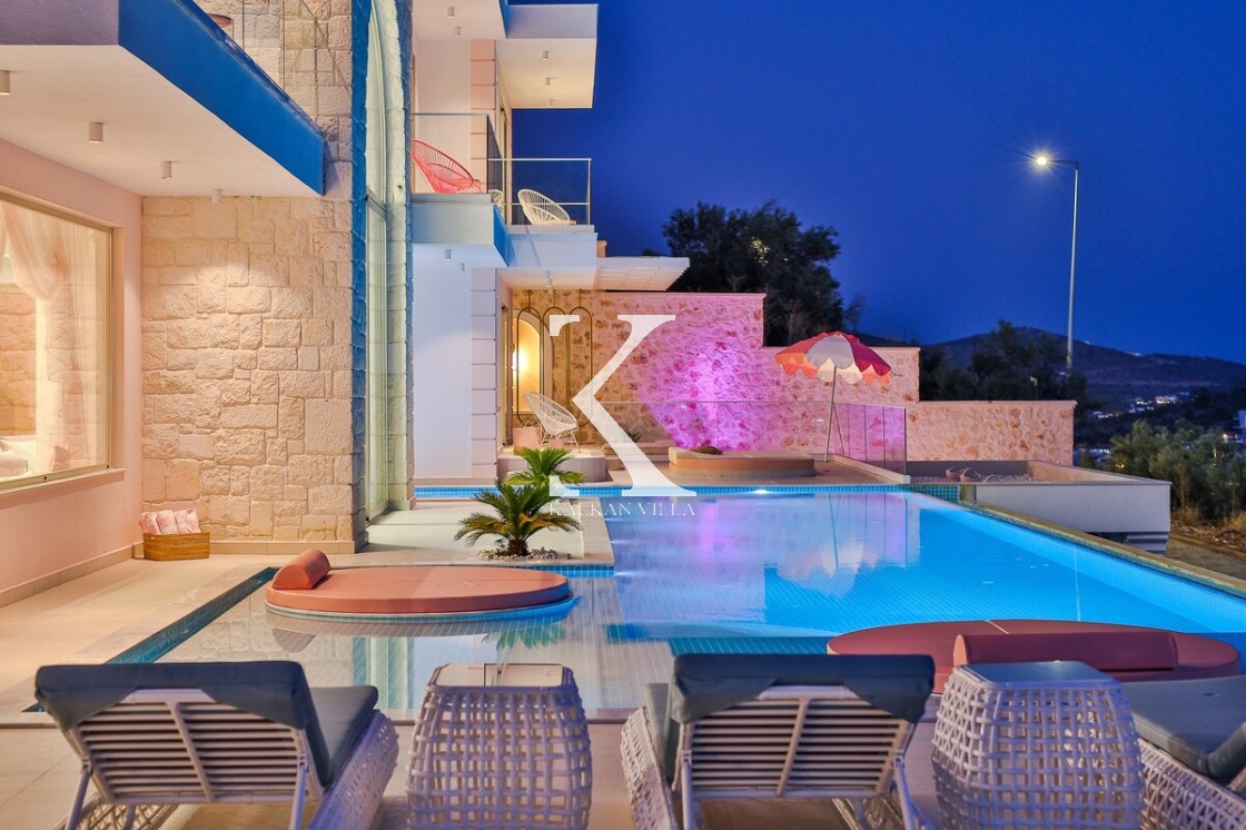 Kalkan’ın Kalamar bölgesinde yer alan Villa Rosy, modern mimarisi, lüks detayları ve büyüleyici deniz manzarasıyla kalabalık aileler ve arkadaş grupları için ideal bir tatil villasıdır.