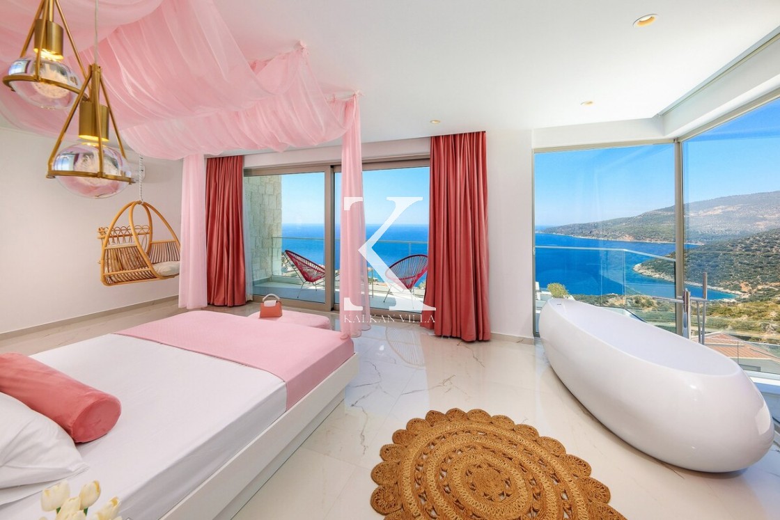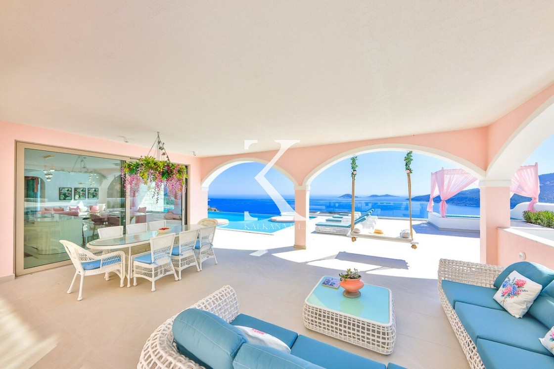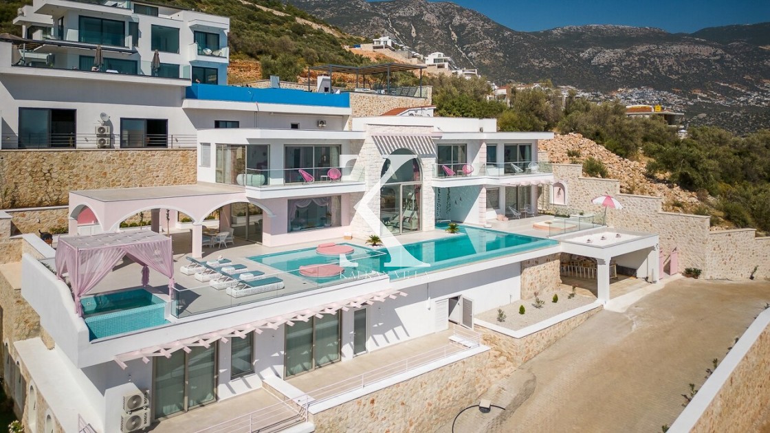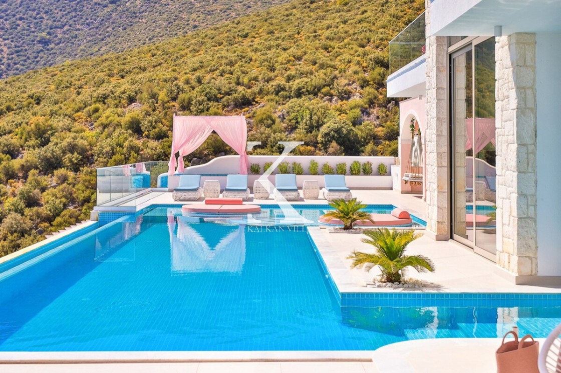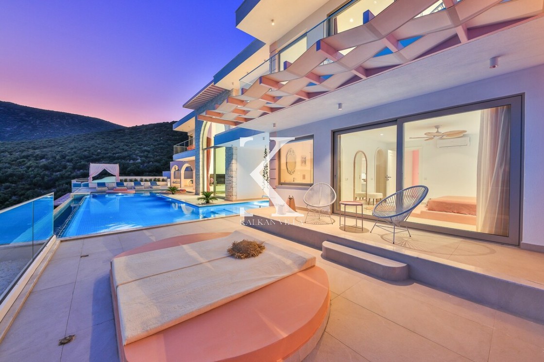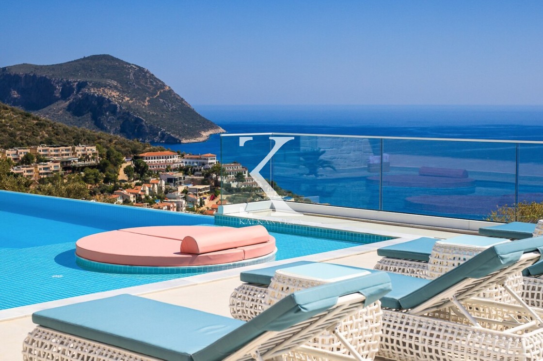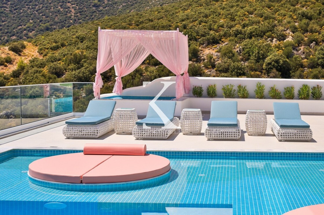 Kalkan’ın Kalamar bölgesinde yer alan Villa Rosy, modern mimarisi, lüks detayları ve büyüleyici deniz manzarasıyla kalabalık aileler ve arkadaş grupları için ideal bir tatil villasıdır.