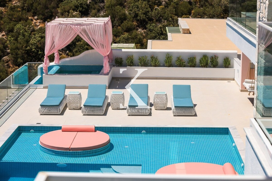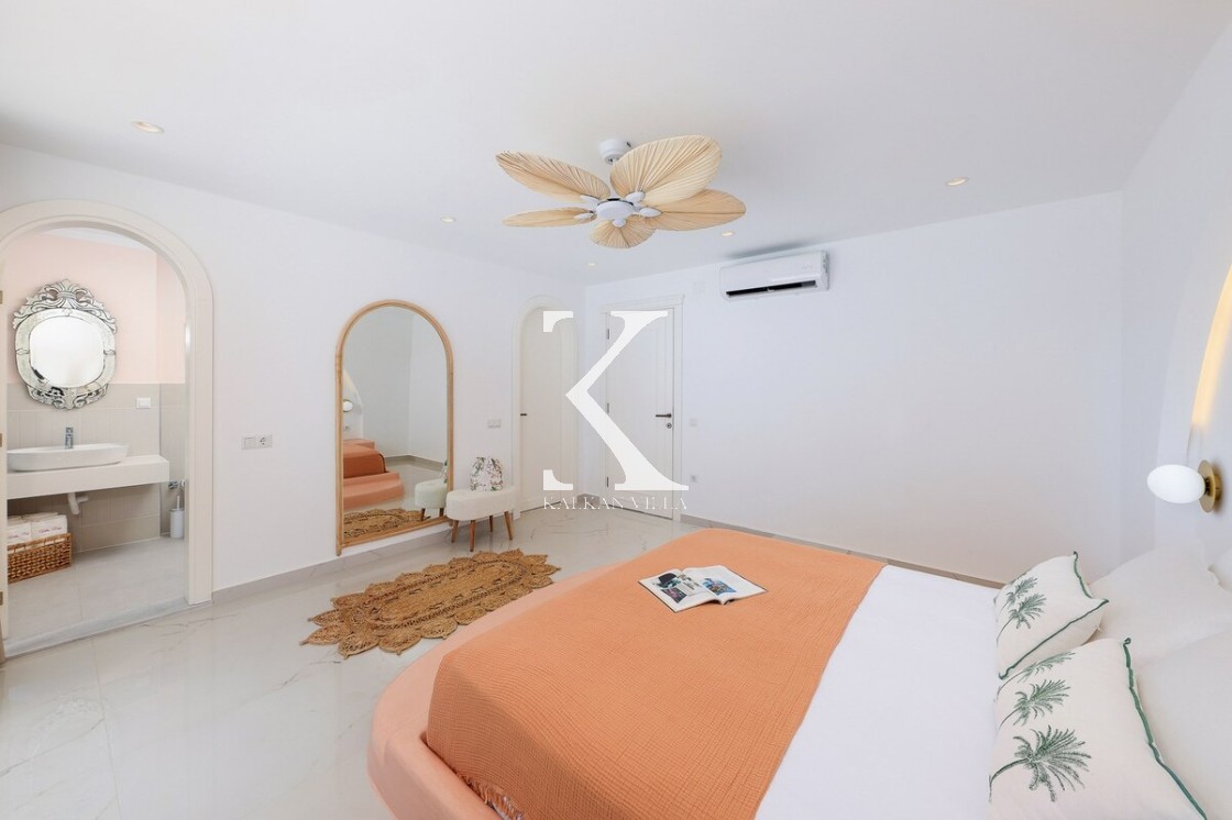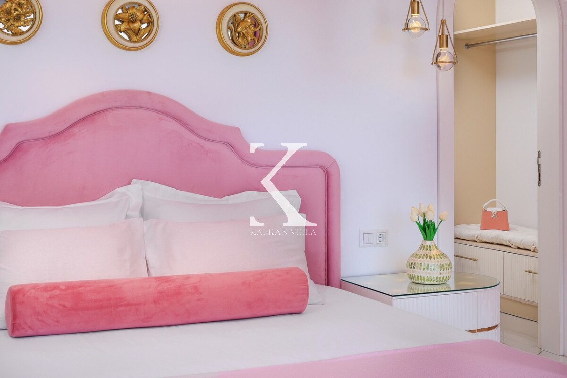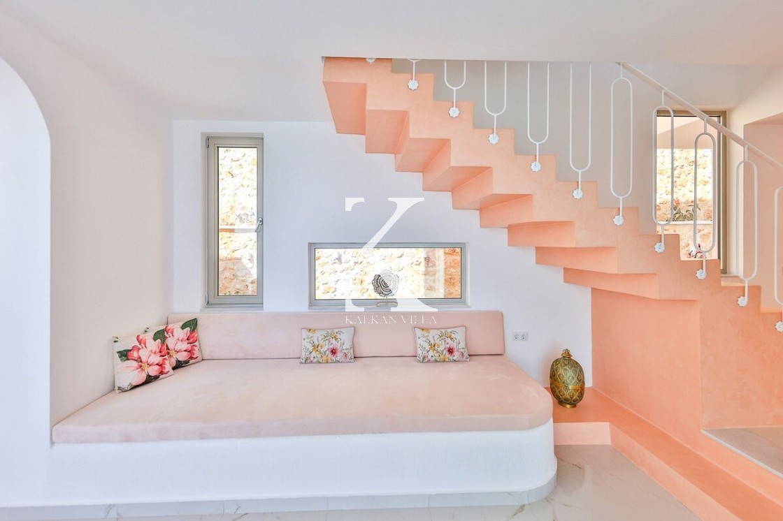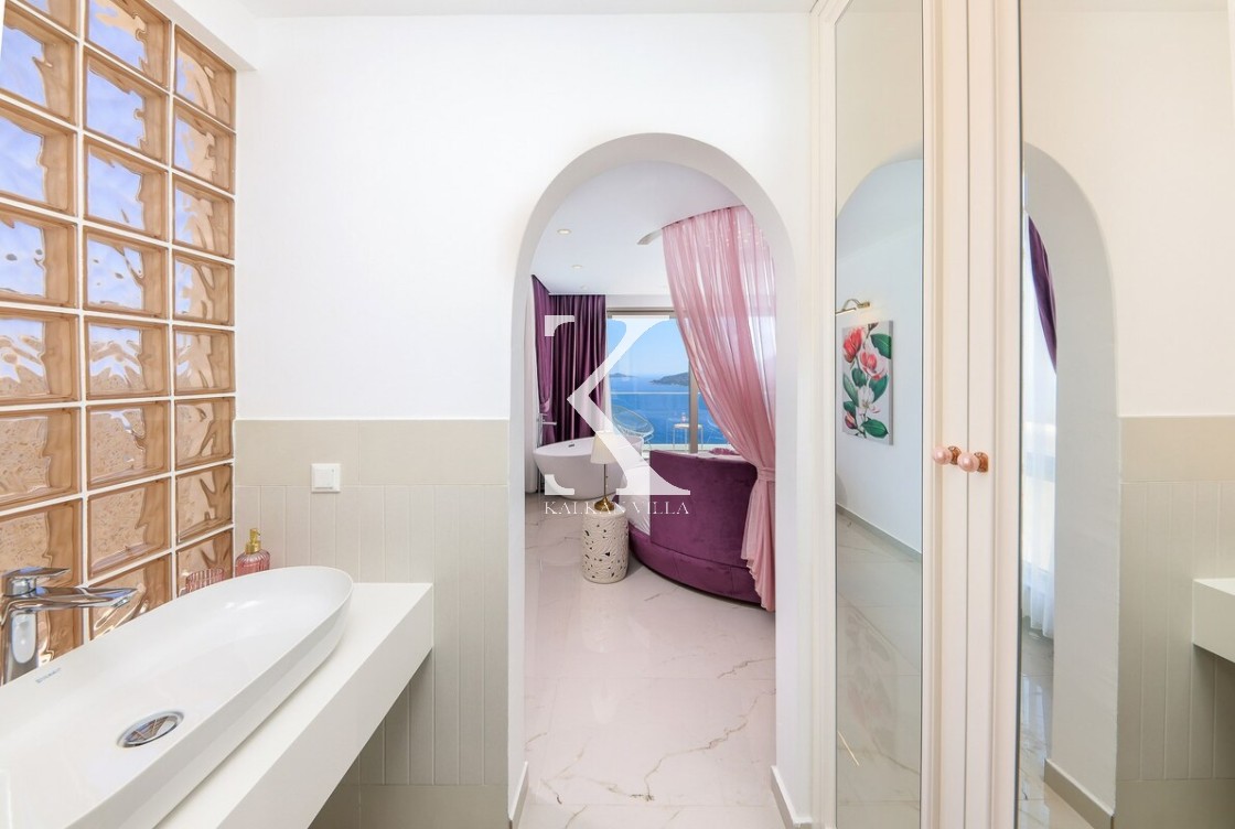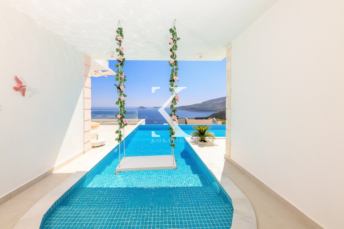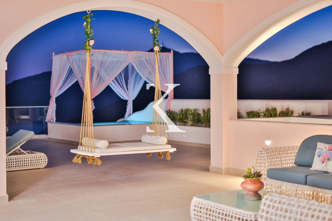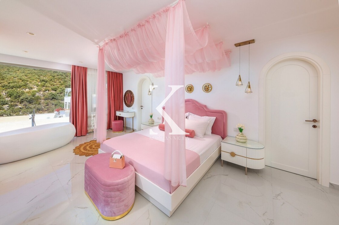 Kalkan’ın Kalamar bölgesinde yer alan Villa Rosy, modern mimarisi, lüks detayları ve büyüleyici deniz manzarasıyla kalabalık aileler ve arkadaş grupları için ideal bir tatil villasıdır.