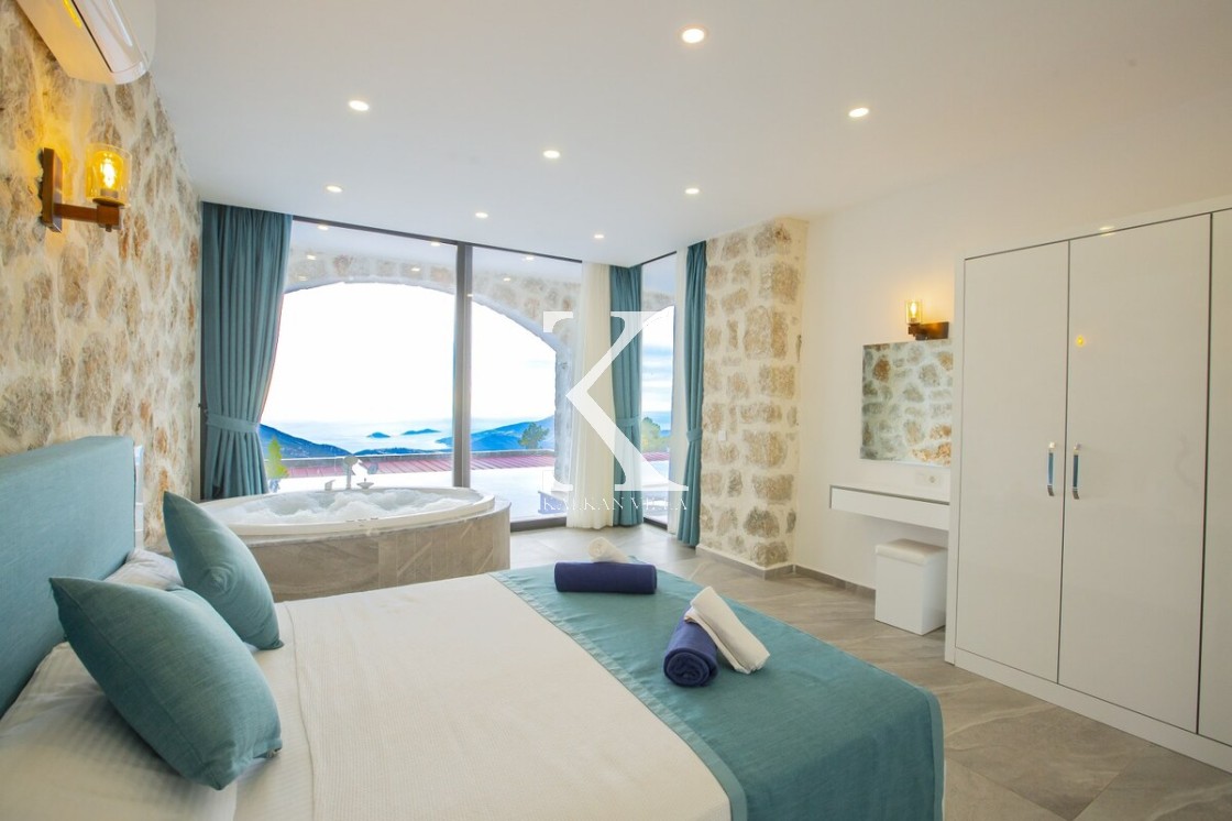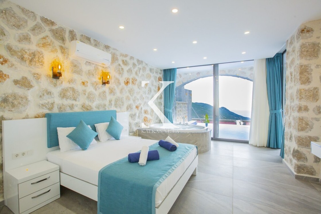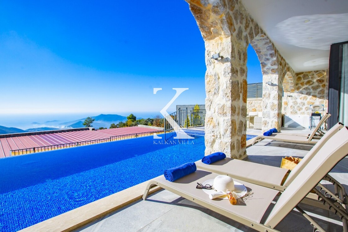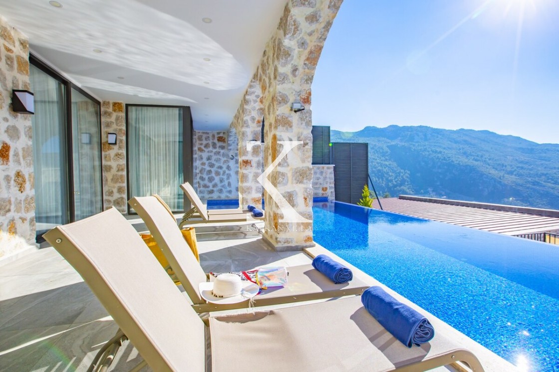 Kalkan’ın doğayla iç içe, huzur dolu atmosferiyle ünlü İslamlar bölgesinde yer alan Villa Royal 6, modern taş mimarisi ve konforlu tasarımıyla dikkat çeken özel bir kiralık villadır.