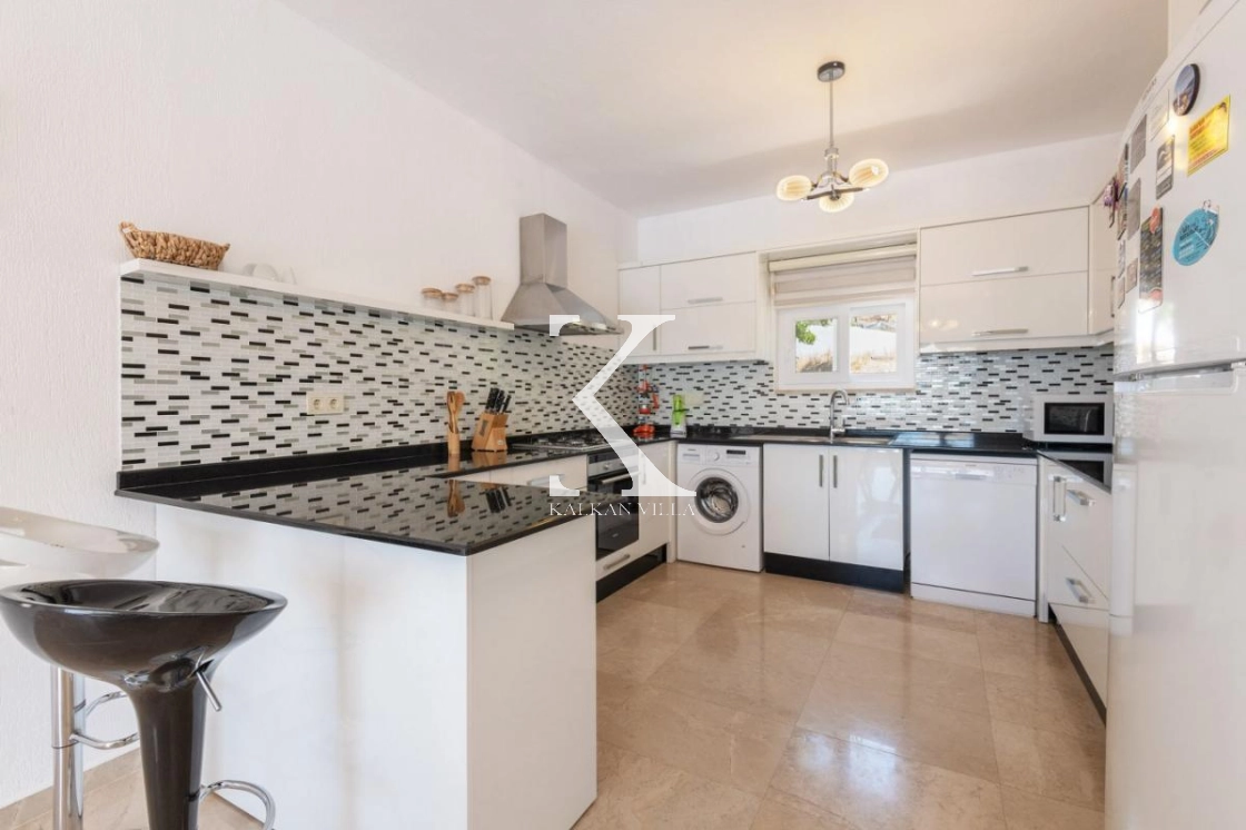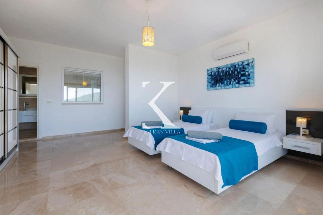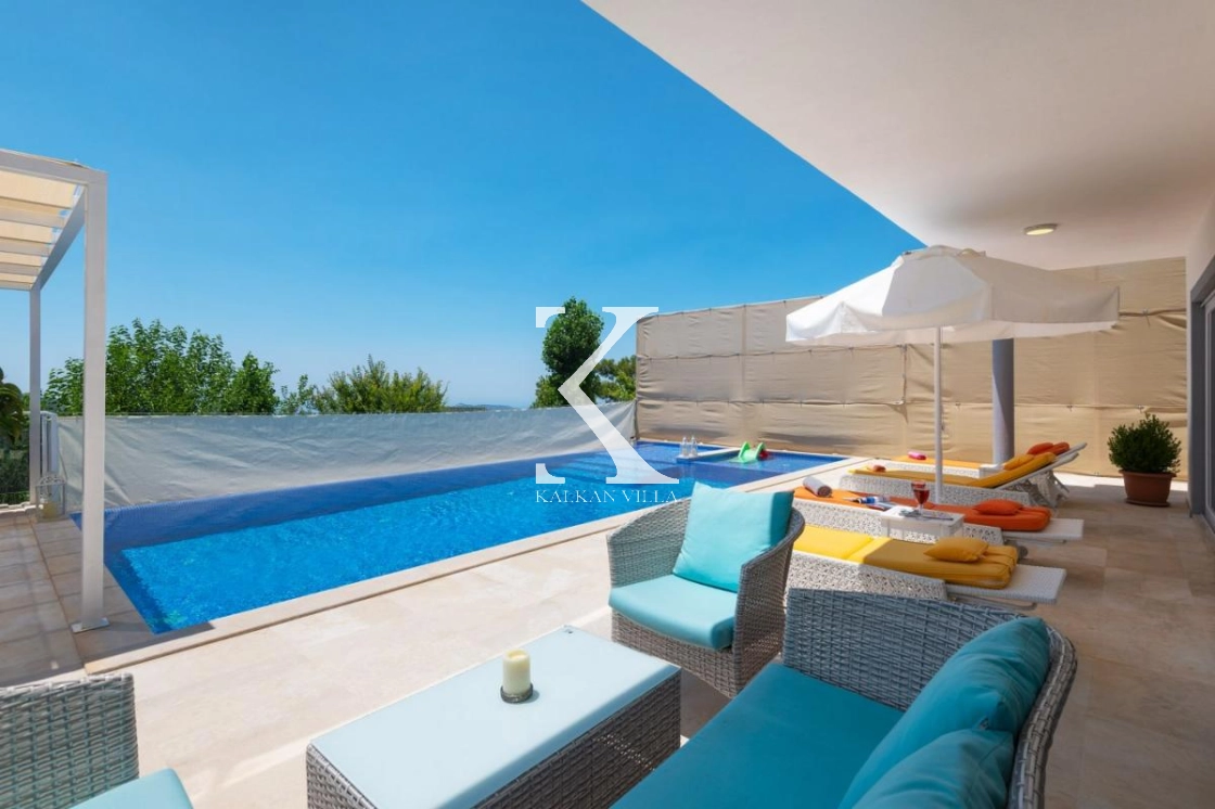 Villada çocuklu misafirler için ayrı bir çocuk havuzu bulunmaktadır. Ana havuzun ön kısmı ise perdeleme sistemi sayesinde isteğe bağlı olarak tamamen korunaklı hale getirilebilmektedir. Modern ve konforlu mobilyalarla döşenmiş iç mekânı, ferah ve kullanışlı bir yaşam alanı sunar.