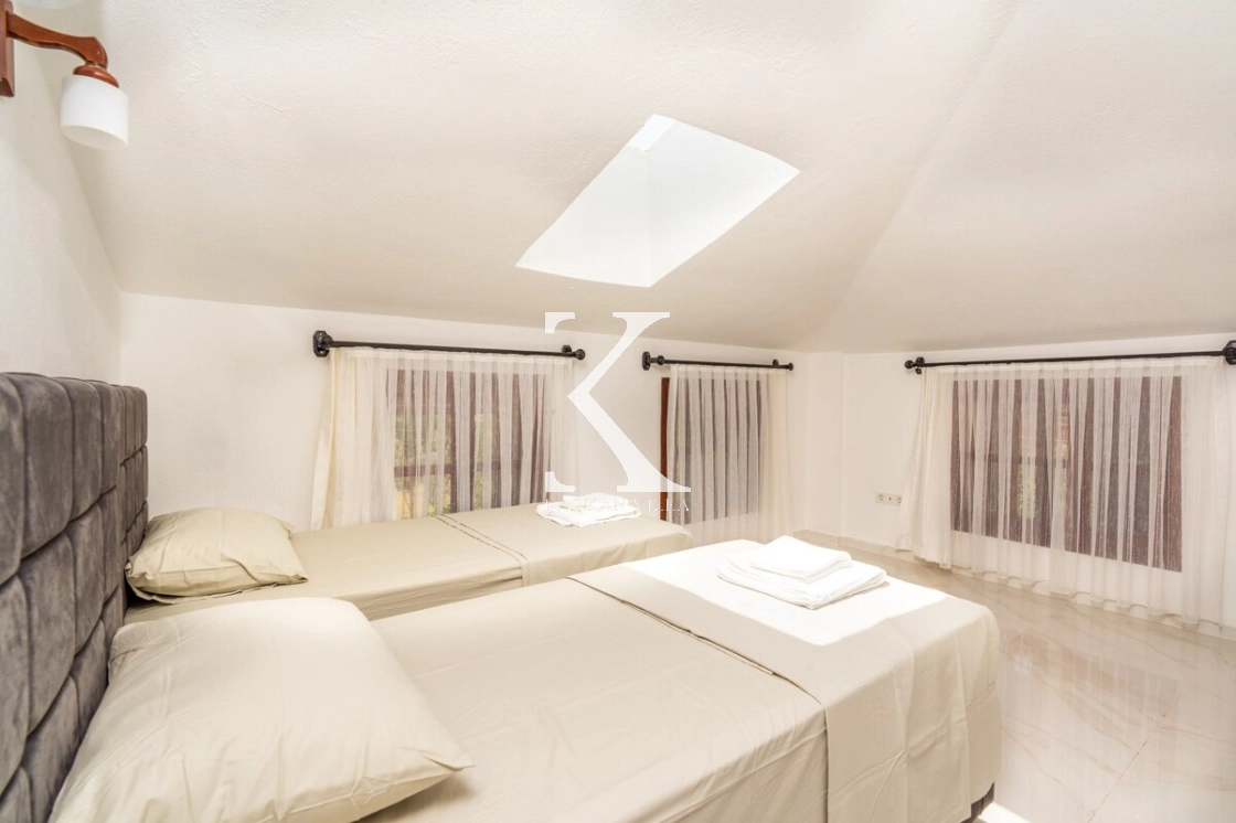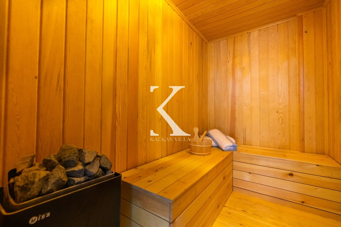 Muhafazakâr konseptte tasarlanan villamız; korunaklı açık havuz, kapalı ısıtmalı havuz, jakuzi, Türk hamamı, sauna ve barbekü alanı gibi ayrıcalıklı olanaklarıyla yılın her mevsimi konforlu bir tatil imkânı sunar. Dışarıdan görünmeyen geniş bahçesi sayesinde mahremiyet ön plandadır.