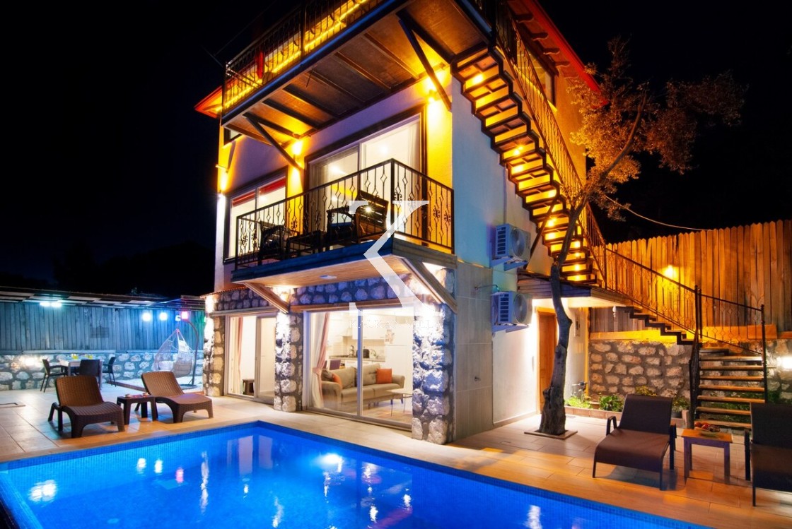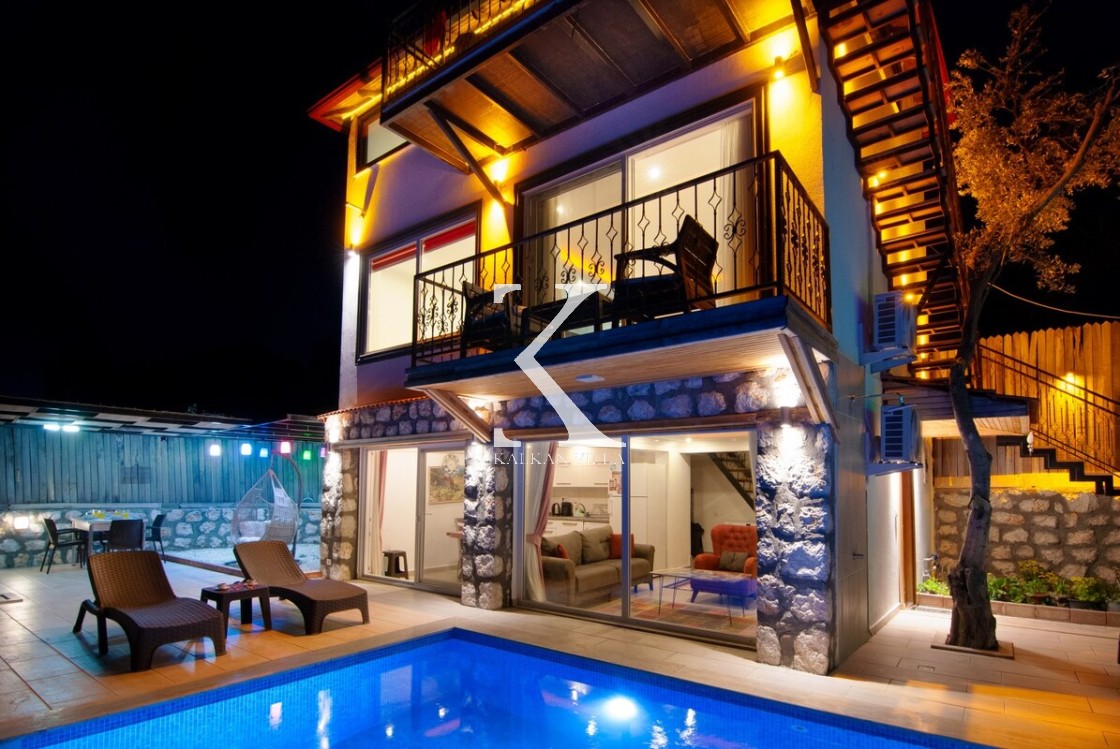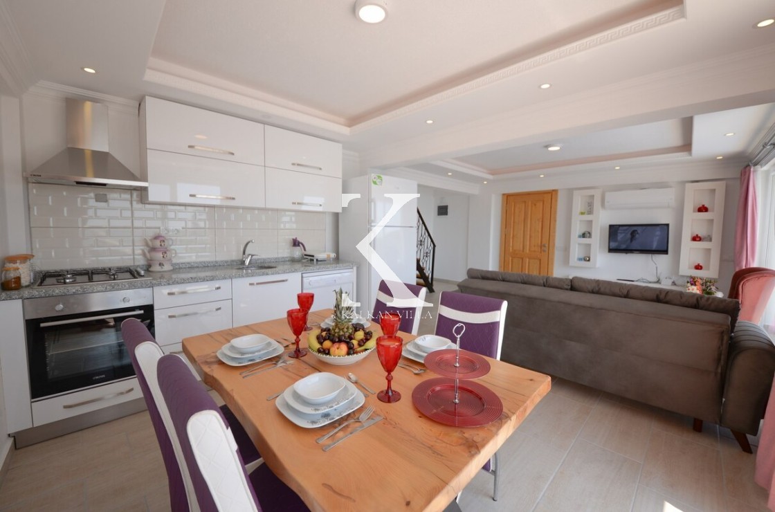 Zemin kat ve 1. kat girişleri ortak, 2. kat girişi ise tamamen ayrıdır. Bu yapısı sayesinde hem balayı çiftleri, hem de birlikte tatil yapmak isteyen ama özel alanını korumak isteyen iki çift veya 4 kişilik çekirdek aileler için son derece konforlu bir çözüm sunar.