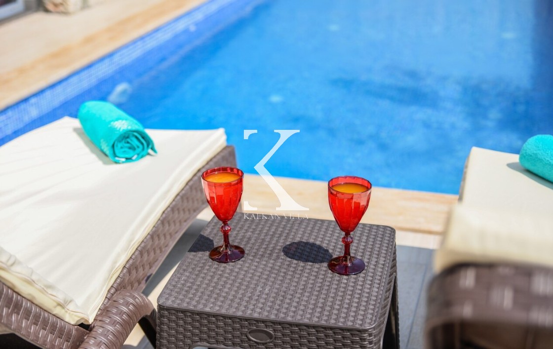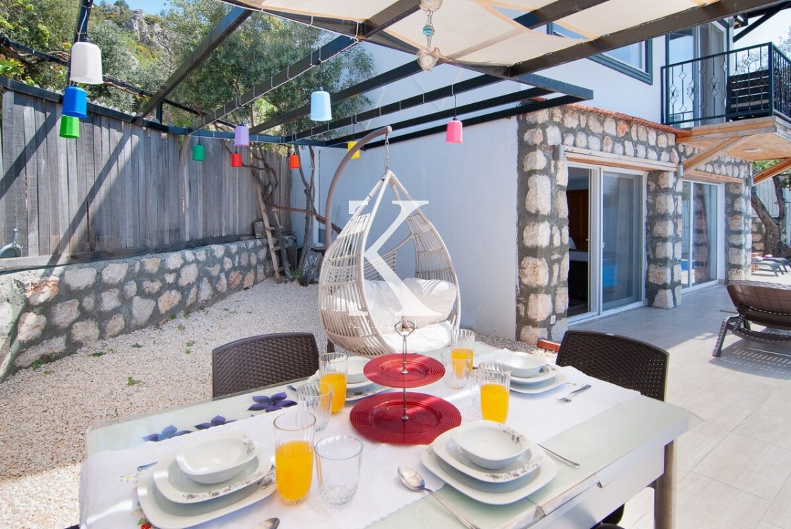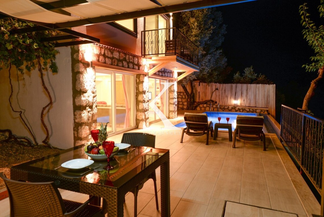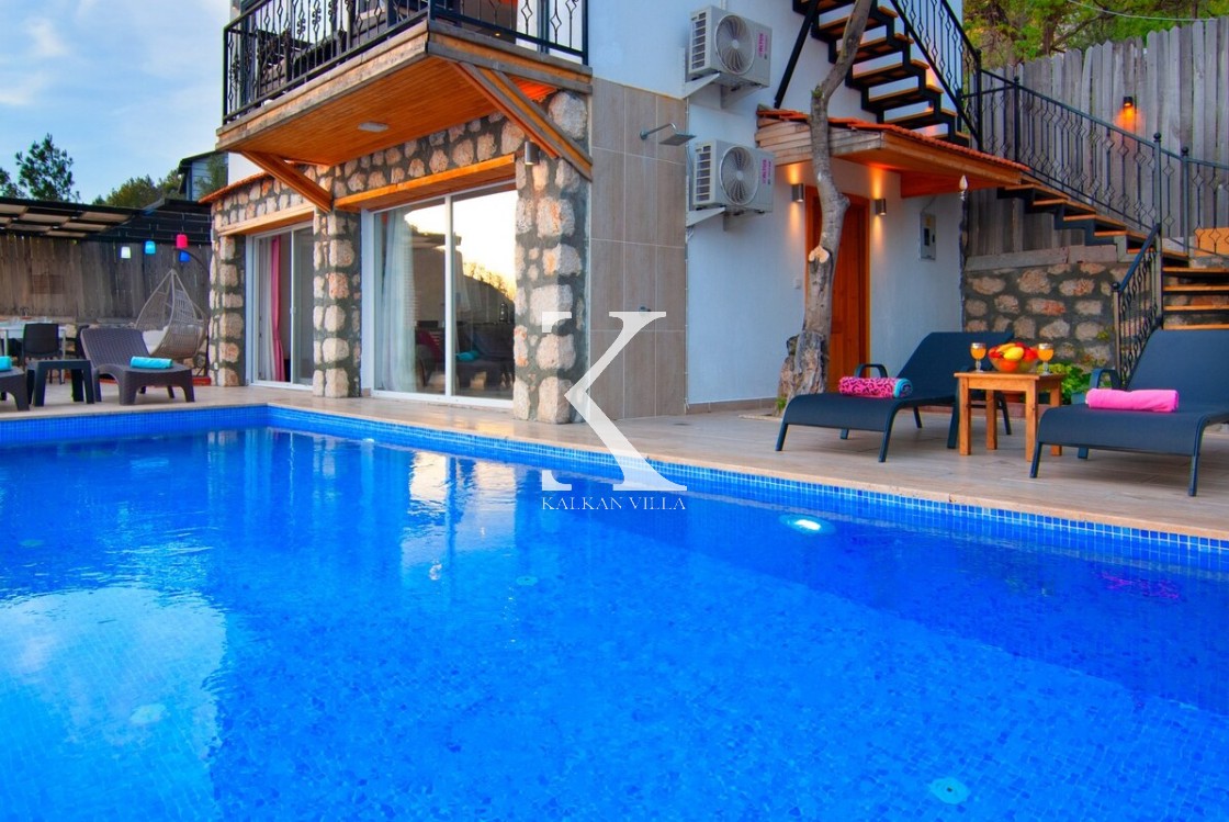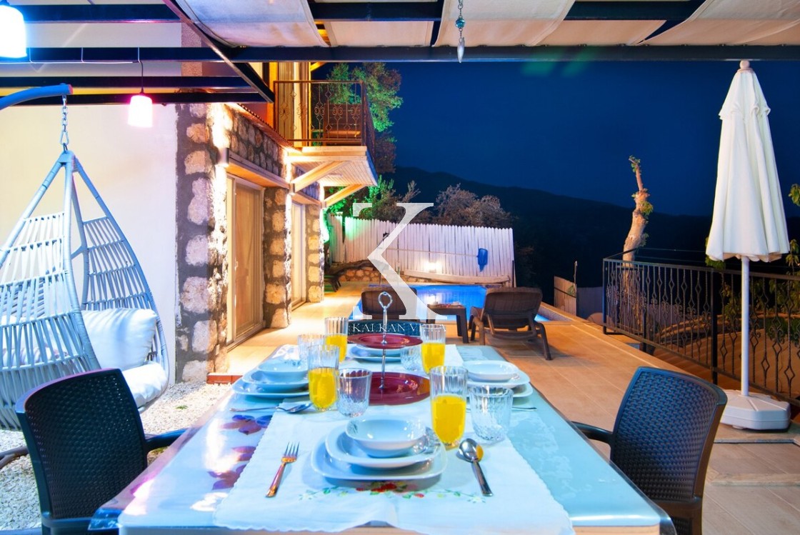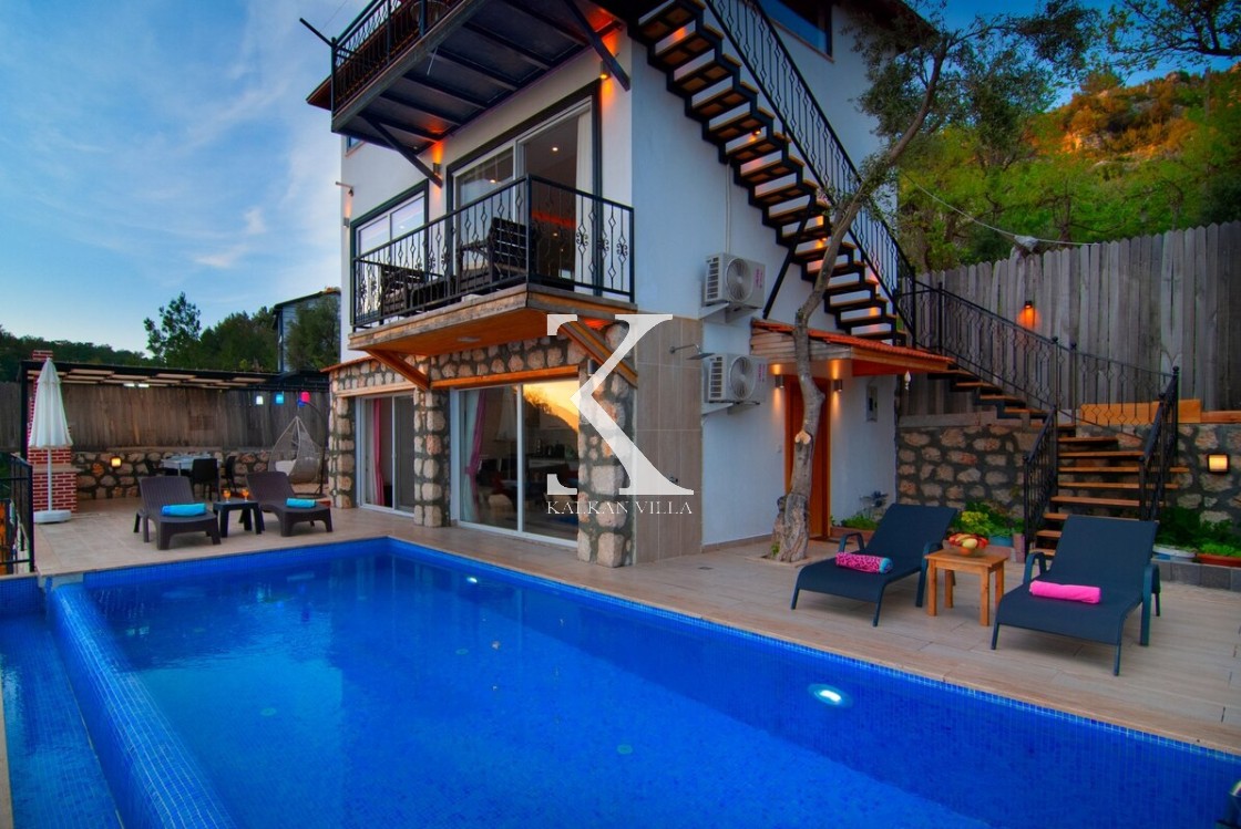 Villa Saten, Kalkan’ın doğayla iç içe, huzurlu İslamlar Lapaz bölgesinde yer alan, 2 yatak odalı ve 4 kişilik konaklama kapasiteli özel bir tatil villasıdır. Villanın en dikkat çekici özelliği, iki yatak odasının da kendi jakuzisine sahip olması ve ikinci yatak odasının bağımsız girişli, mutfaklı mini daire şeklinde tasarlanmış olmasıdır.