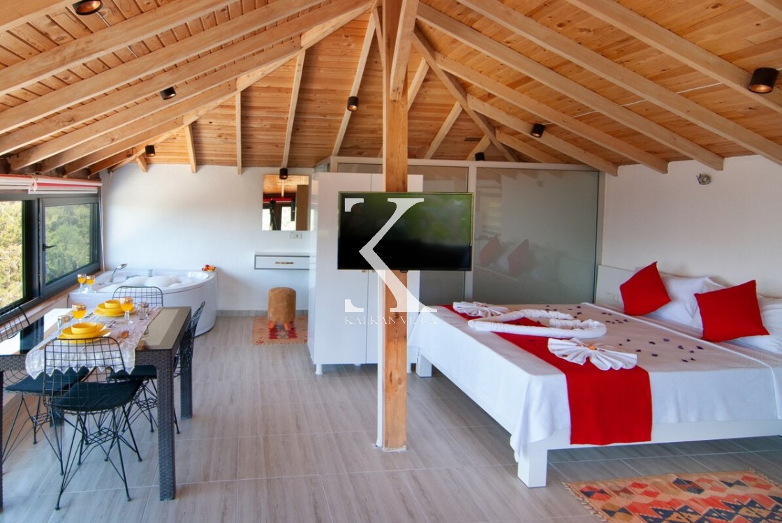 2 yatak odası • 4 kişi • 2 ayrı süit daire yapısı • doğa içinde, kısmi deniz manzarası • her odada jakuzi • balayı & iki çift için ideal