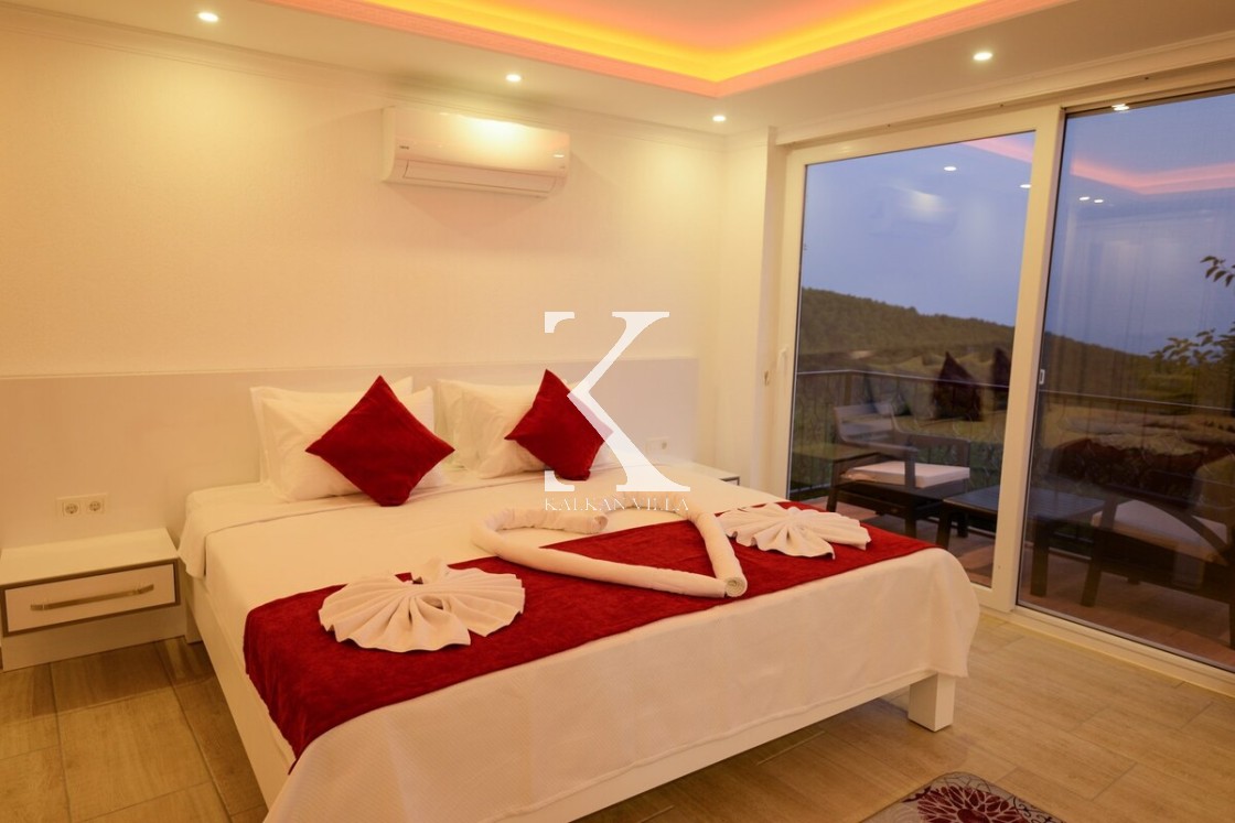 1 adet çift kişilik yatak, klima, jakuzi, komodin, elbise dolabı, makyaj masası, koltuk, TV, özel mutfak, banyo & WC.