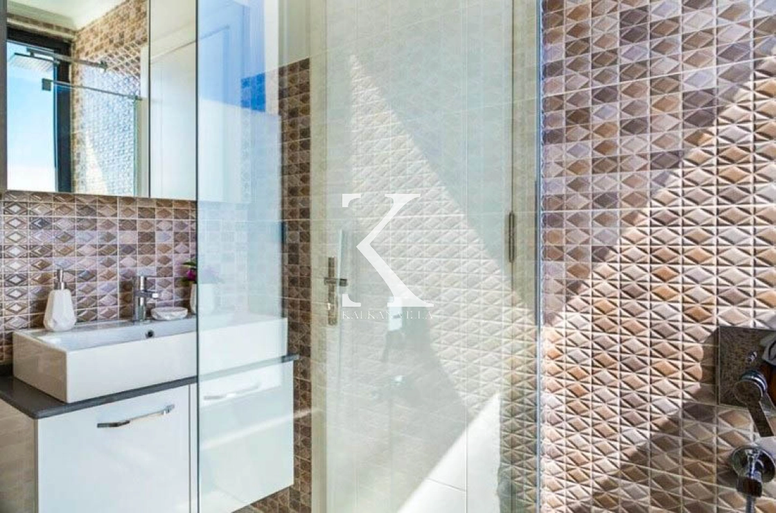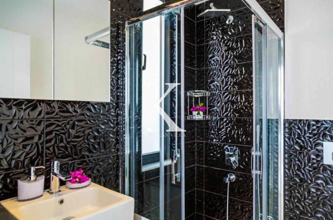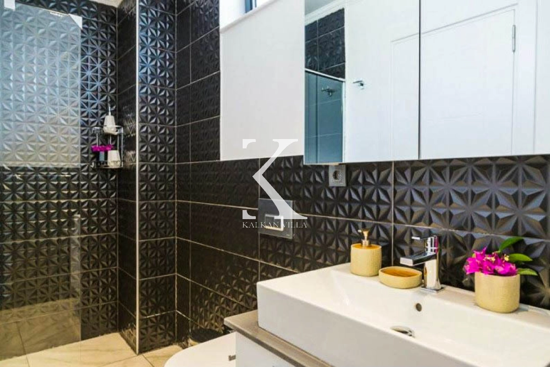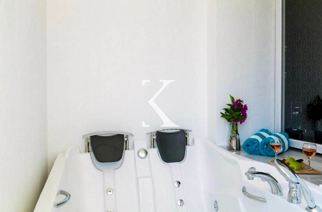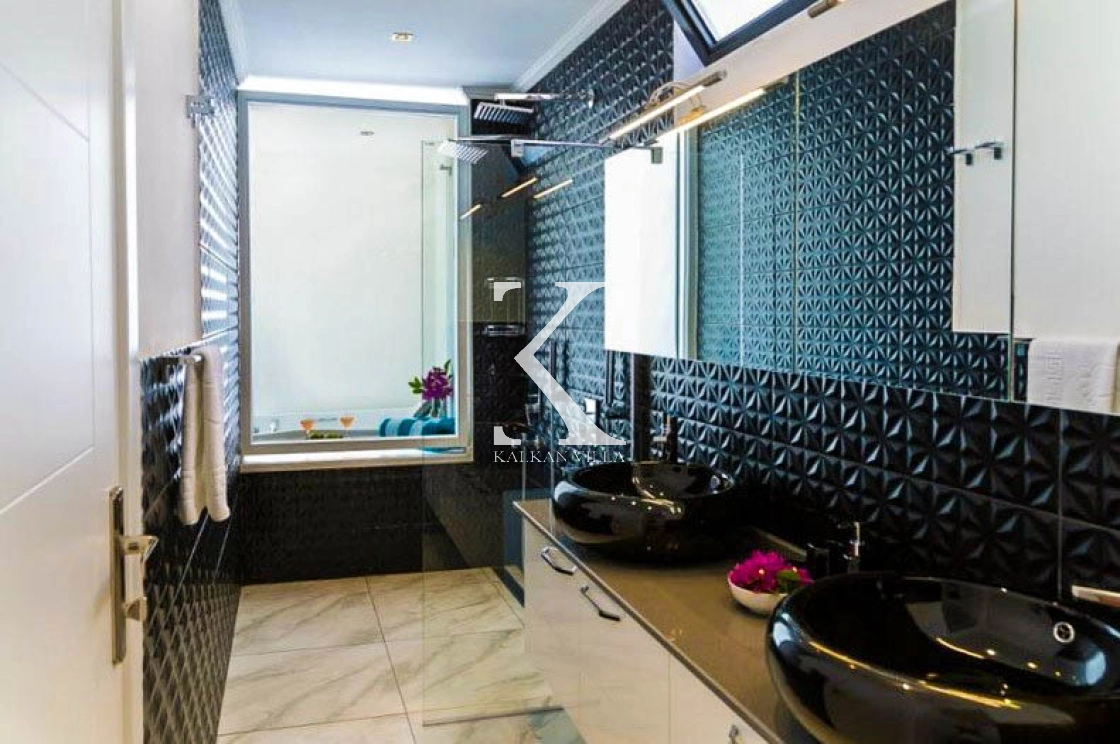 Her biri özel banyolu olan yatak odaları modern ve şık detaylarla dekore edilmiştir. Geniş ve ferah yaşam alanları sayesinde villa, özellikle kalabalık aileler ve arkadaş grupları için son derece uygundur. Villanın geniş terasında özel yüzme havuzu, çocuk havuzu, şezlonglar, yemek masası ve keyifli bir oturma alanı bulunmaktadır. Ayrıca terasta yer alan jakuzi, gün batımını deniz manzarası eşliğinde izlemek için eşsiz bir ortam sunar.