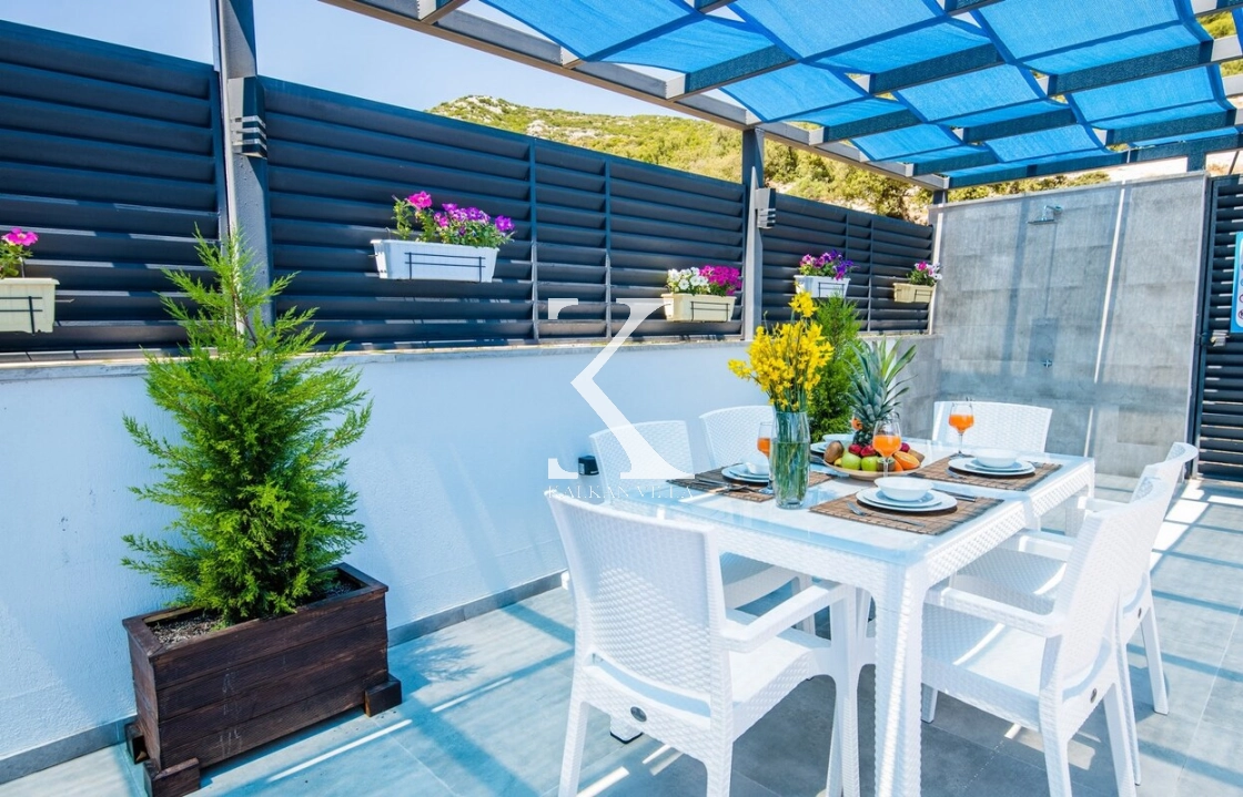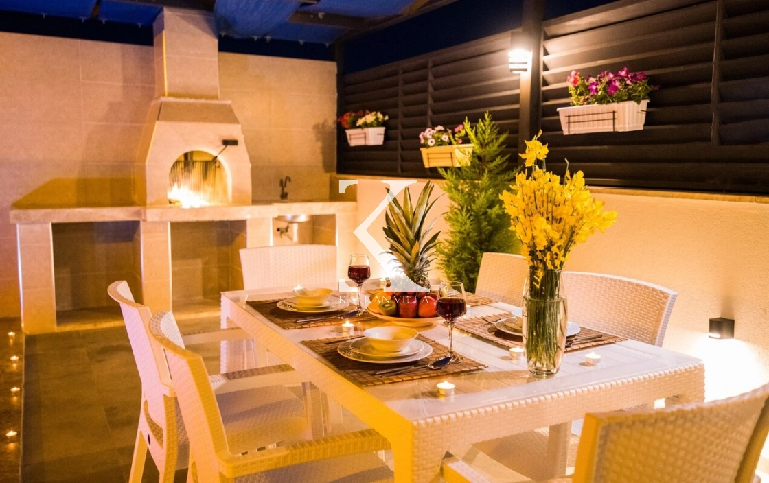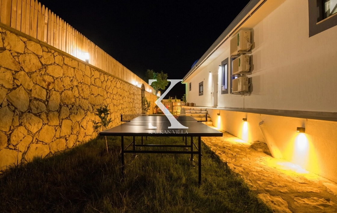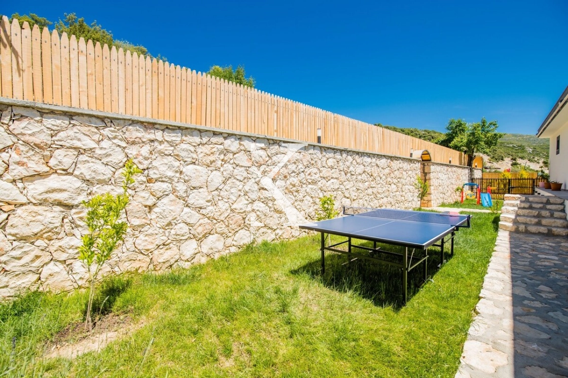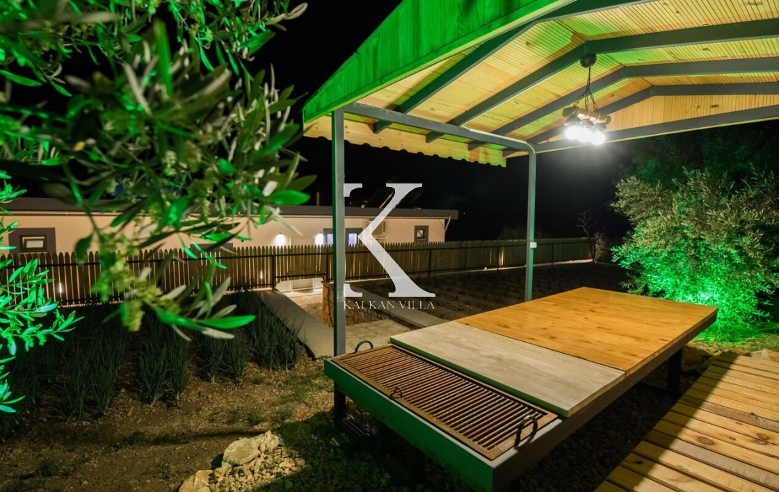 Korunaklı yüzme havuzu, bahçe mobilyaları, şezlonglar, güneş şemsiyesi, salıncak ve pergola alanı bulunmaktadır.