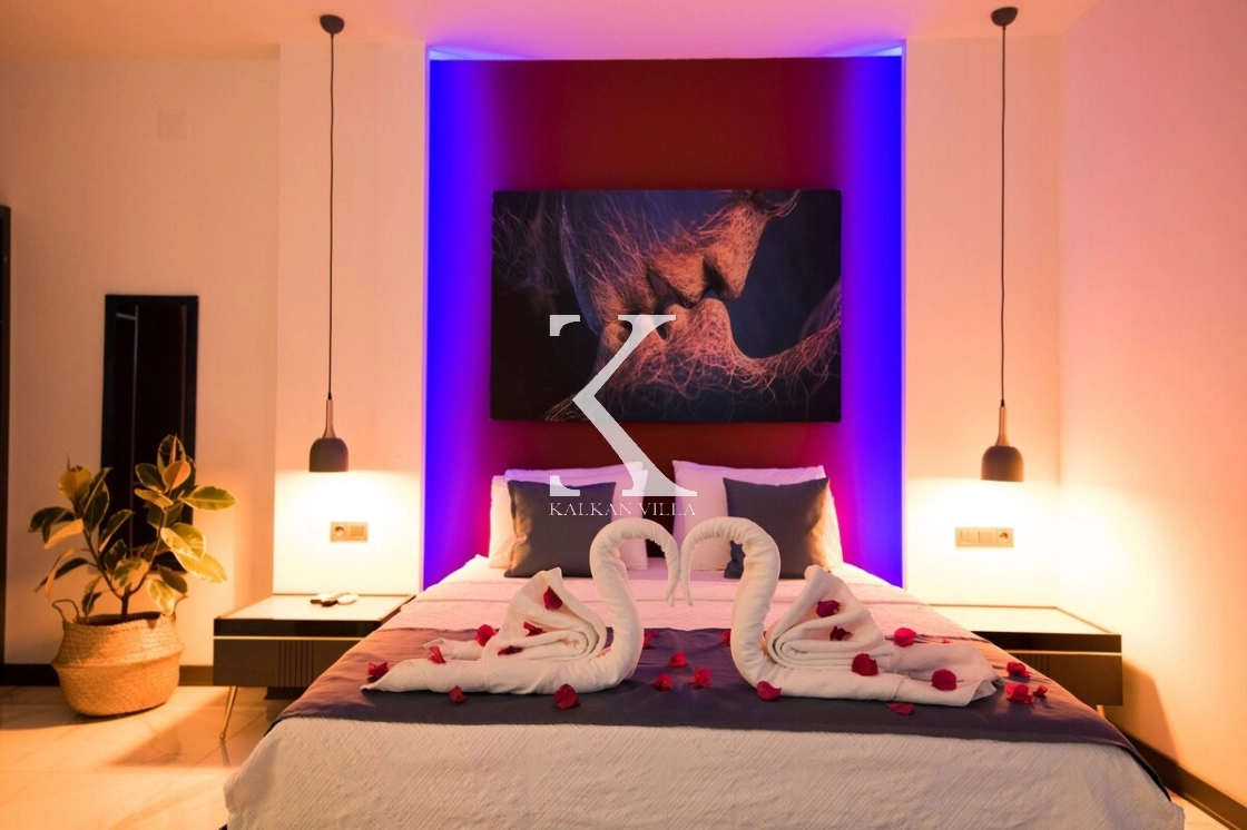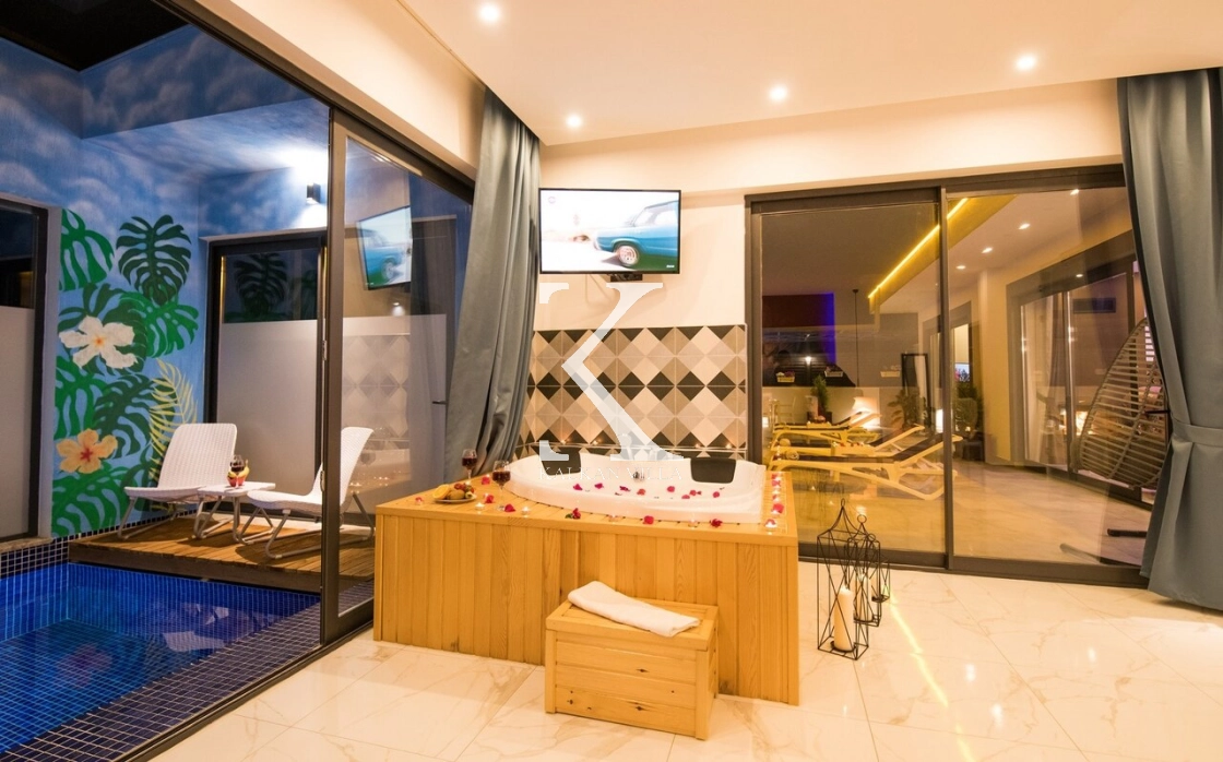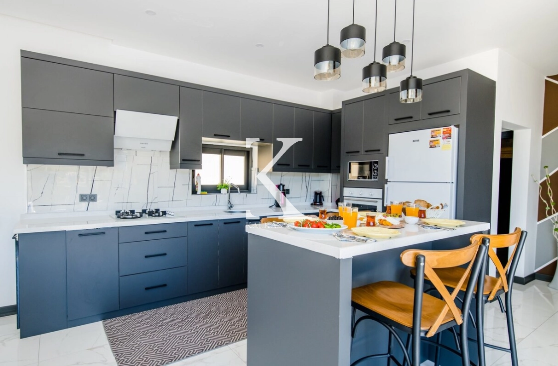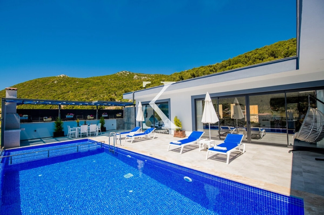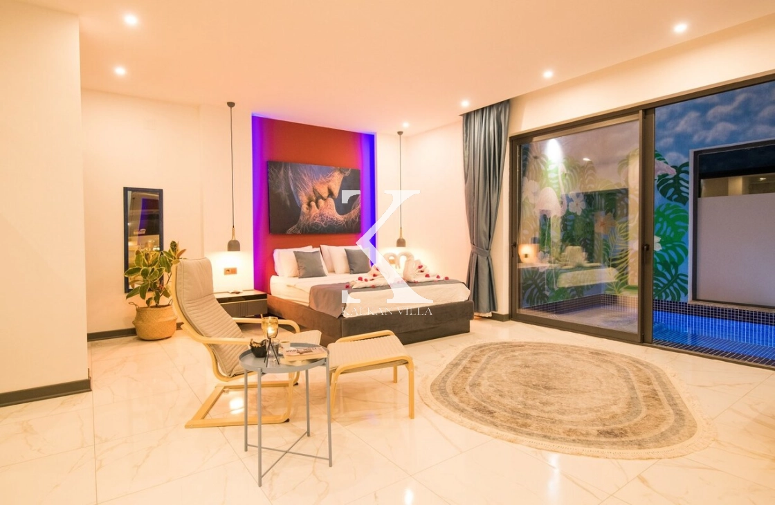 Villanın korunaklı özel yüzme havuzu, dış gözlerden uzak, tamamen size ait bir tatil imkânı sağlar. Gün batımında havuz başında manzaranın keyfini çıkarabilir, modern ve ferah yaşam alanlarında sevdiklerinizle huzurlu bir tatil geçirebilirsiniz.