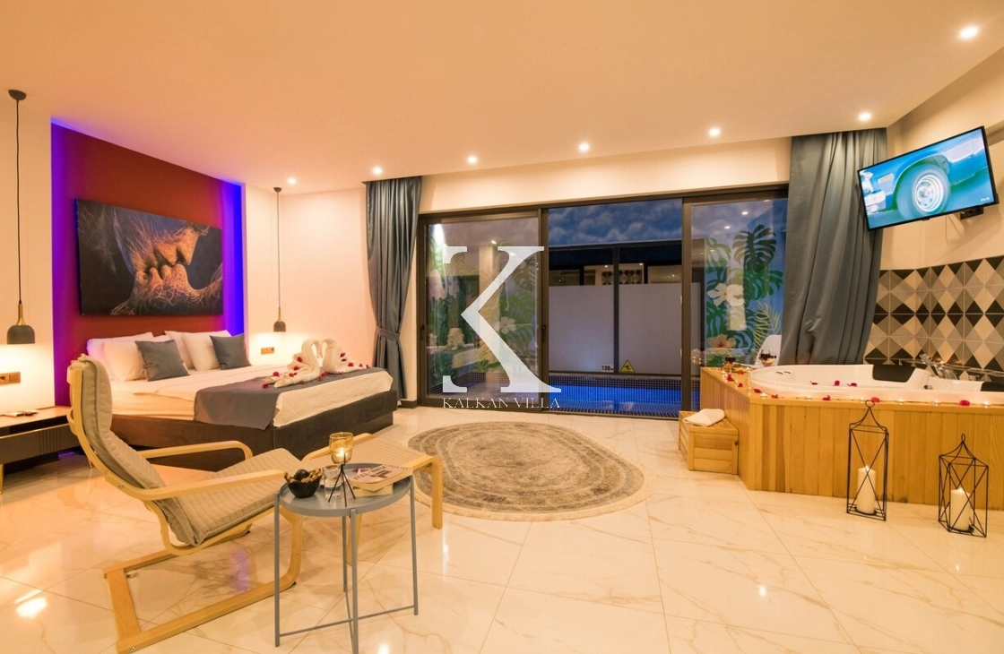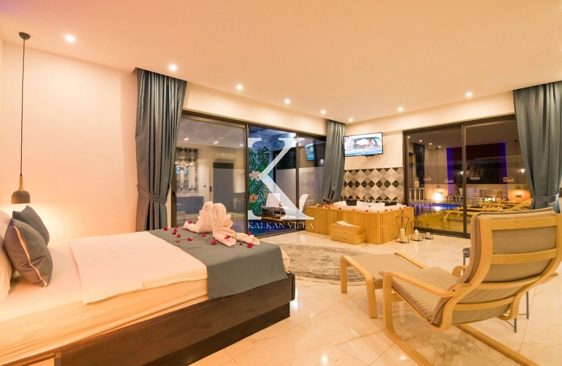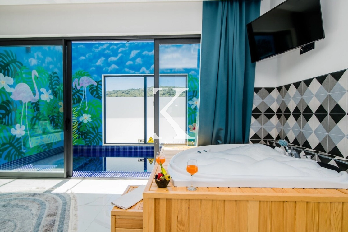 Ayrıca villada bulunan kapalı ve ısıtmalı havuz, dört mevsim konforlu bir tatil deneyimi sunarak Villa Sedef’i yılın her döneminde tercih edilebilir hale getirmektedir.