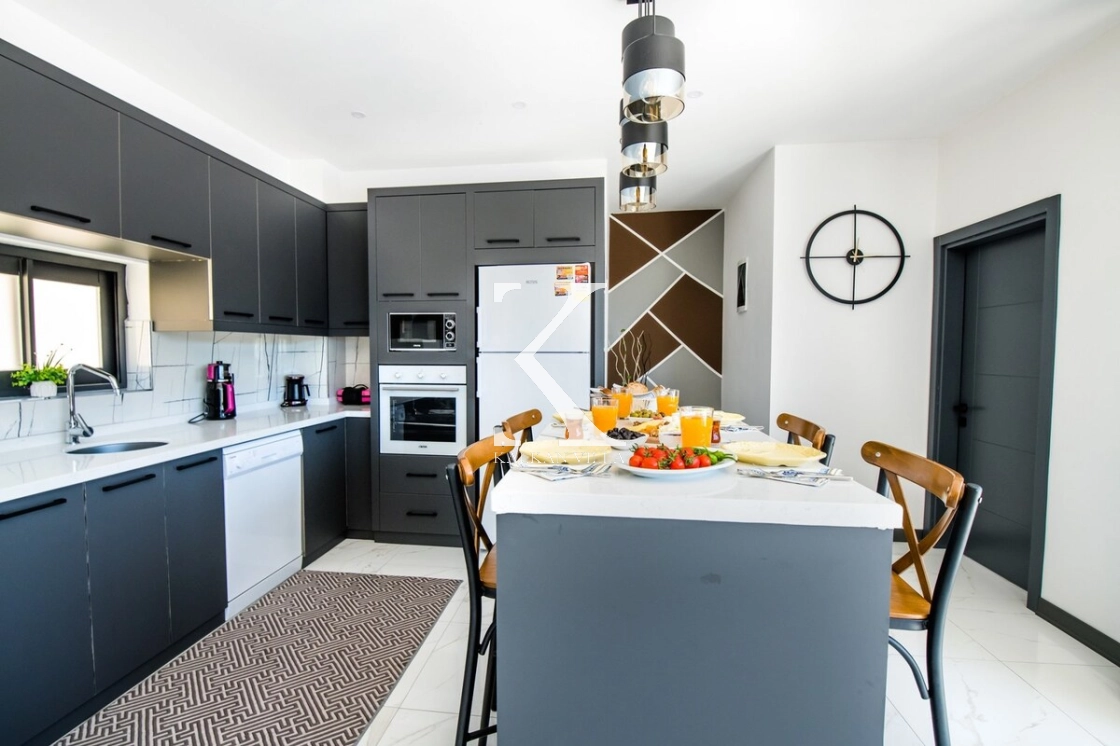Amerikan tarzı mutfak içerisinde; buzdolabı, bulaşık makinesi, çamaşır makinesi, fırın, 4’lü ocak, mikrodalga fırın, kettle, yemek masası, 8 kişilik yemek takımı, tava, tencereler ve çatal-bıçak takımı bulunmaktadır. Tatiliniz boyunca ihtiyaç duyabileceğiniz tüm mutfak ekipmanları mevcuttur.