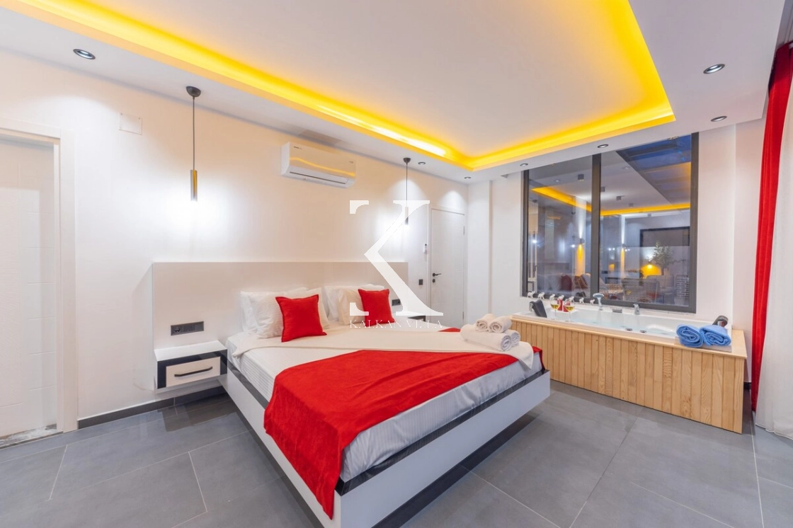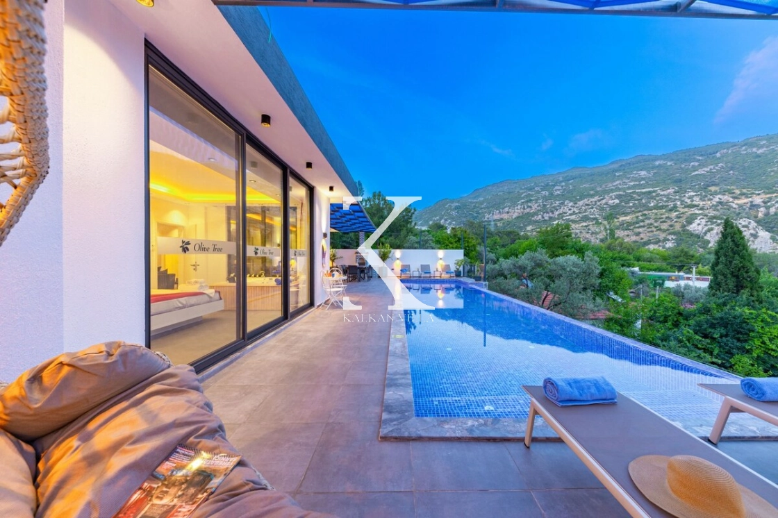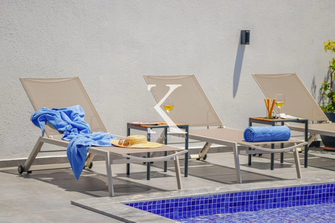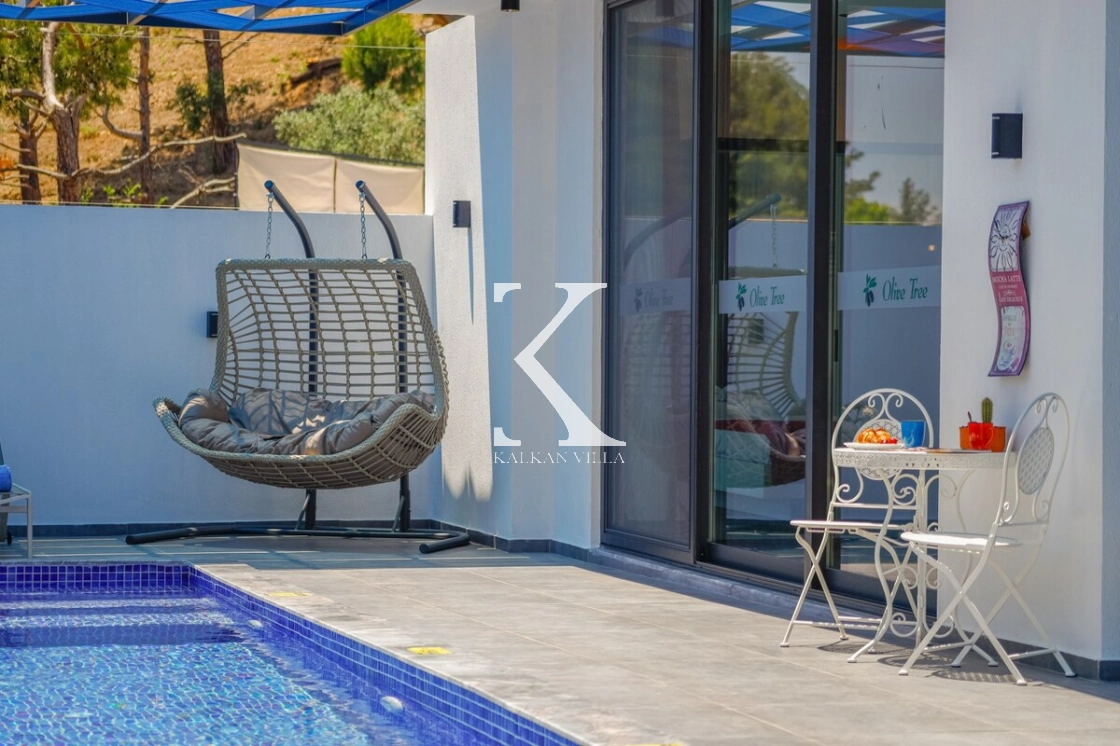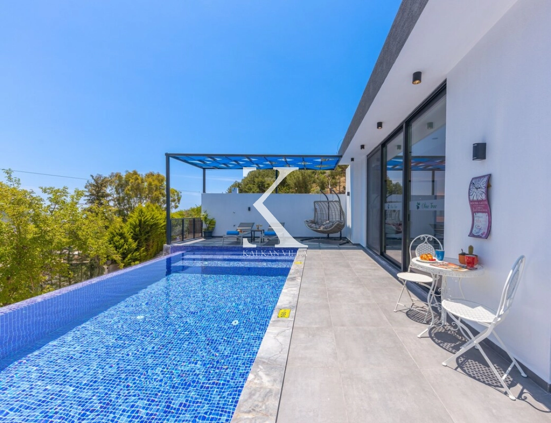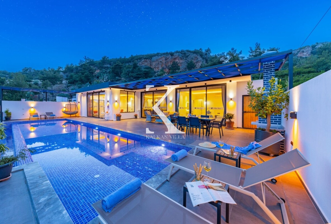 Modern ve konforlu iç dizaynı ile özenle hazırlanan villada, misafirlerin rahatlığı ön planda tutulmuştur. Korunaklı havuz terası ve bahçe alanı, doğa manzarasıyla bütünleşerek misafirlere tamamen özel, gözlerden uzak ve huzurlu bir tatil ortamı sunar.