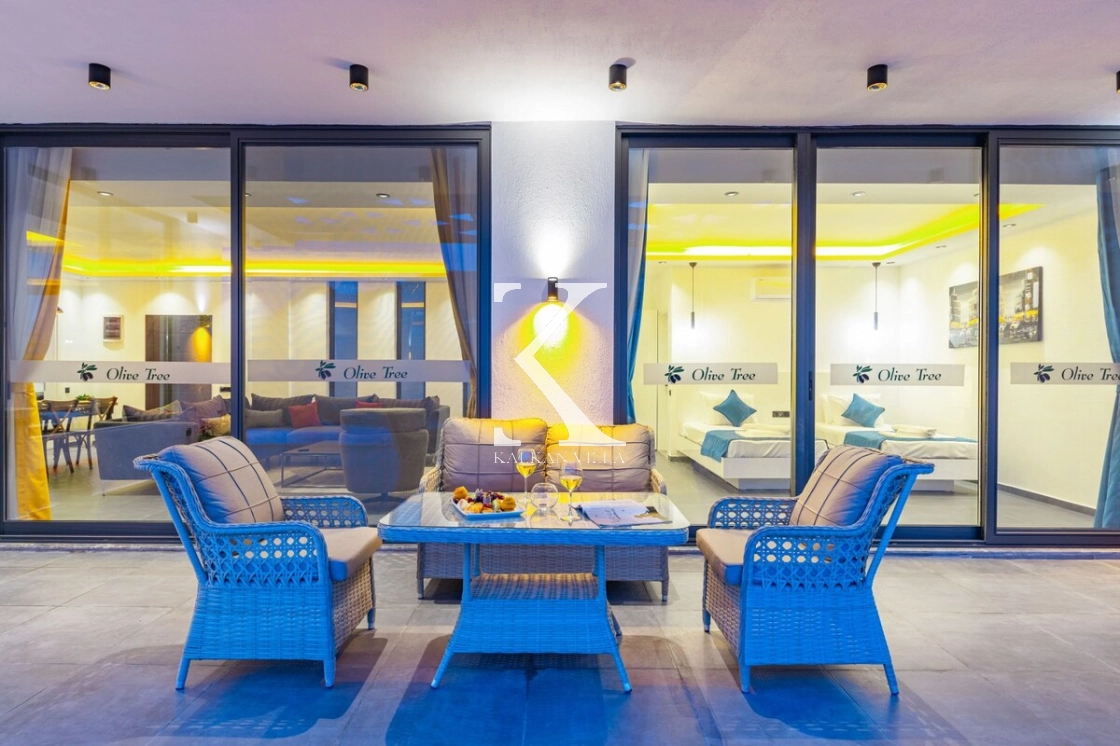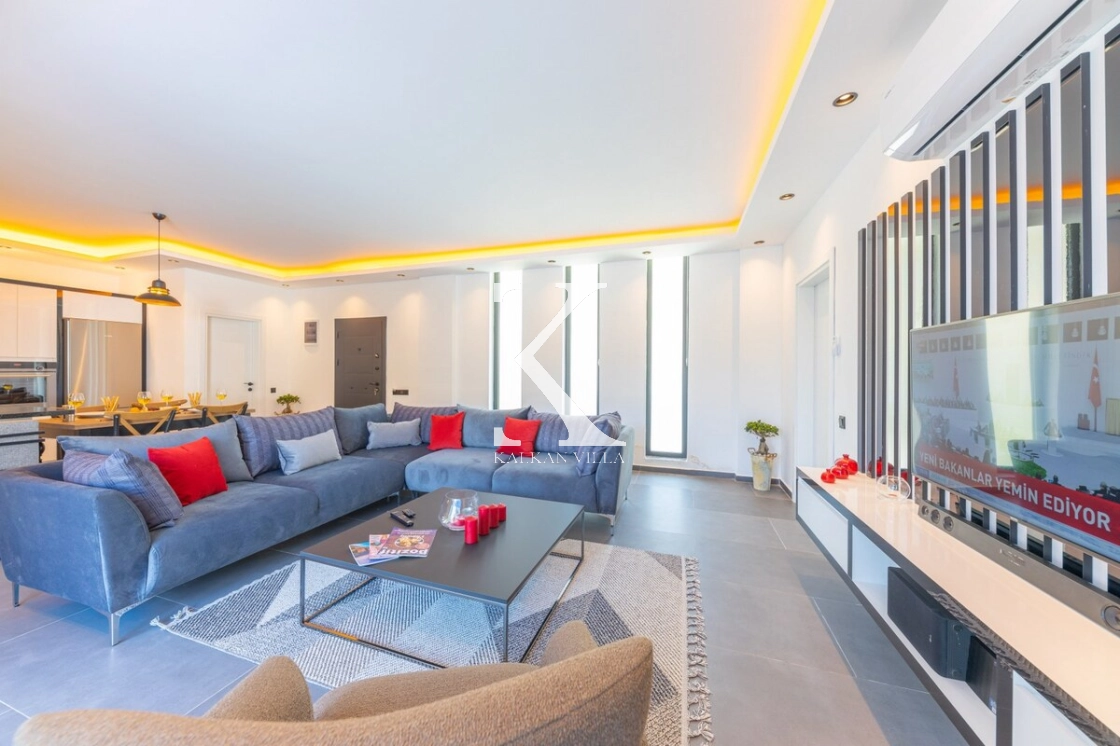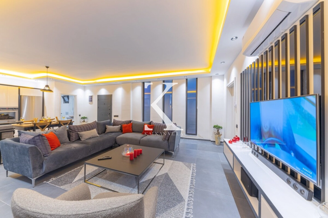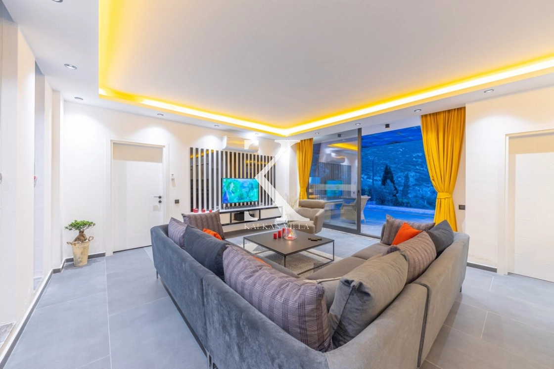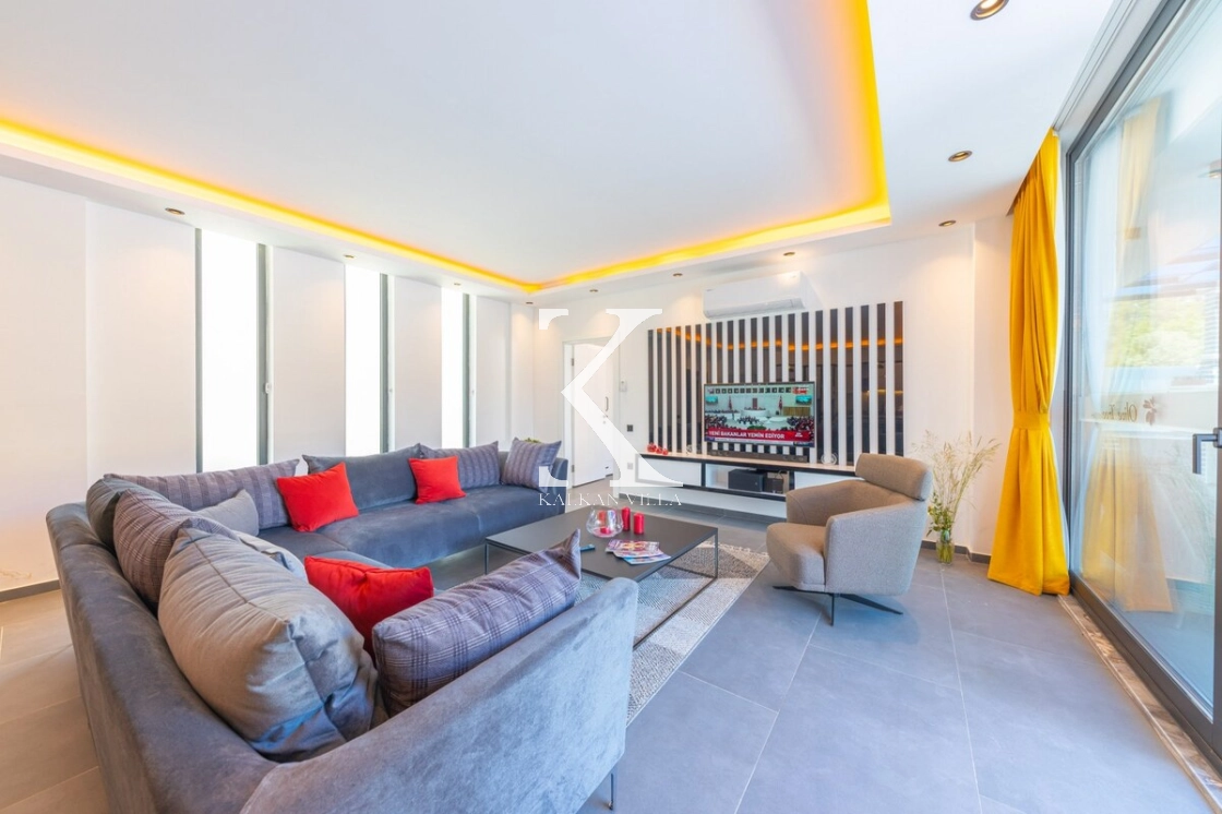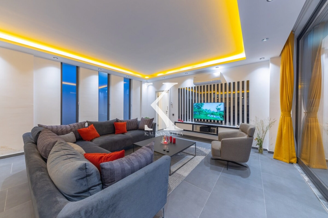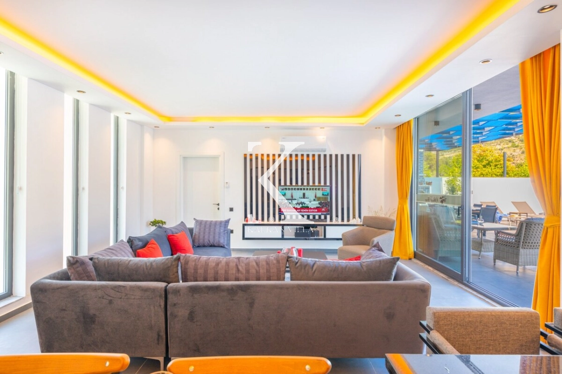Modern ve lüks dizayna sahip salon içerisinde konforlu oturma grubu, TV, DVD oynatıcı, klima ve internet bulunmaktadır. Salondan havuz terasına doğrudan çıkış mevcuttur.