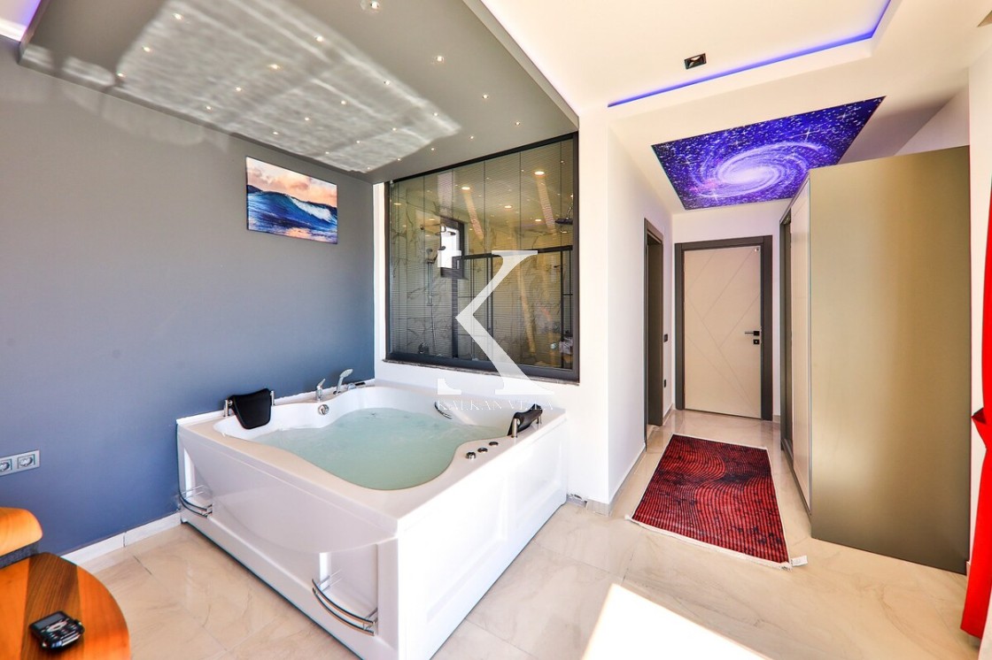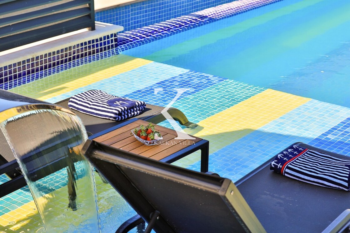 Doğayla iç içe, korunaklı mimaride 2 yatak odalı – 4 kişilik lüks villa. 14 m uzunluğunda özel havuz, geniş, dışarıdan görünmeyen teras, jakuzili ebeveyn süiti, spor odası, langırt, salıncak ve barbekü ile mahremiyet ve konforu bir arada sunar.