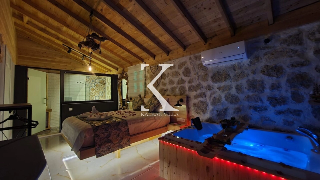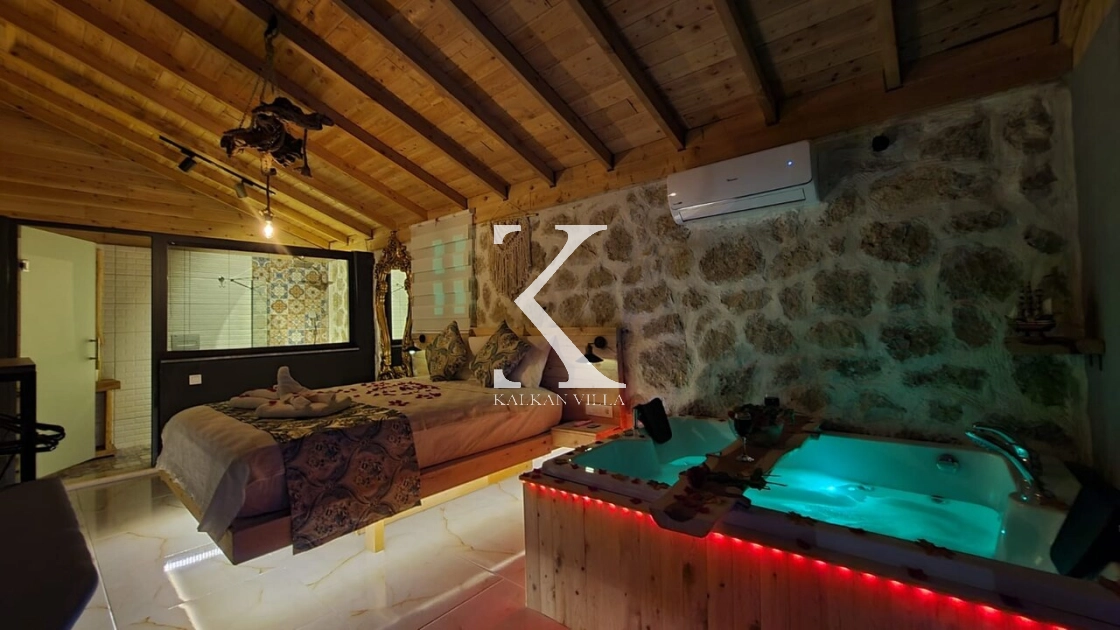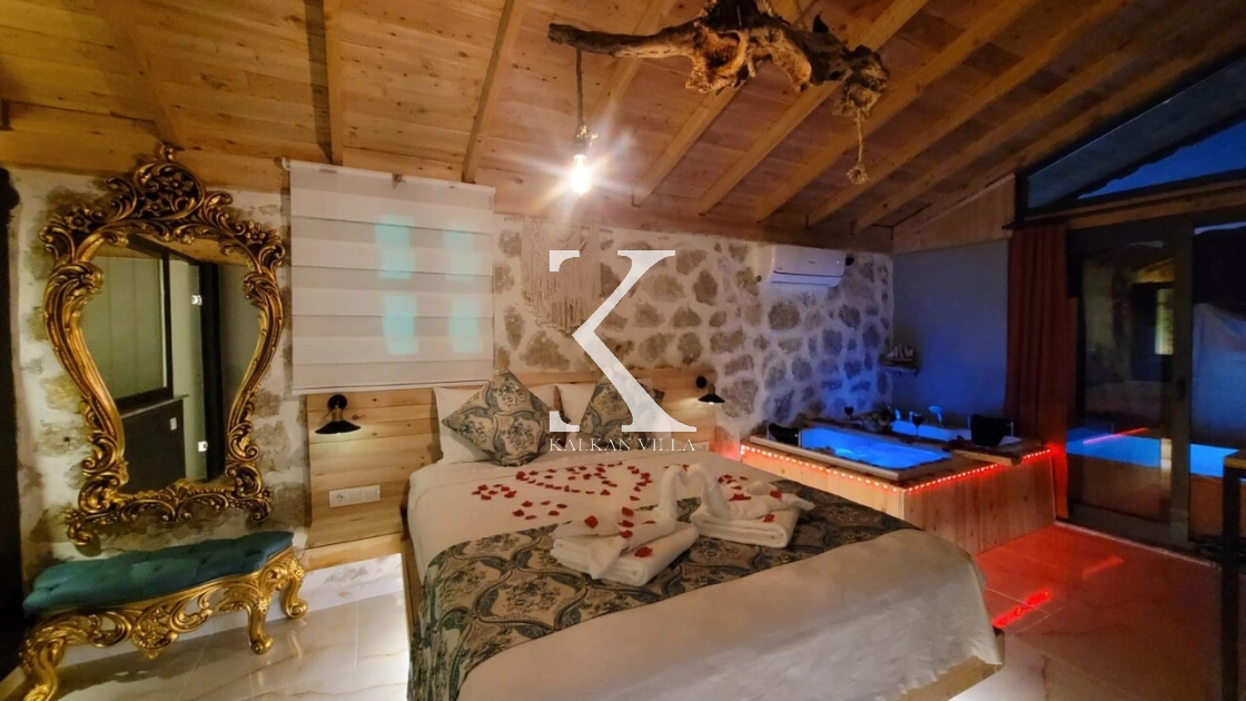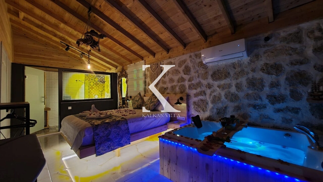 Villa Softs, Kalkan’ın yemyeşil Sarıbelen Bölgesi’nde, taş ve ahşap mimarinin huzur veren uyumuyla tasarlanmış, 1 yatak odalı ve 2 kişilik konaklama kapasitesine sahip özel bir balayı villasıdır. Tamamen korunaklı bahçesi sayesinde gözlerden uzak, özgür ve konforlu bir tatil deneyimi sunar.