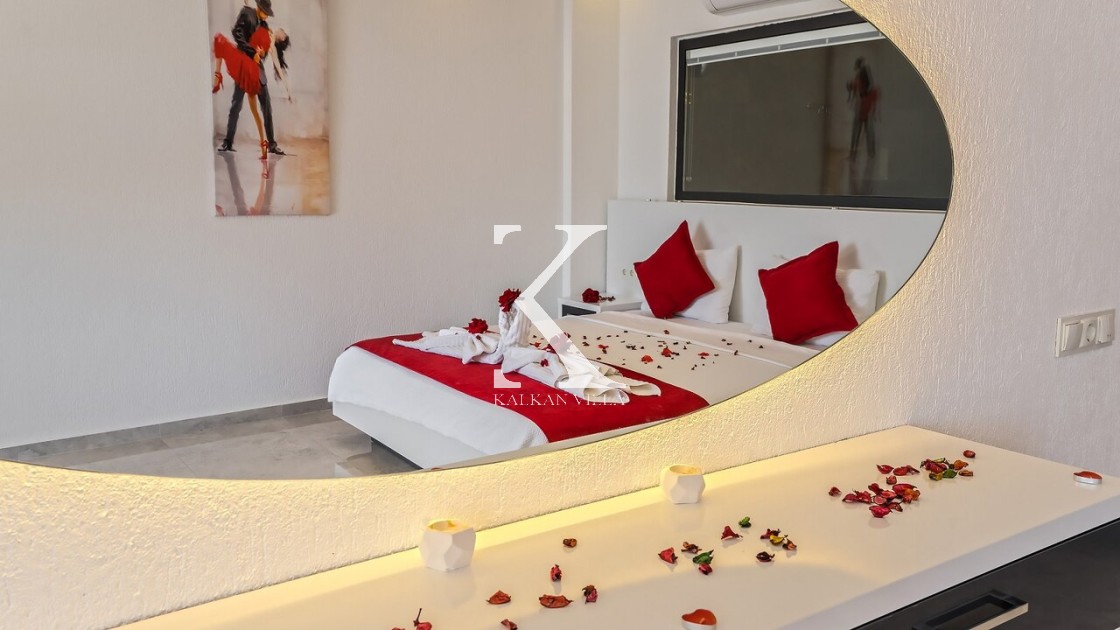 2 yatak odası ve 4 kişilik konaklama kapasitesi ile özellikle balayı çiftleri ve muhafazakâr aileler için ideal bir konaklama seçeneği sunar.