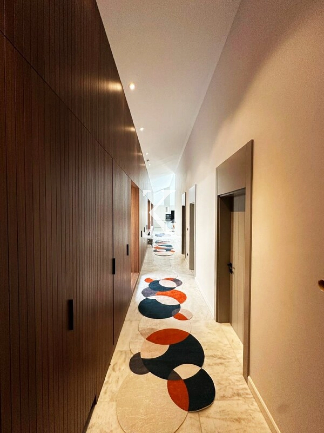 Modern ve konforlu tasarıma sahip salonda lüks oturma grubu, TV, sehpa ve klima bulunmaktadır. Salondan havuz terasına direkt çıkış mevcuttur.